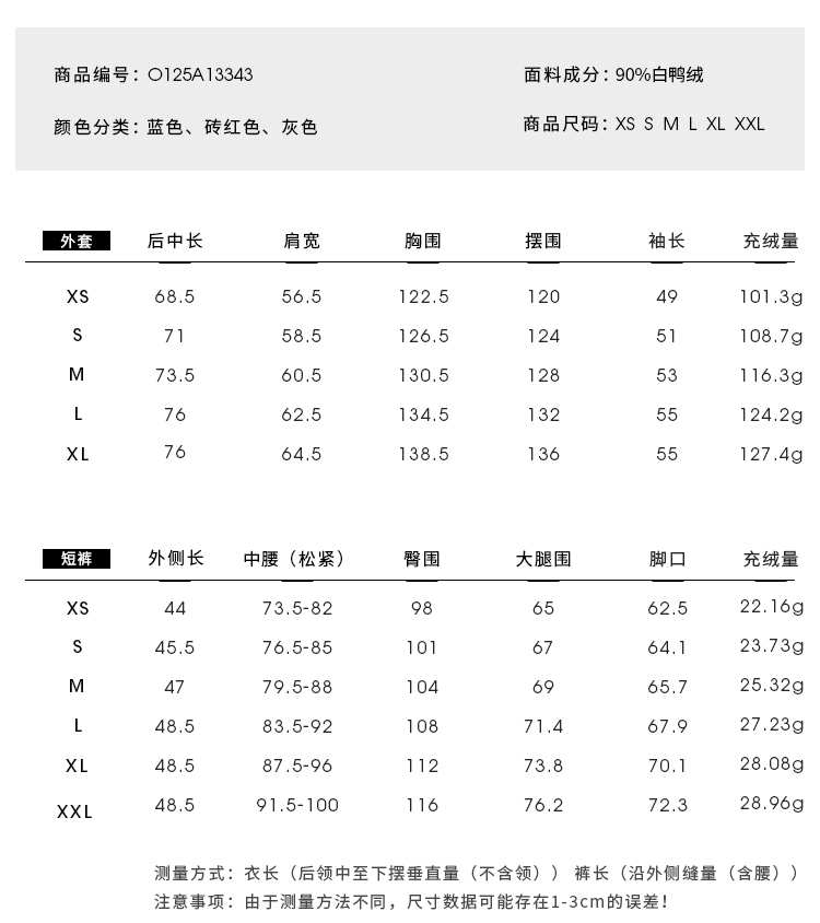 填充90白鴨絨,內夾高 品質400T膽布