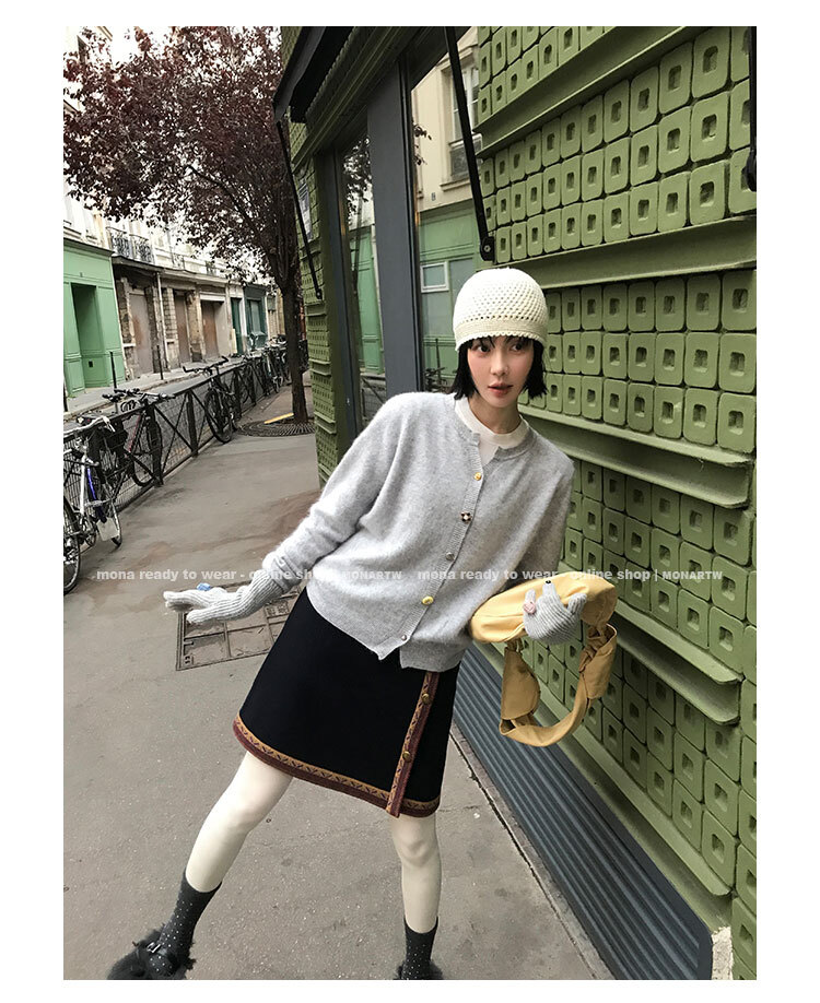 圓領短版輪廓開襟衫,寬鬆微落肩袖