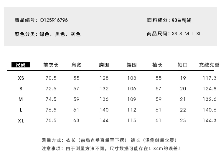 內裡填充90%絨子含量白鴨絨,保暖不臃腫