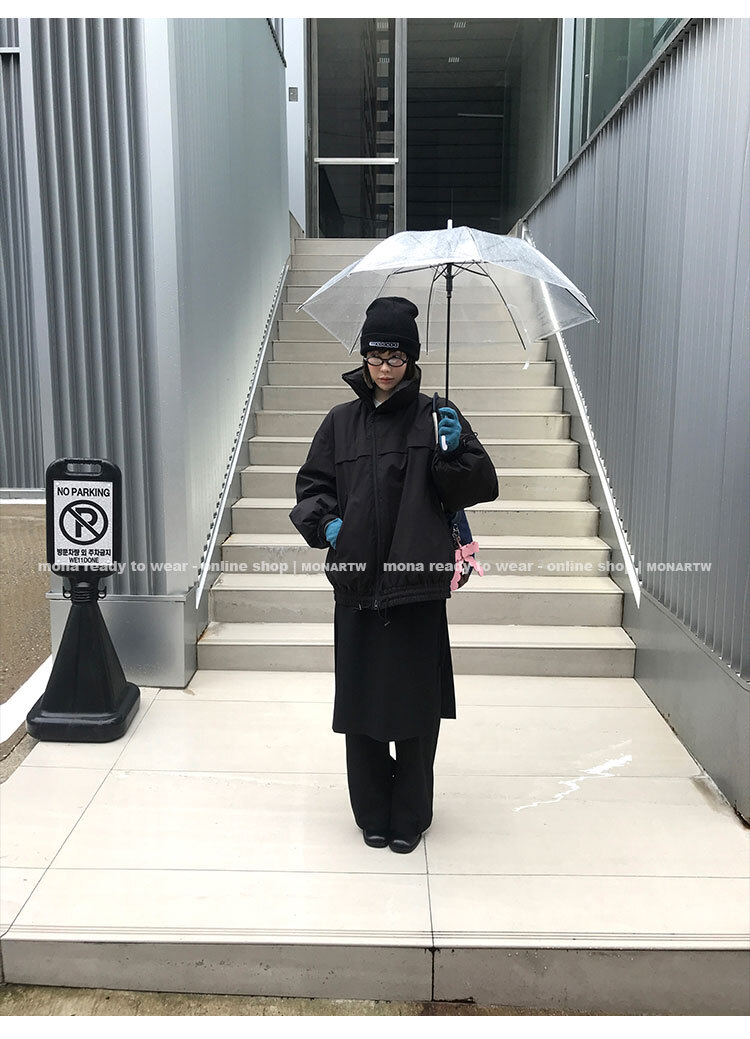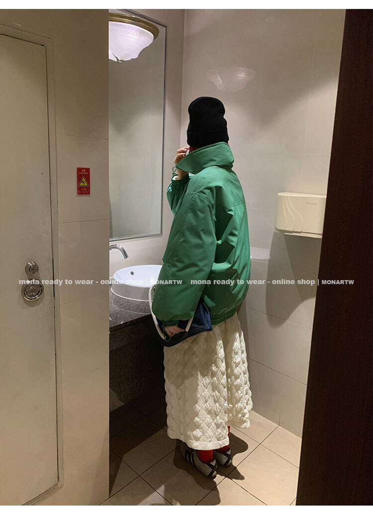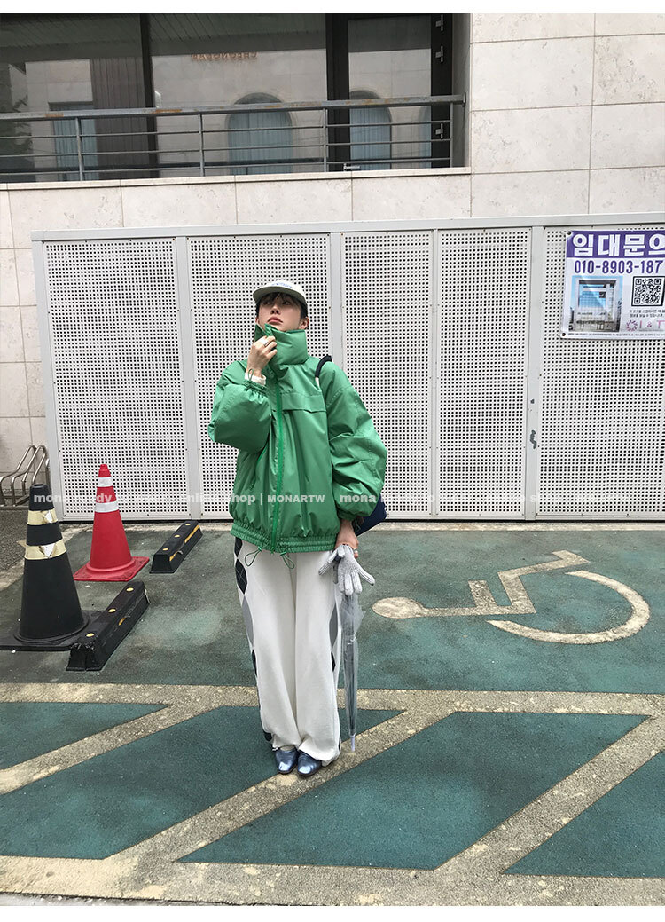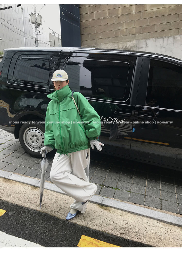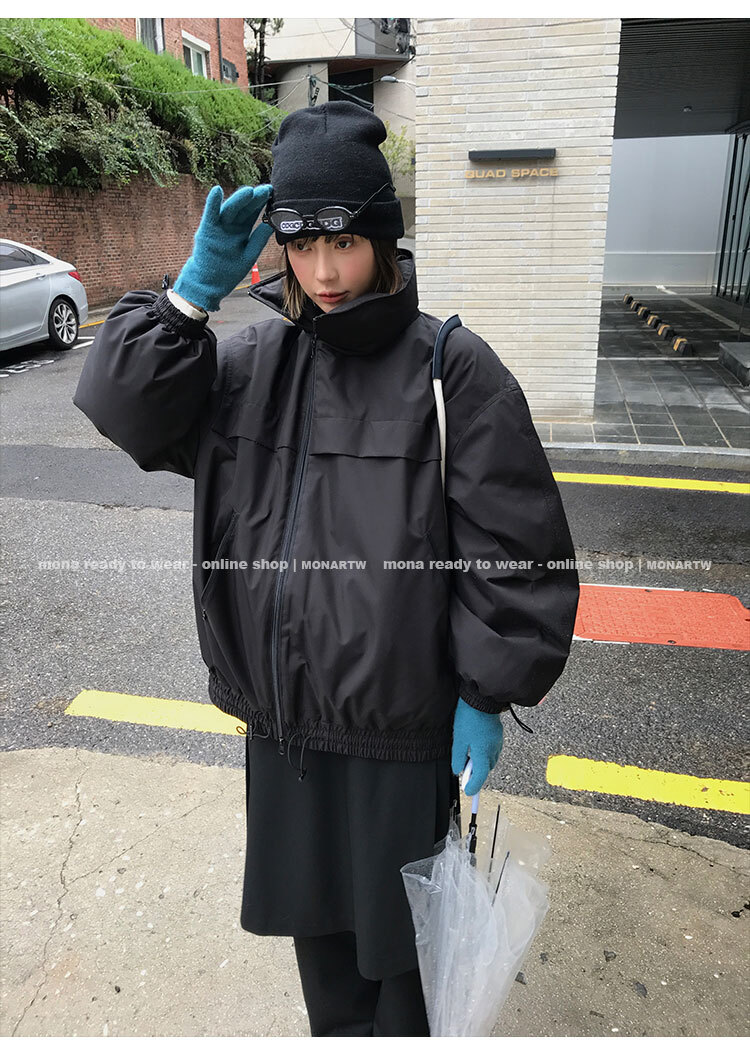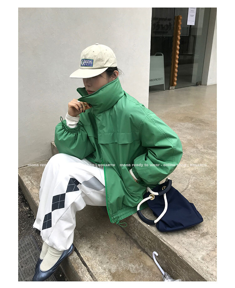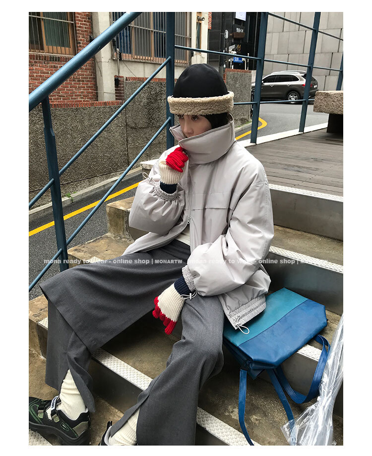 高領防風立領,放下時則自然形成翻領,別具造型感
