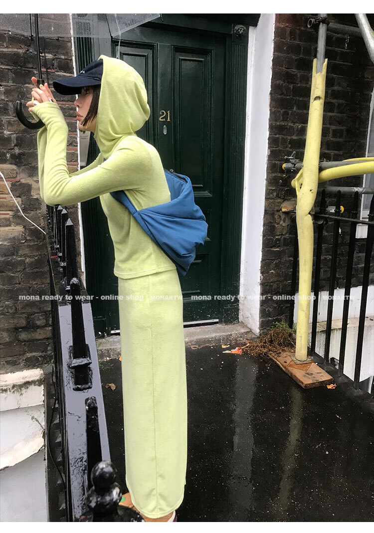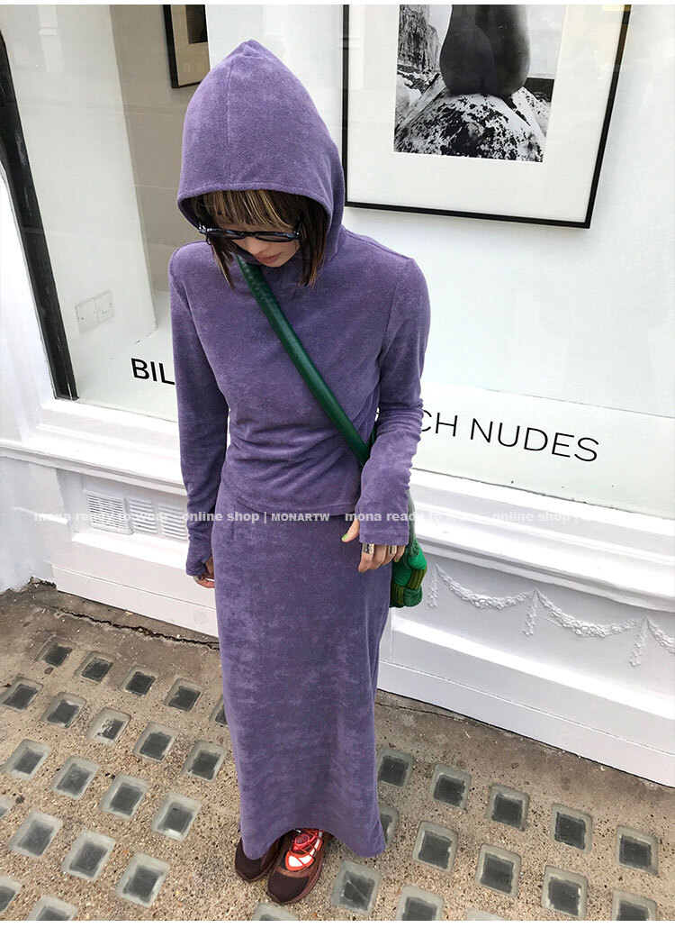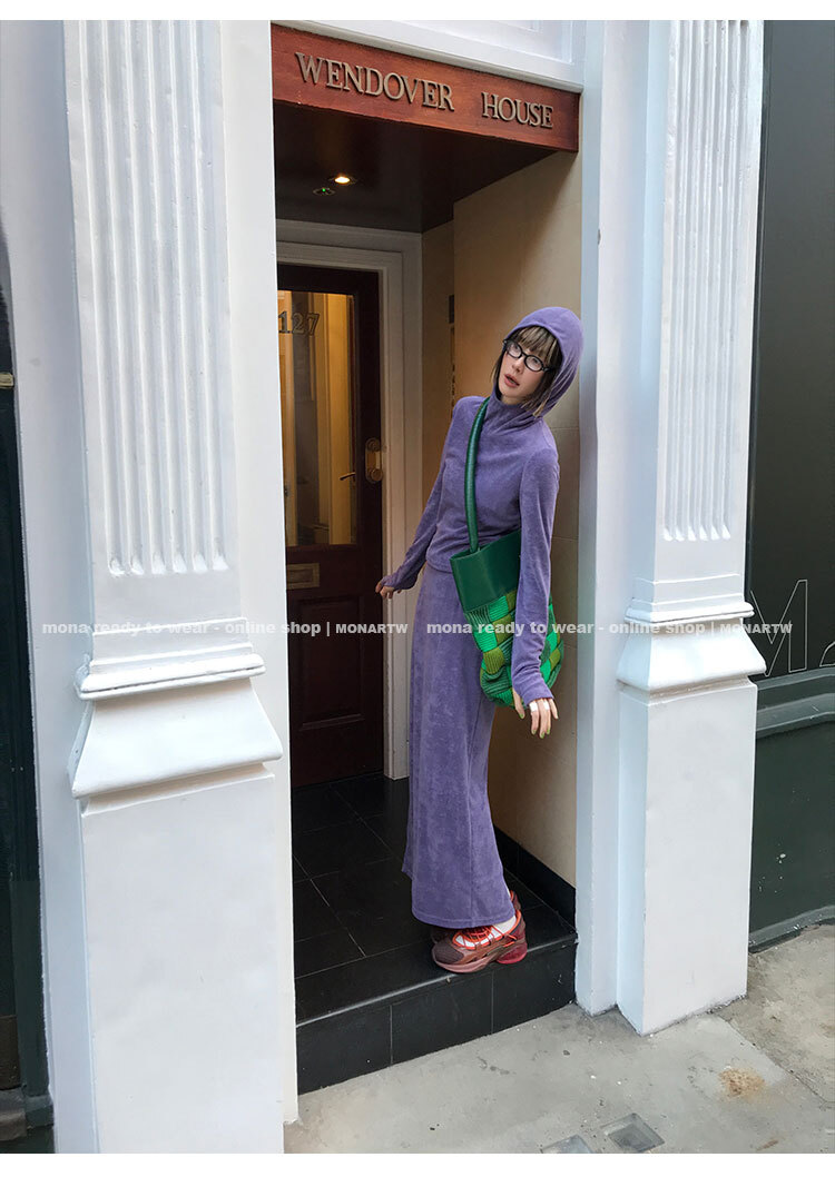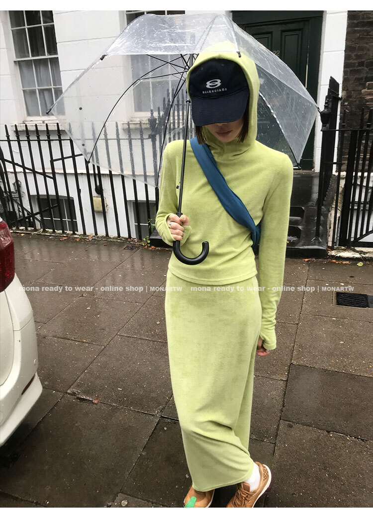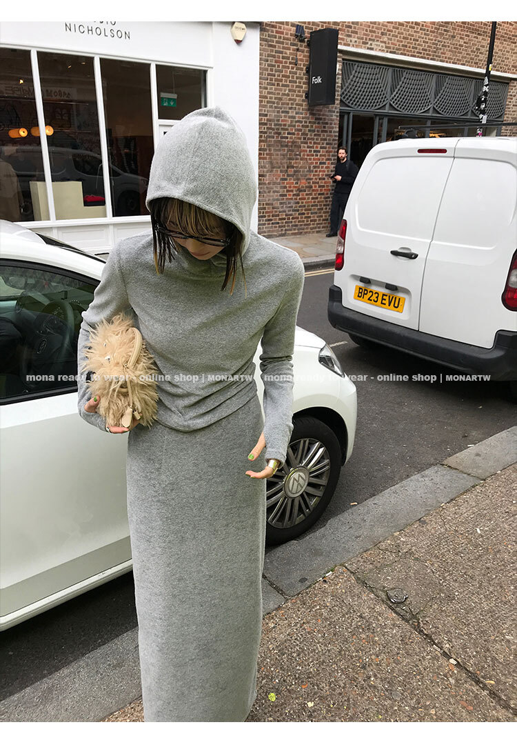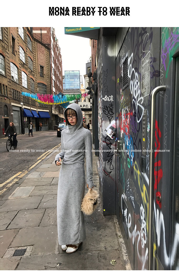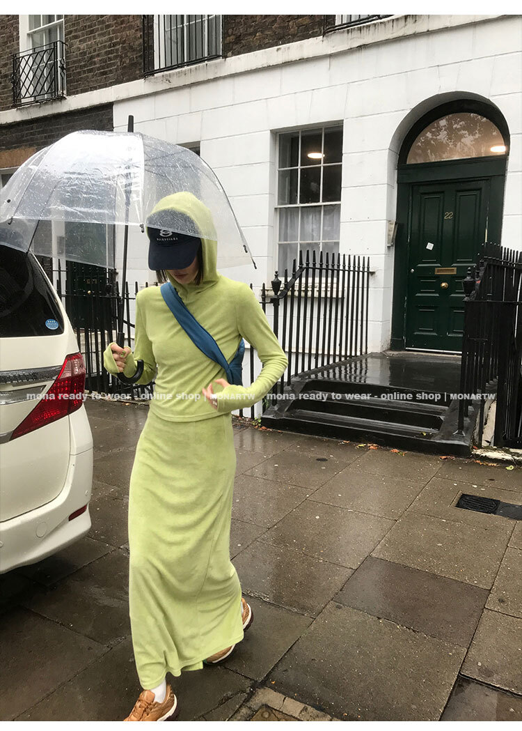 *o-ha-you*【FMN9508】修身顯瘦連帽上衣 直筒中腰長半裙套裝女小個子 2025秋-3色