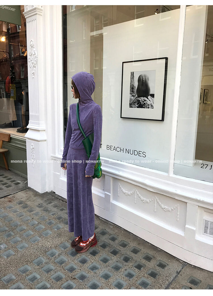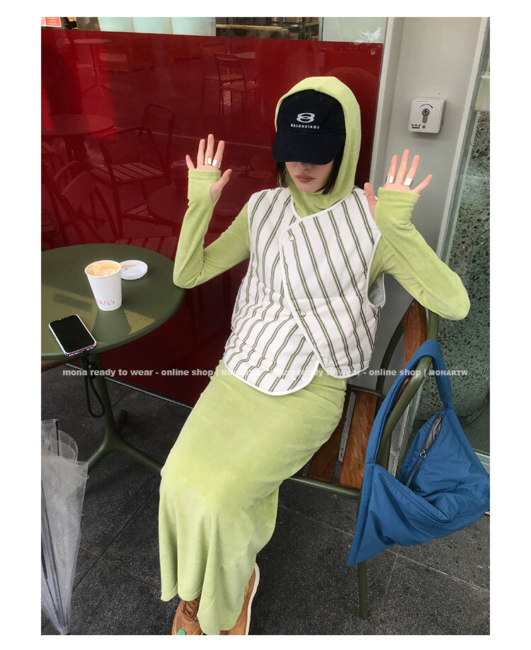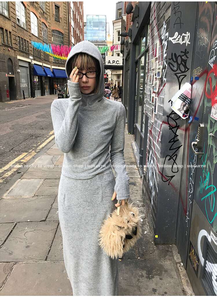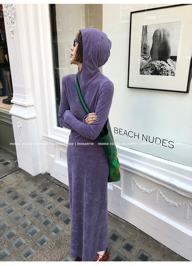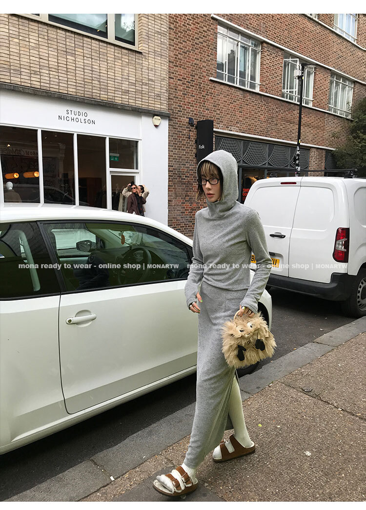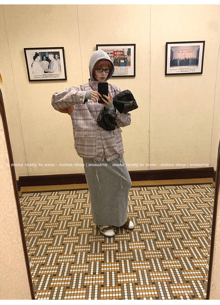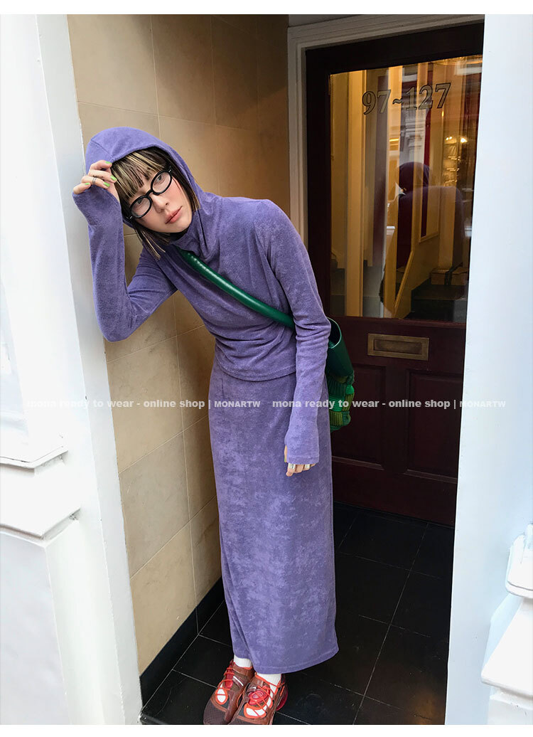 *o-ha-you*【FMN9508】修身顯瘦連帽上衣 直筒中腰長半裙套裝女小個子 2025秋-3色