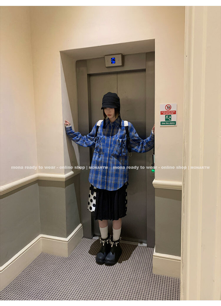 腰頭採用卡其色滌氨色織格紋布料,增加層次感與時尚度