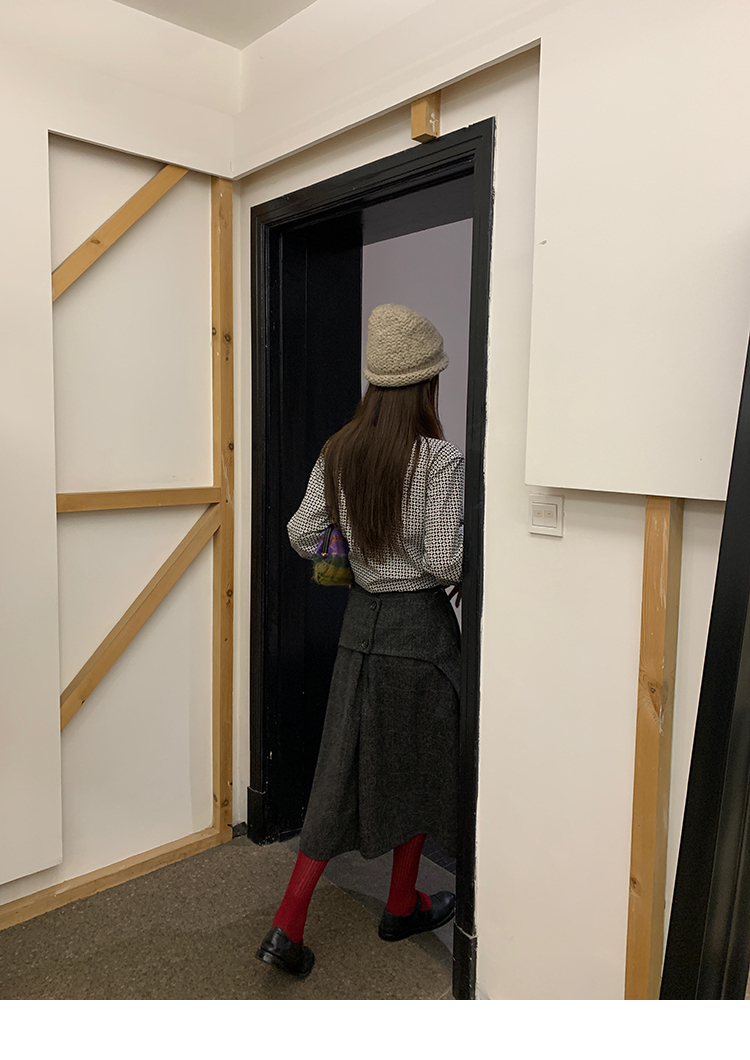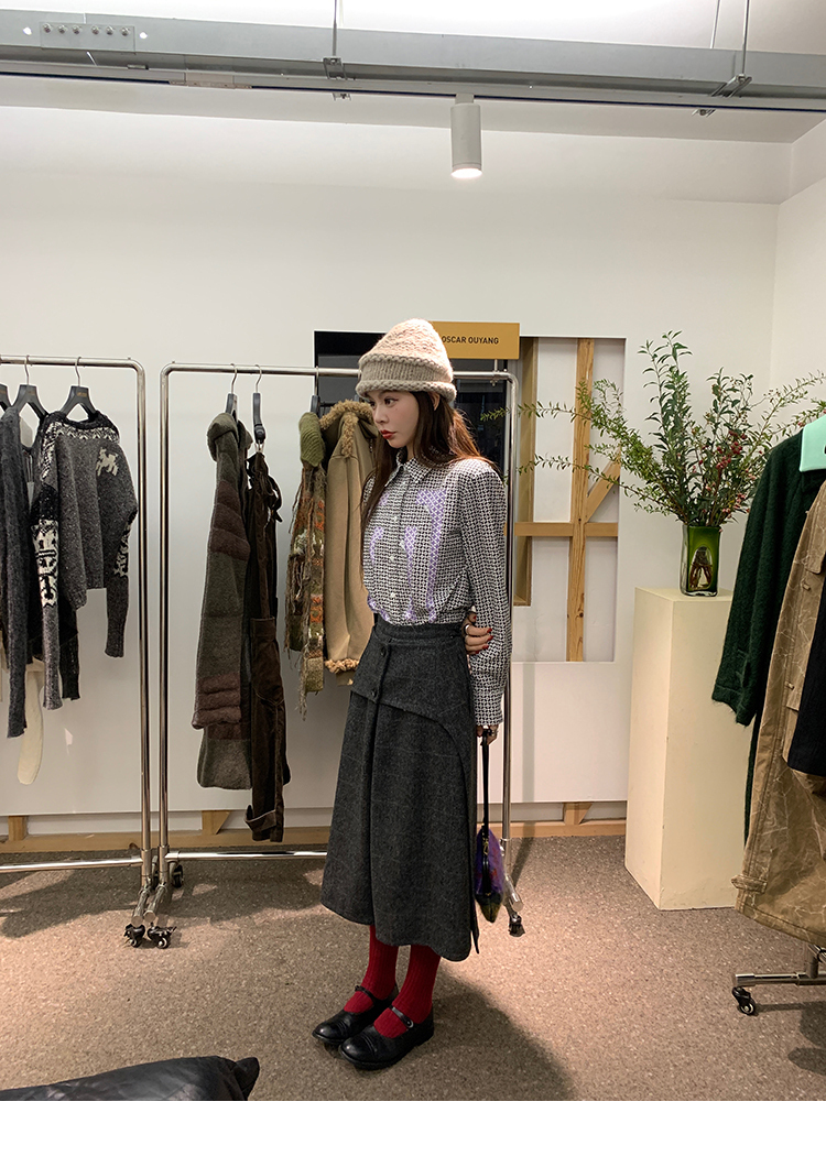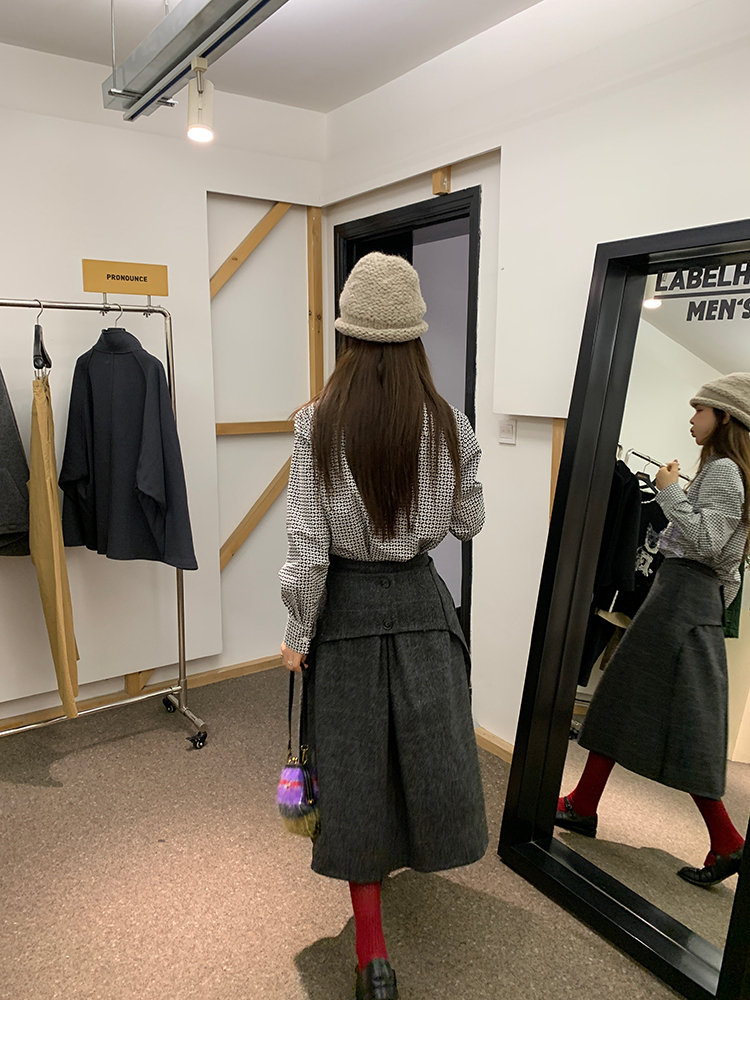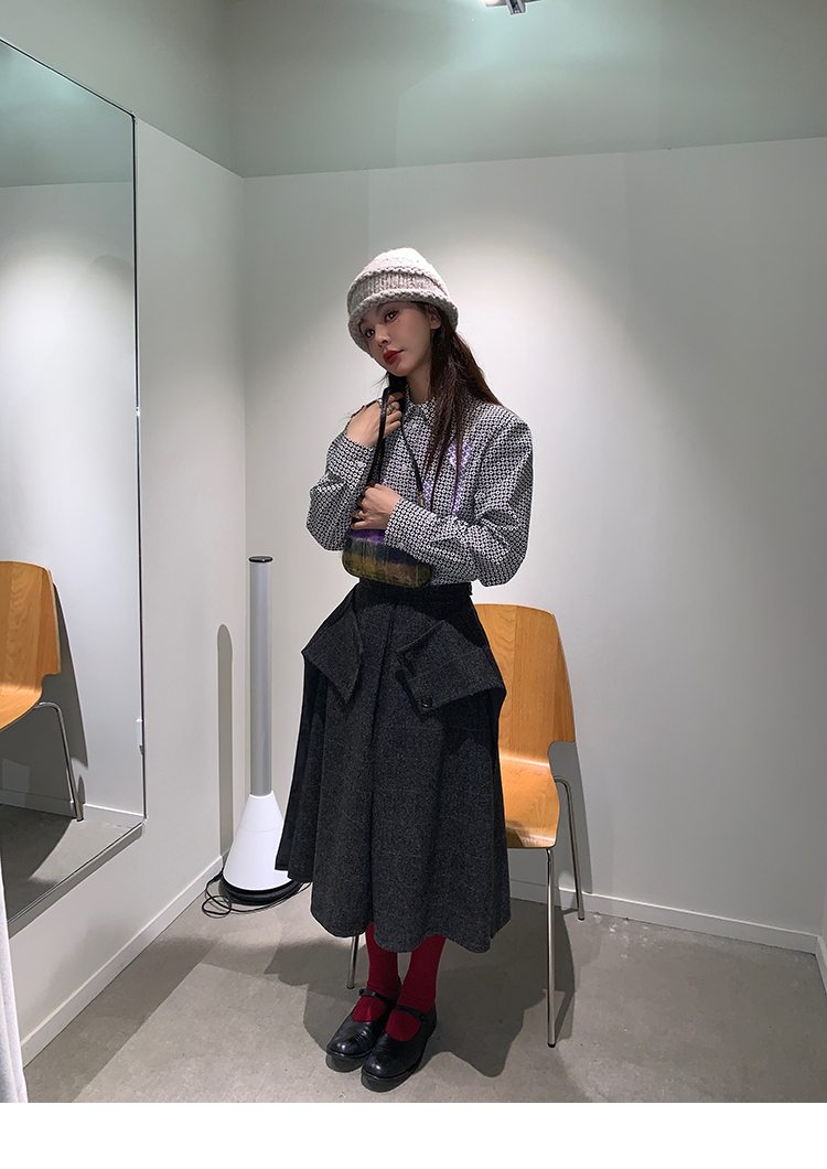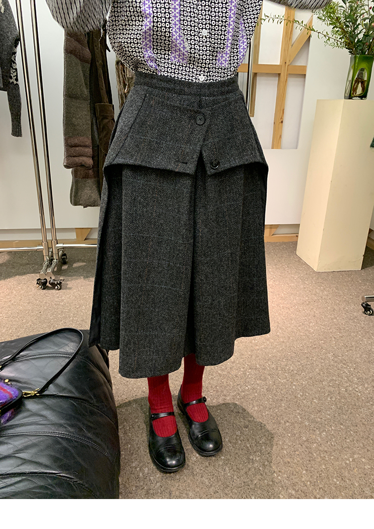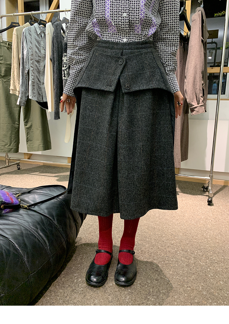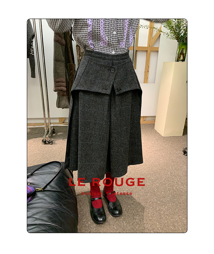 *o-ha-you*【FMNM25B506】暗格紋假兩件腰封羊毛呢半身裙