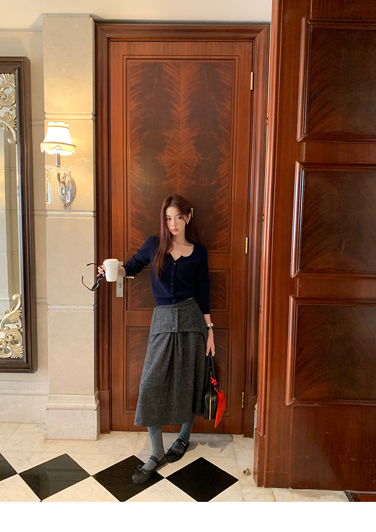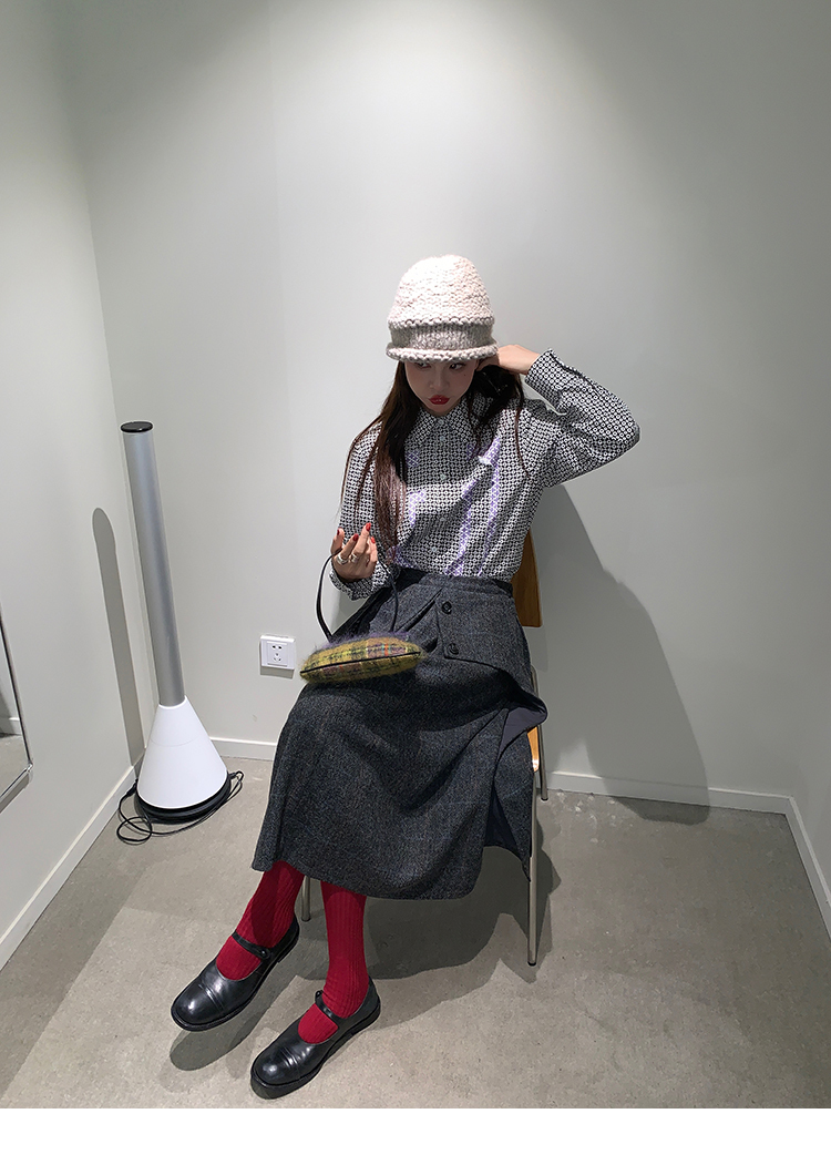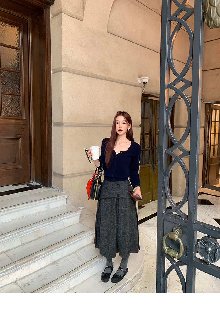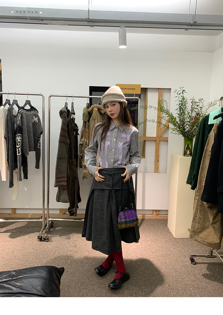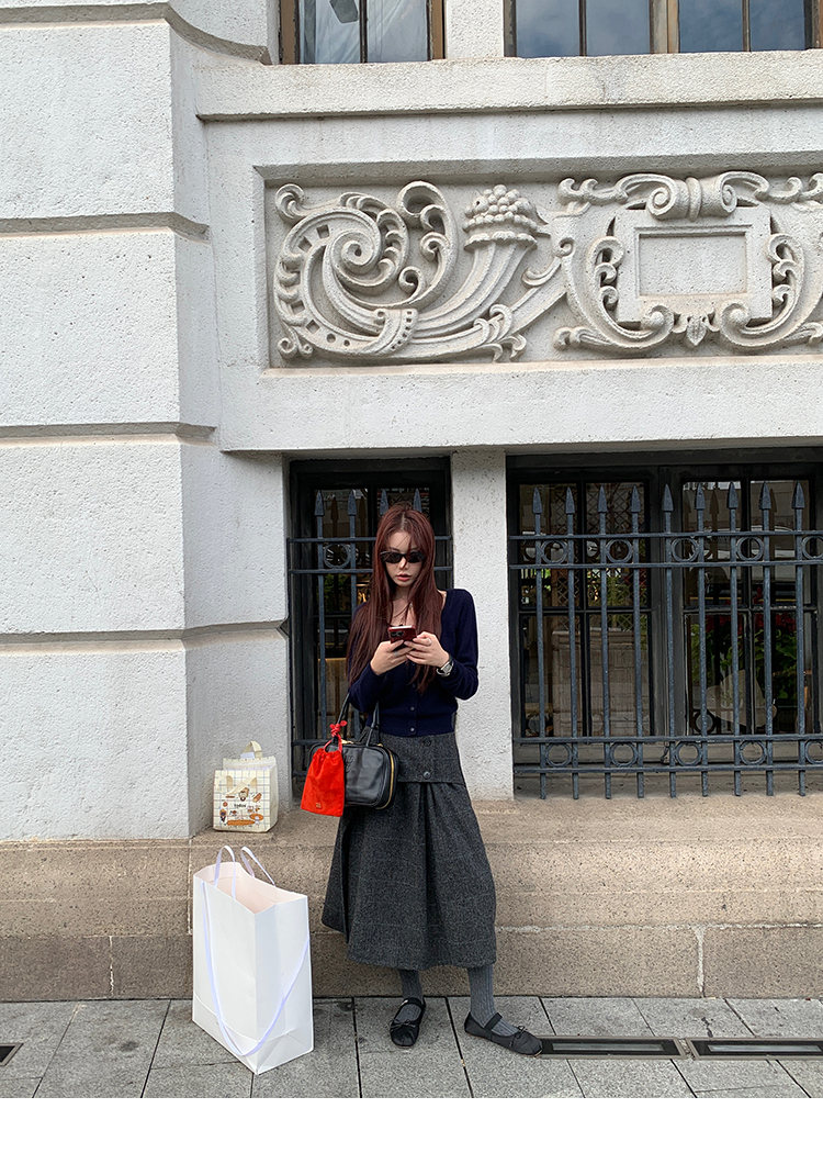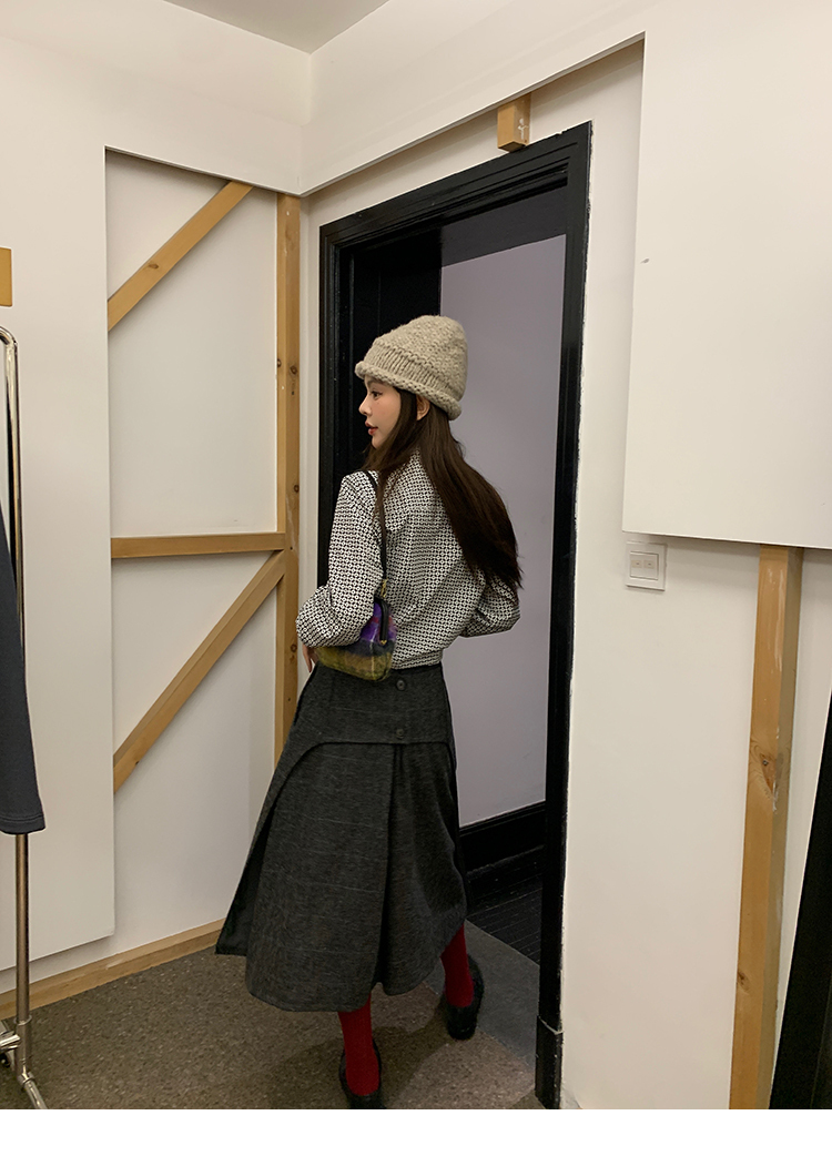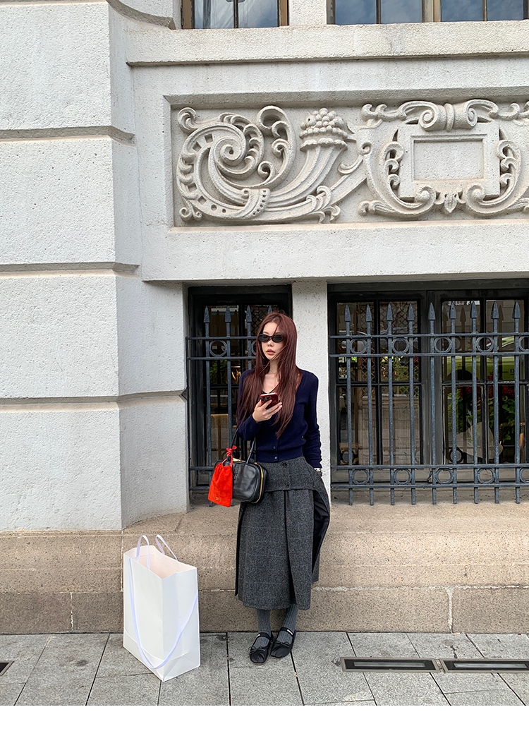 *o-ha-you*【FMNM25B506】暗格紋假兩件腰封羊毛呢半身裙