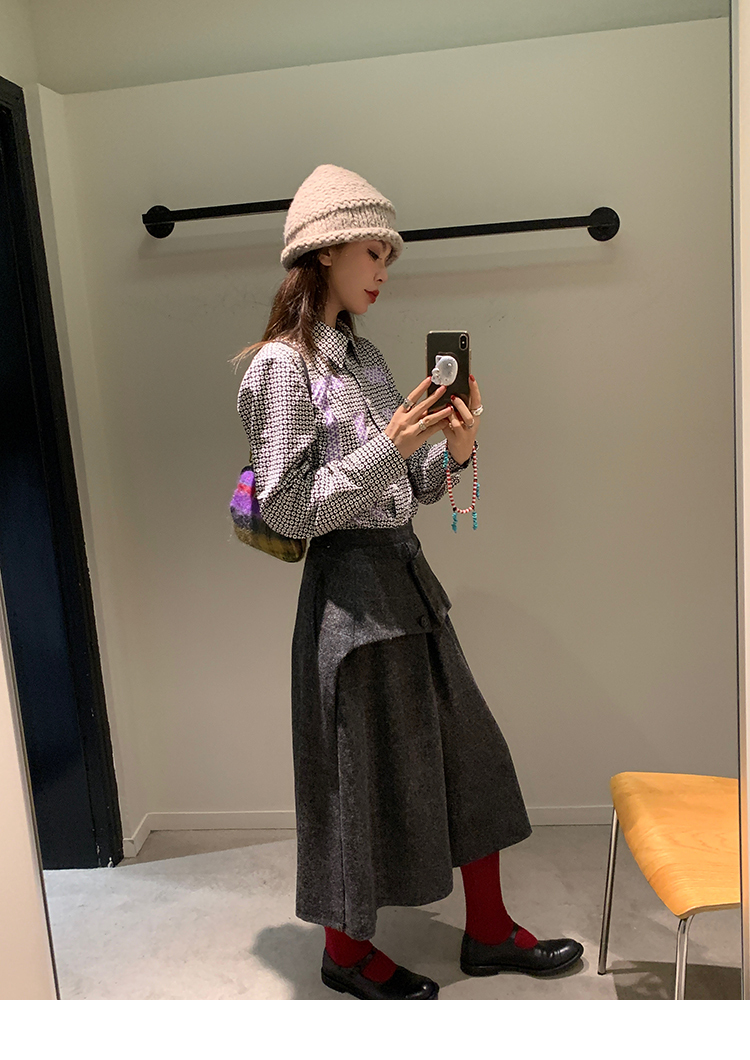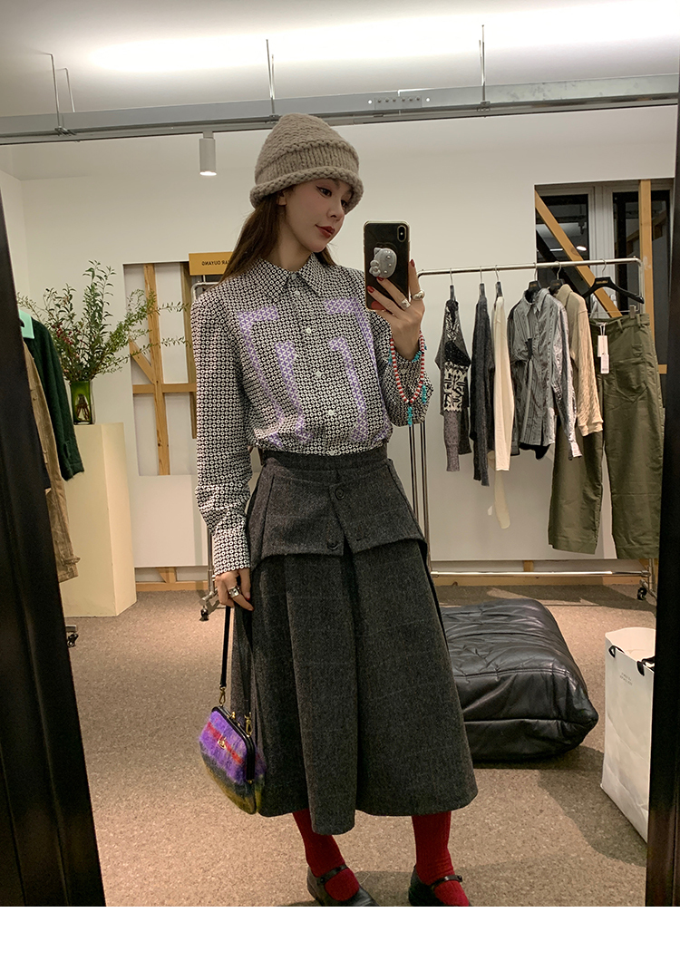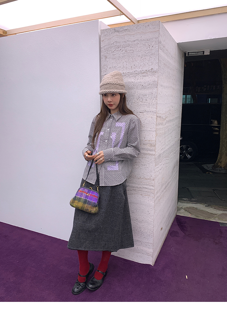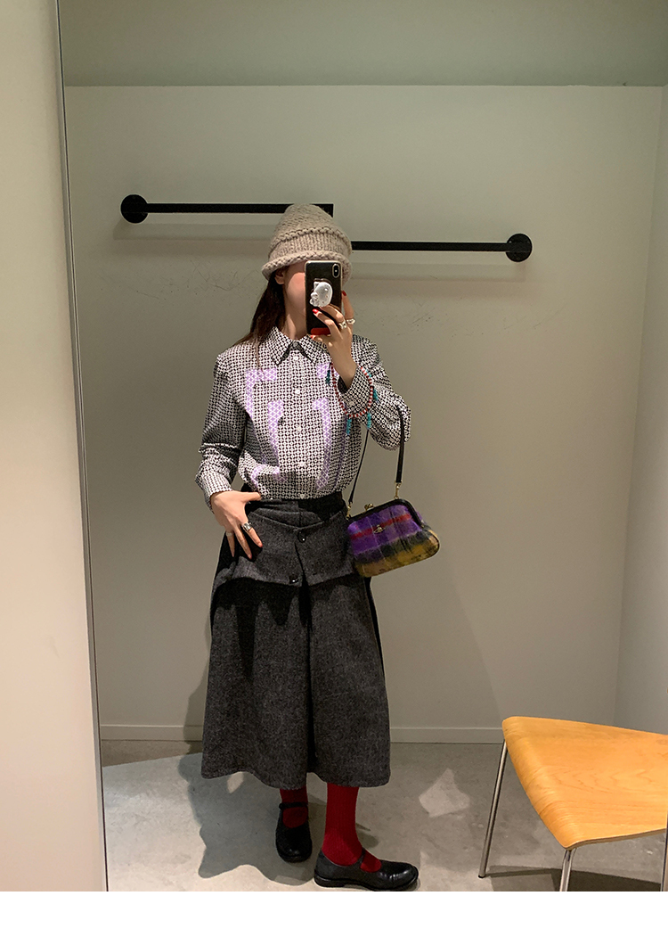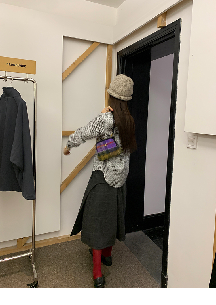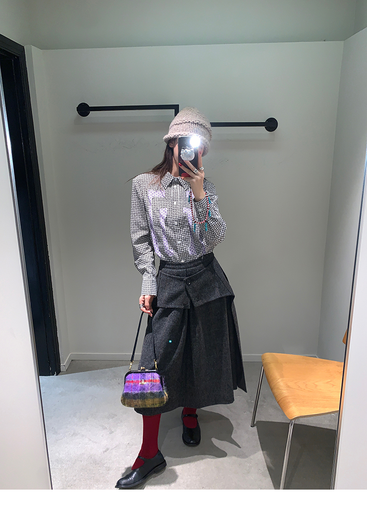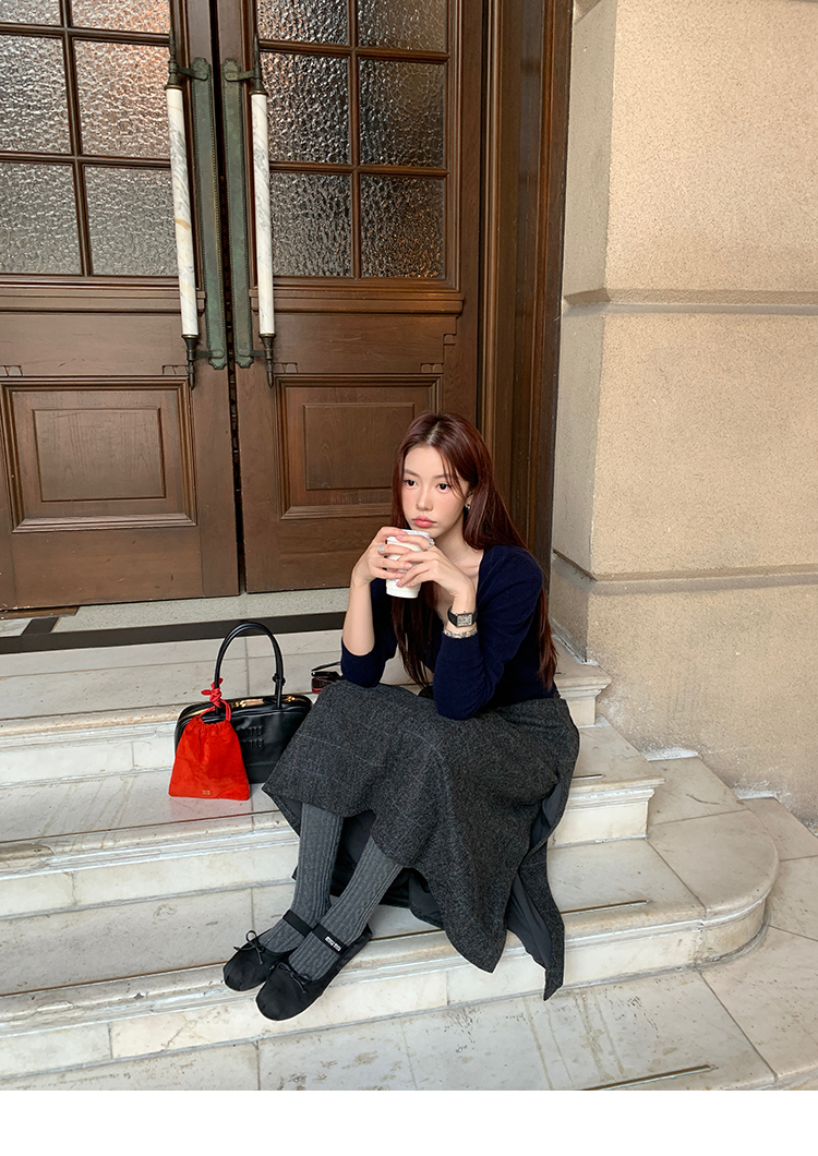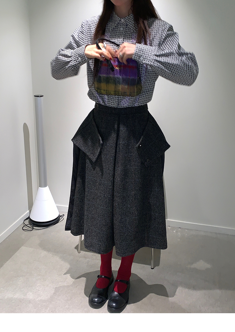 *o-ha-you*【FMNM25B506】暗格紋假兩件腰封羊毛呢半身裙