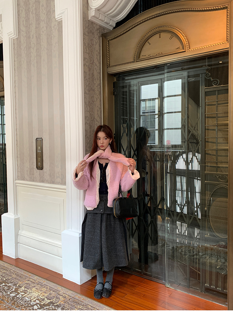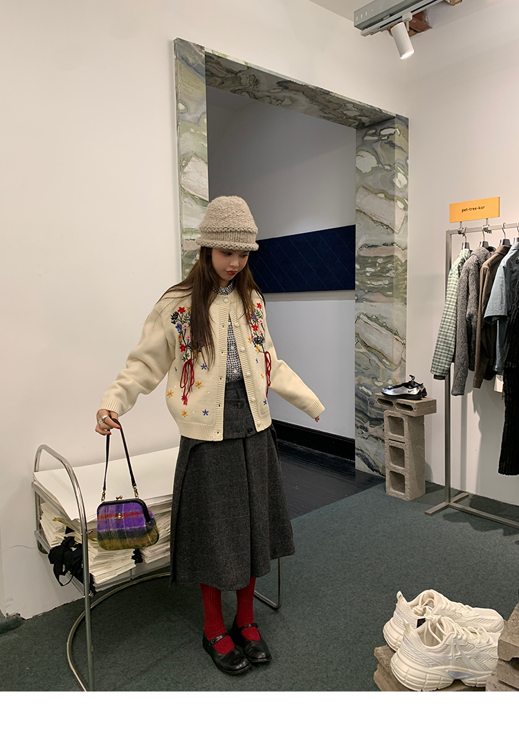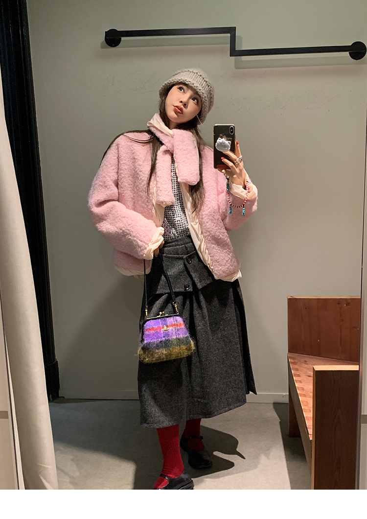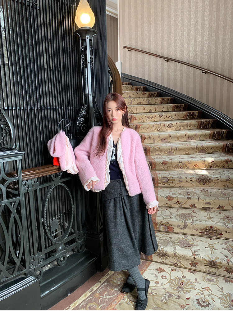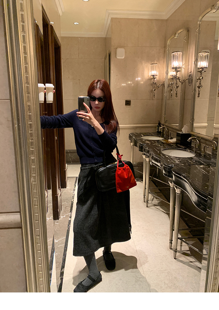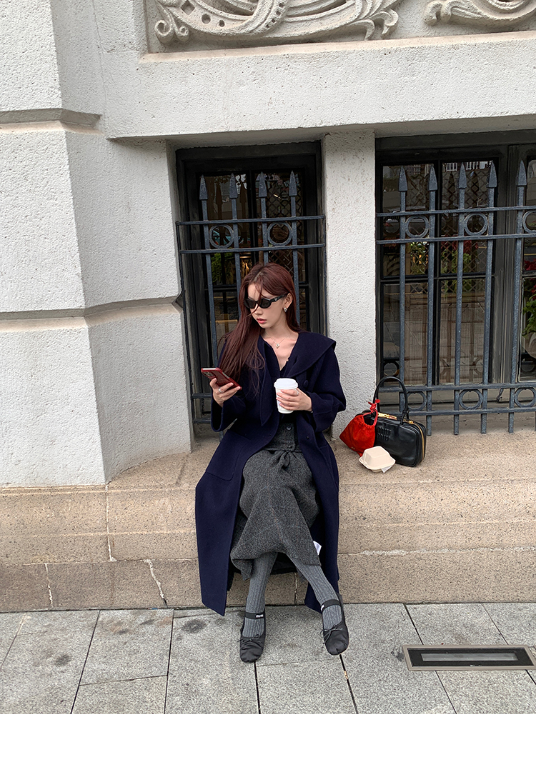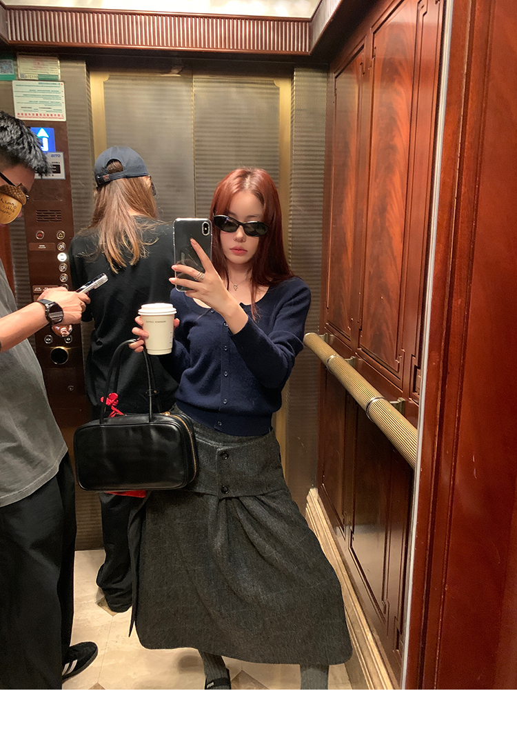 *o-ha-you*【FMNM25B506】暗格紋假兩件腰封羊毛呢半身裙