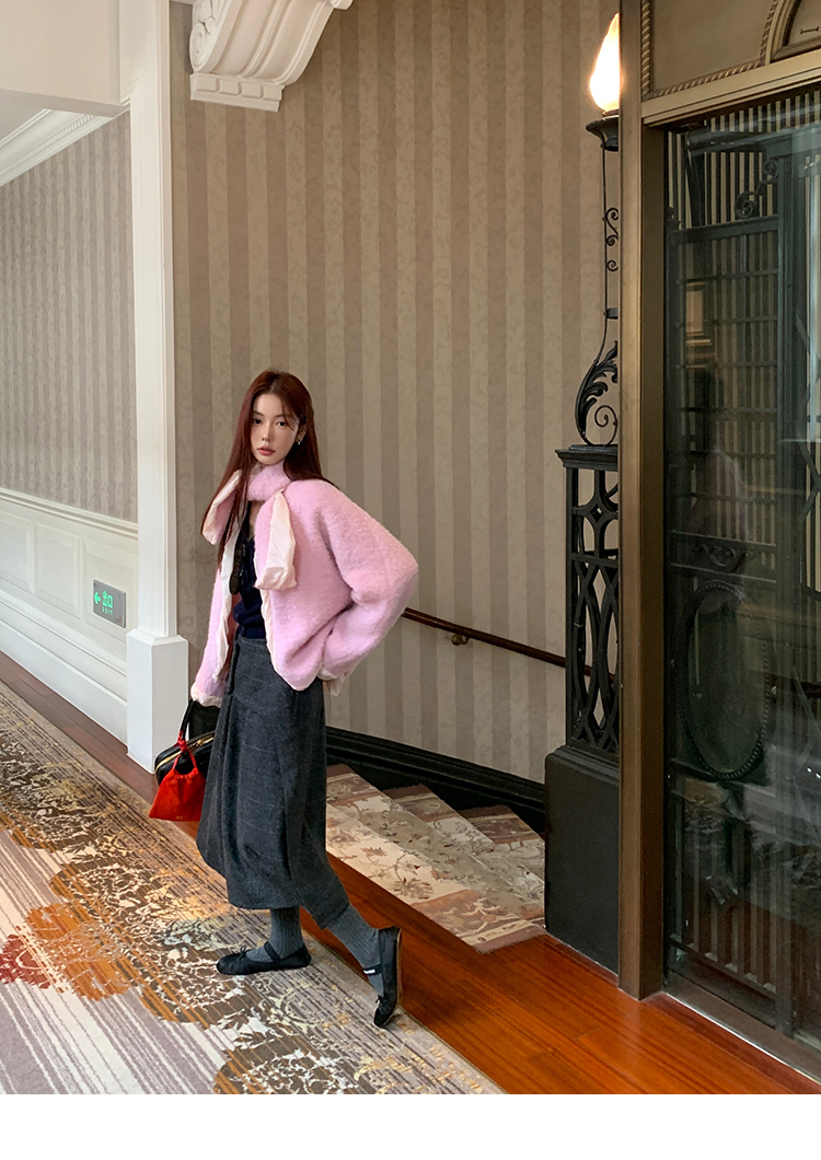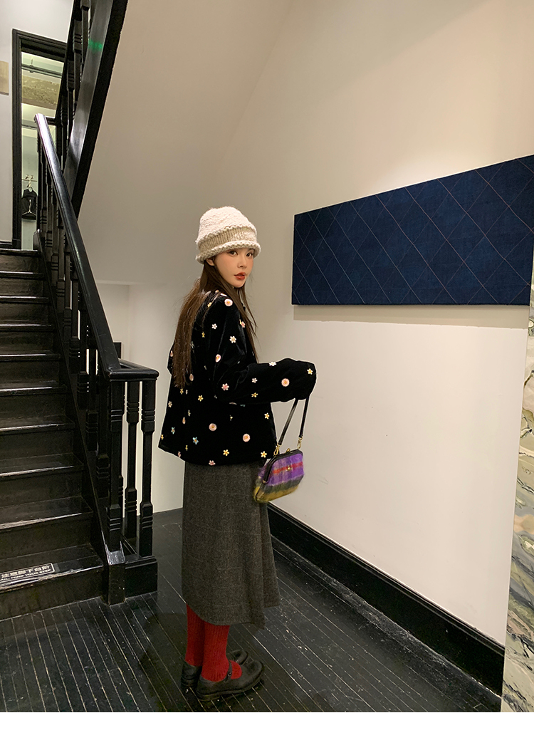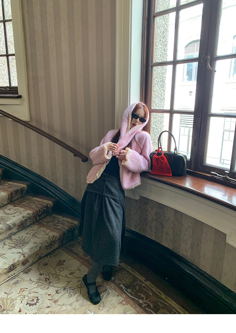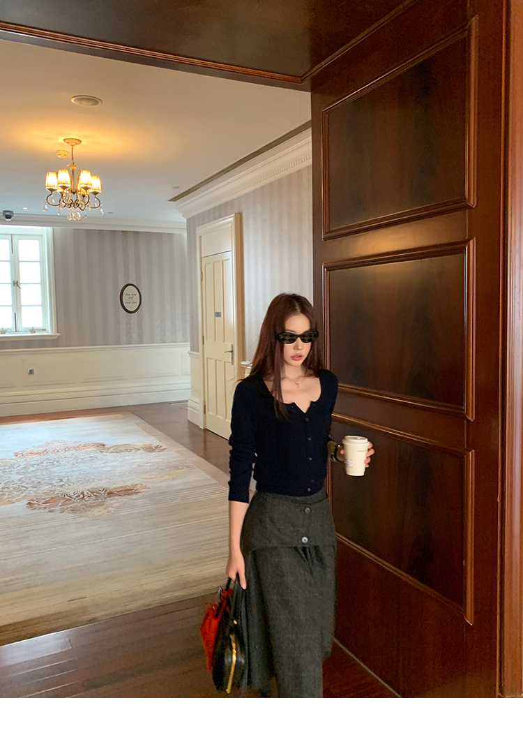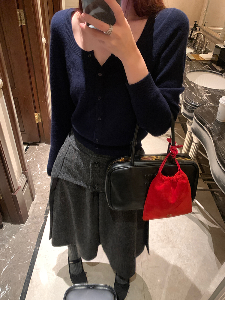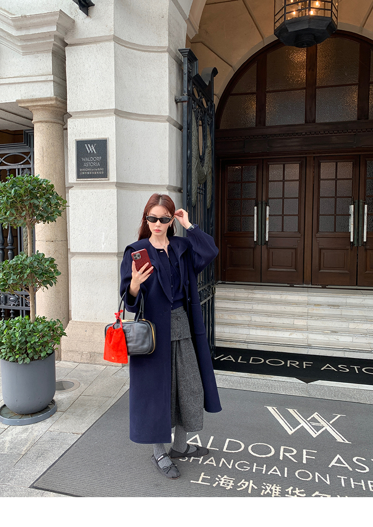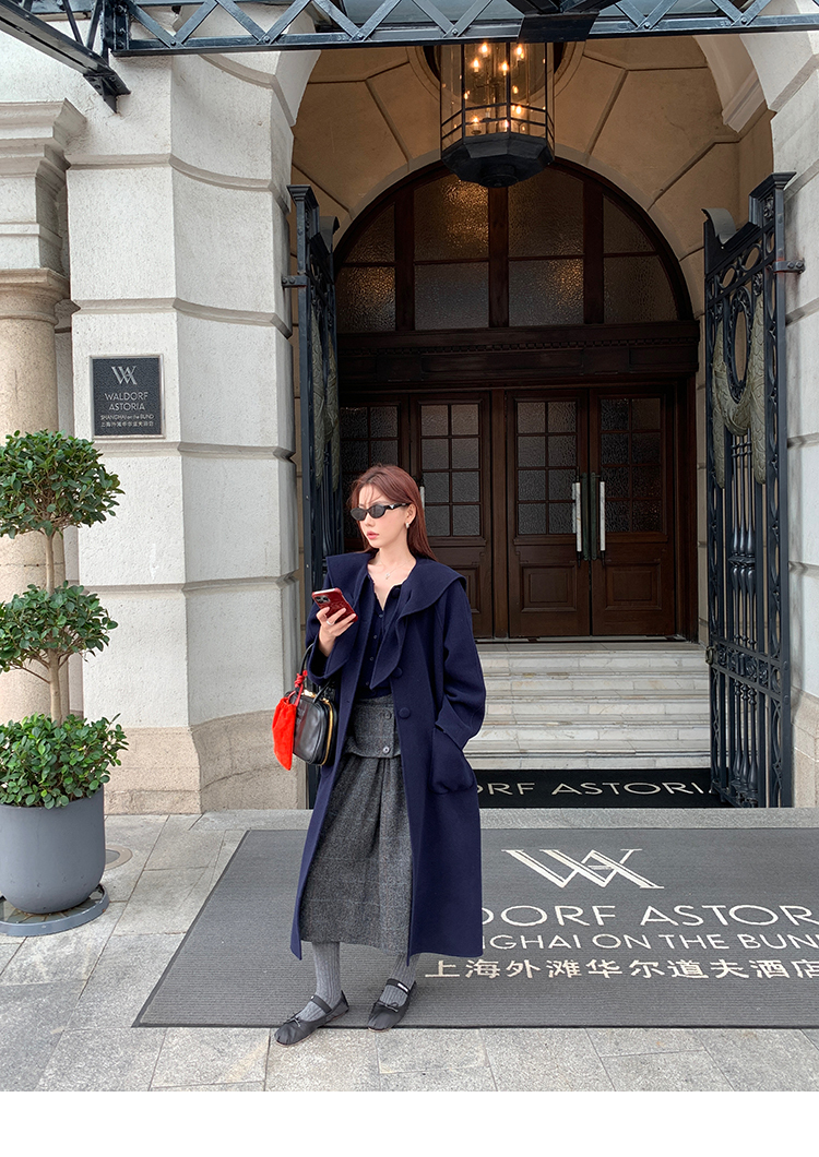 *o-ha-you*【FMNM25B506】暗格紋假兩件腰封羊毛呢半身裙