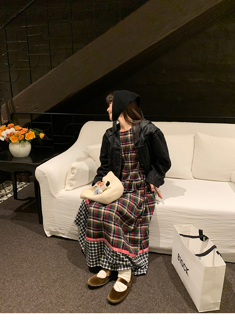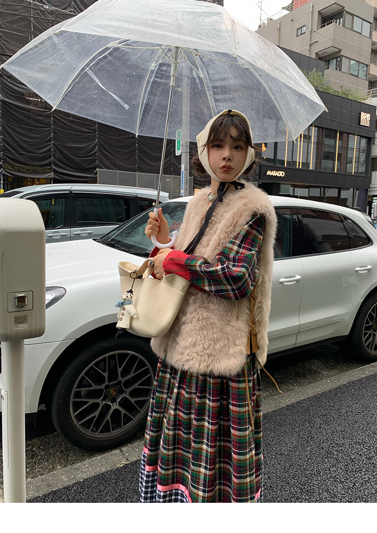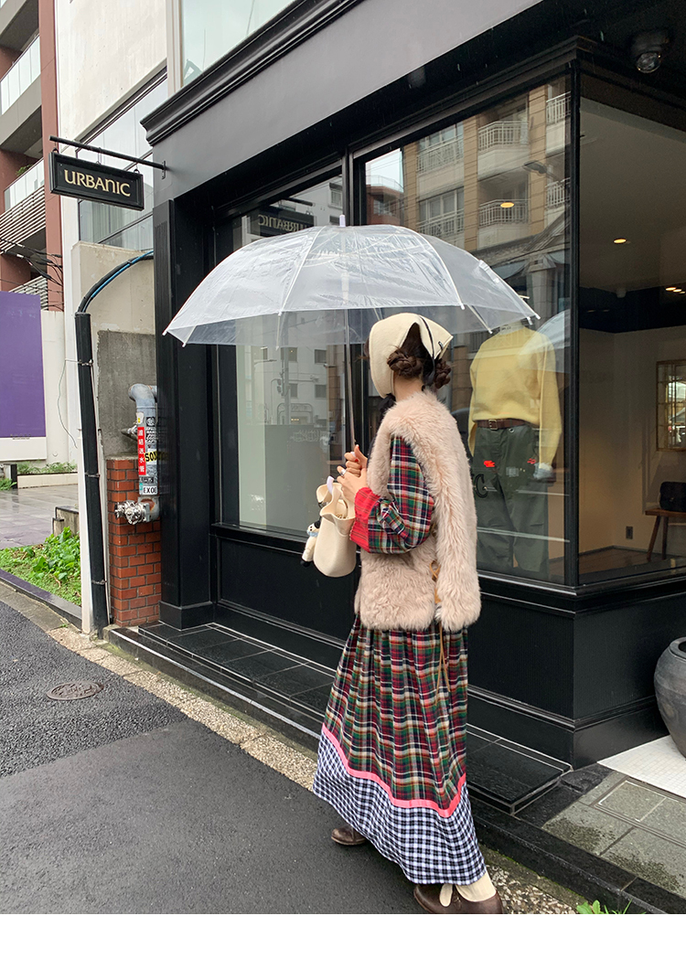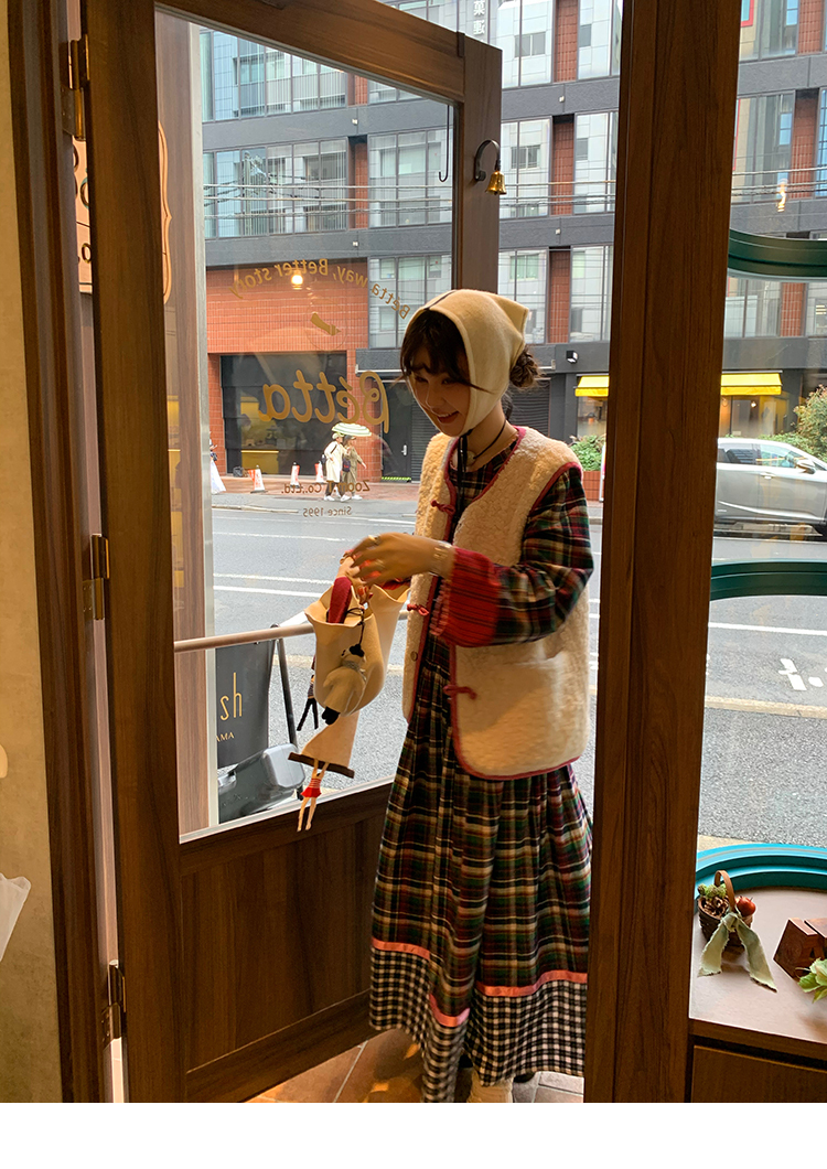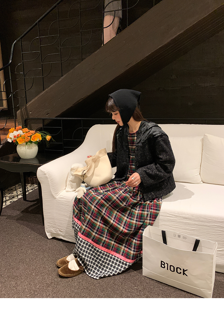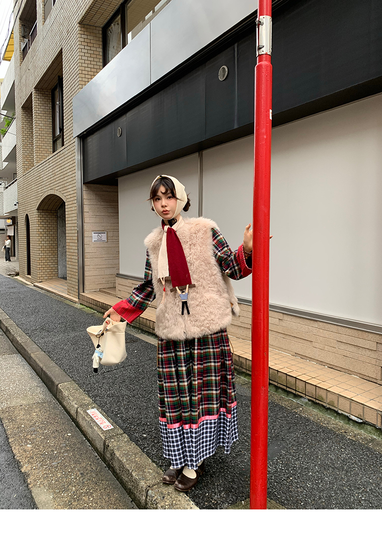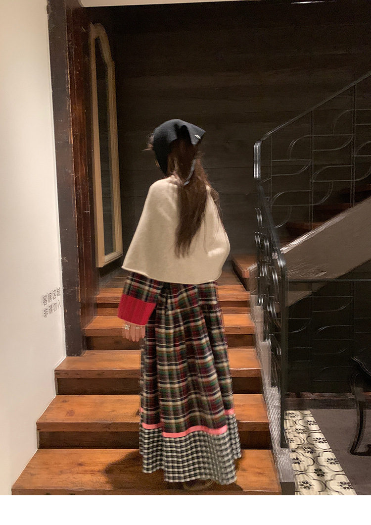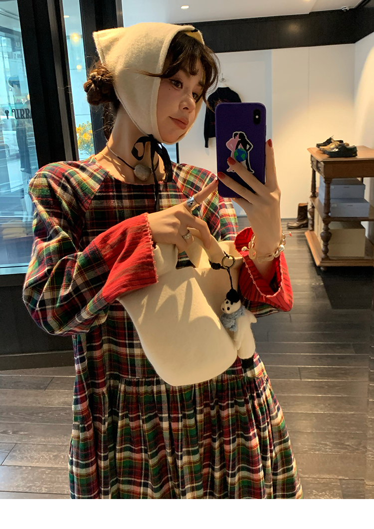 *o-ha-you*【FMNM25Q464】倫敦文藝少女紅綠格拼色曲牙花邊連衣裙長洋裝