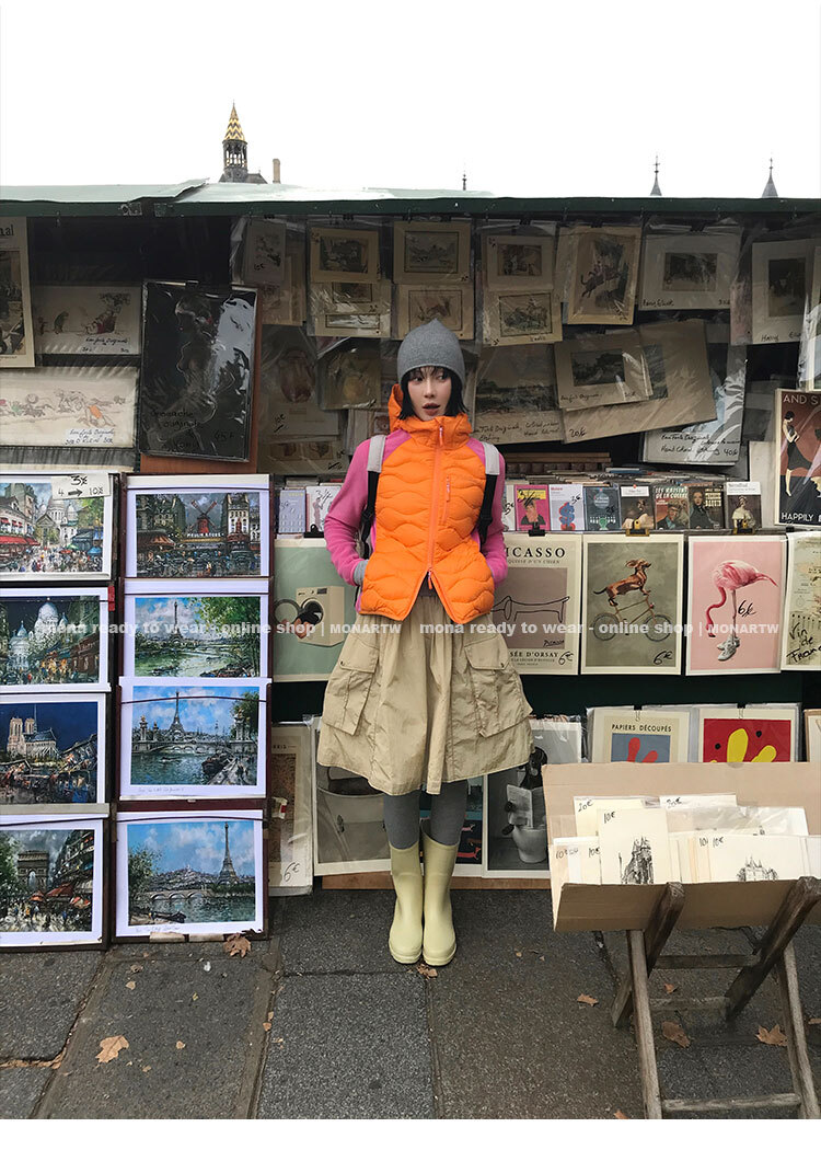 整件裙子都絎有車粗線設計,更加的具有復古工裝感