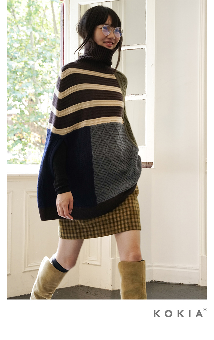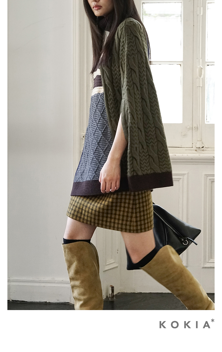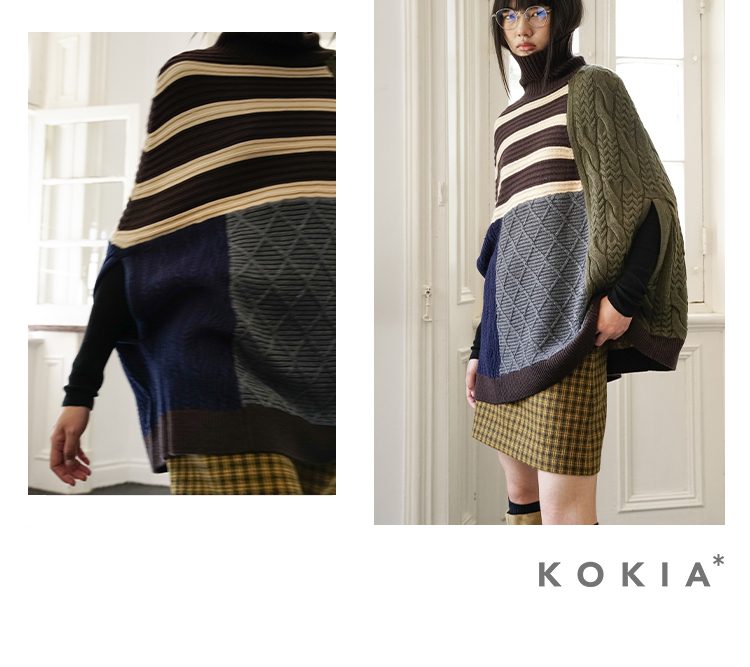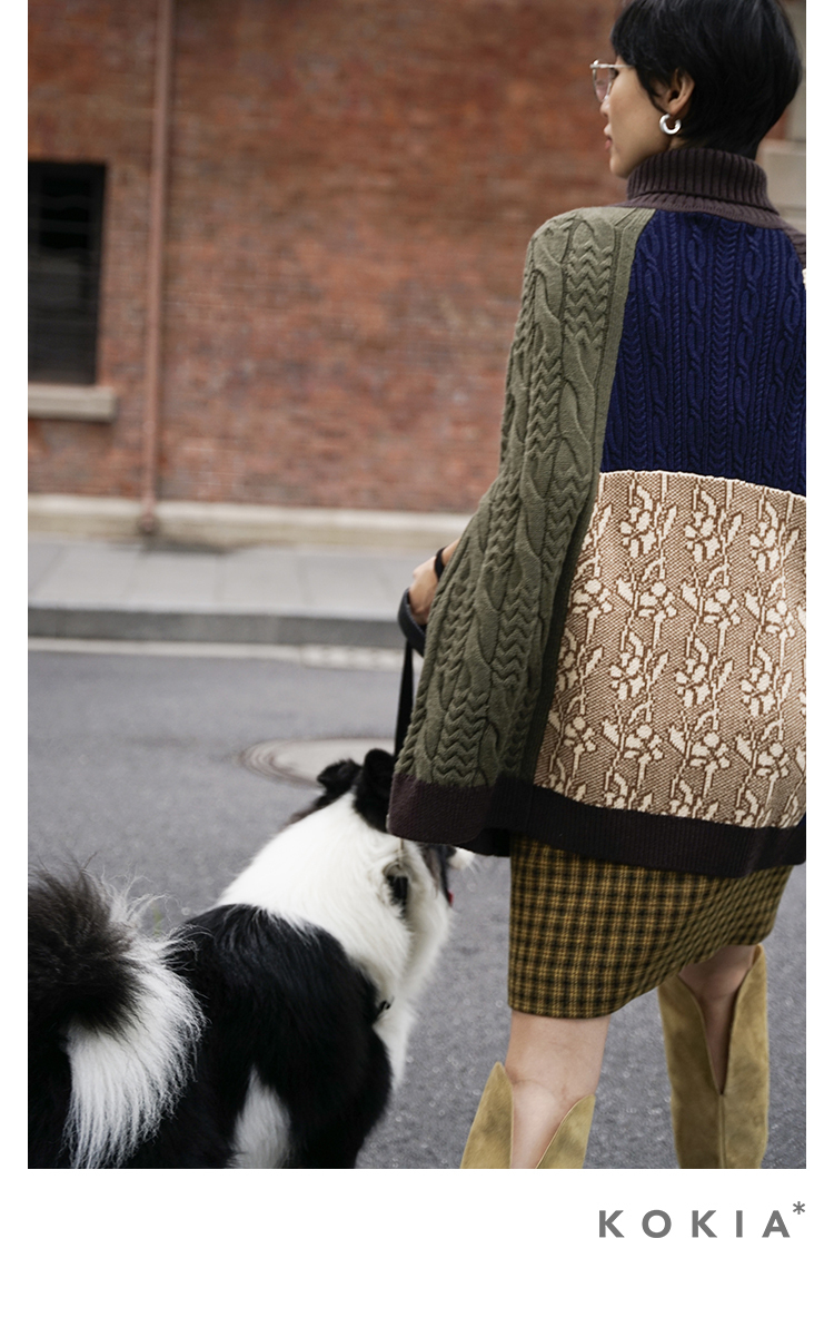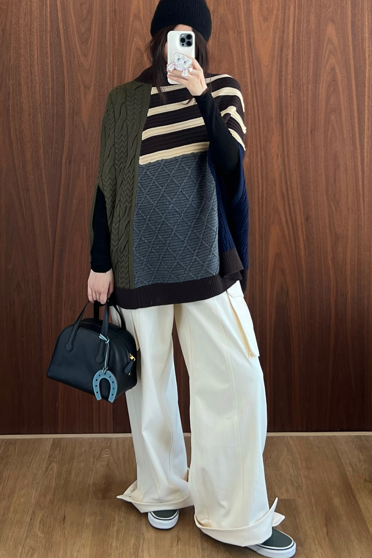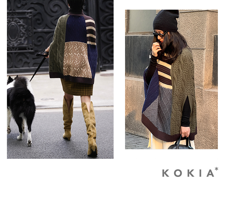 *o-ha-you*【FMNW338】重工Merino羊毛絞花菱格麻花提花拼色高領斗篷毛衣外套