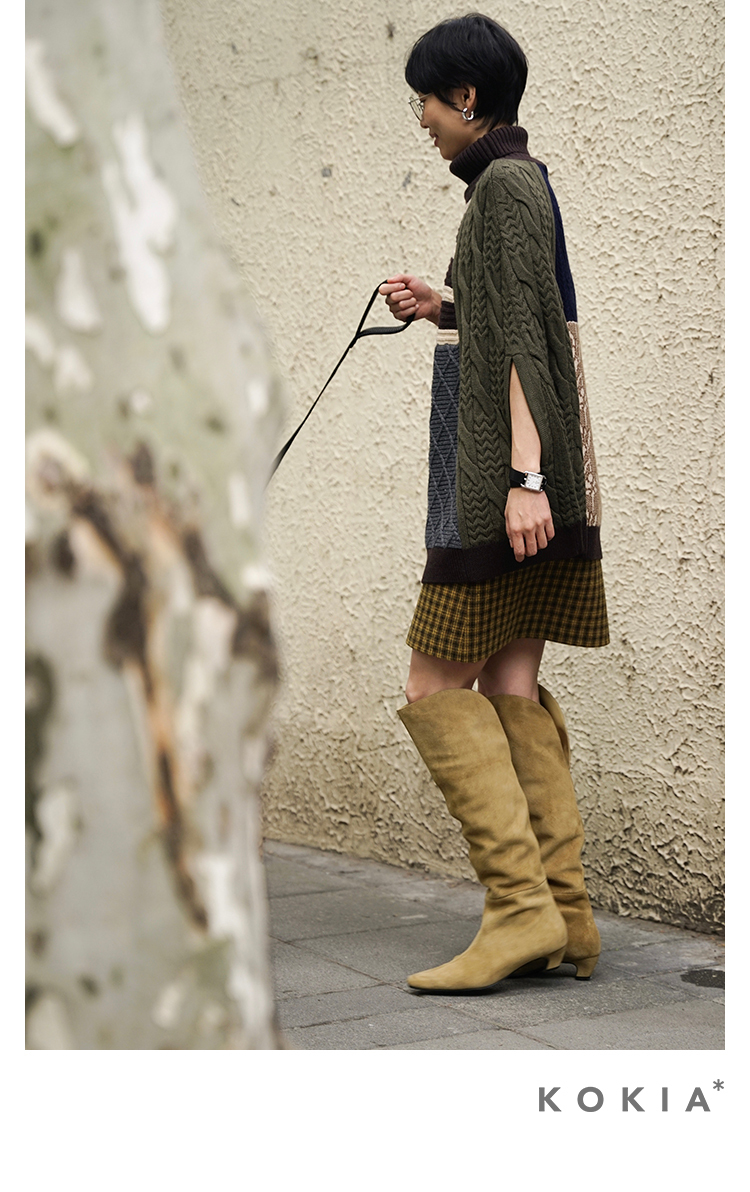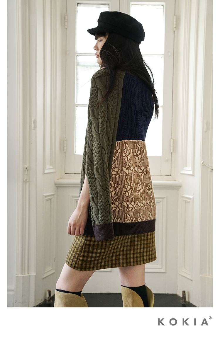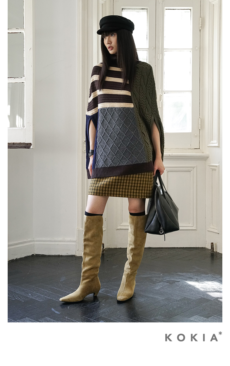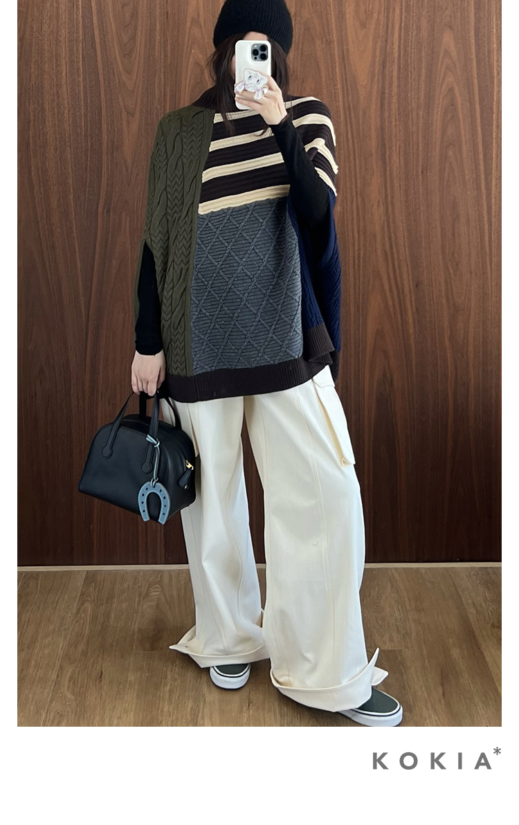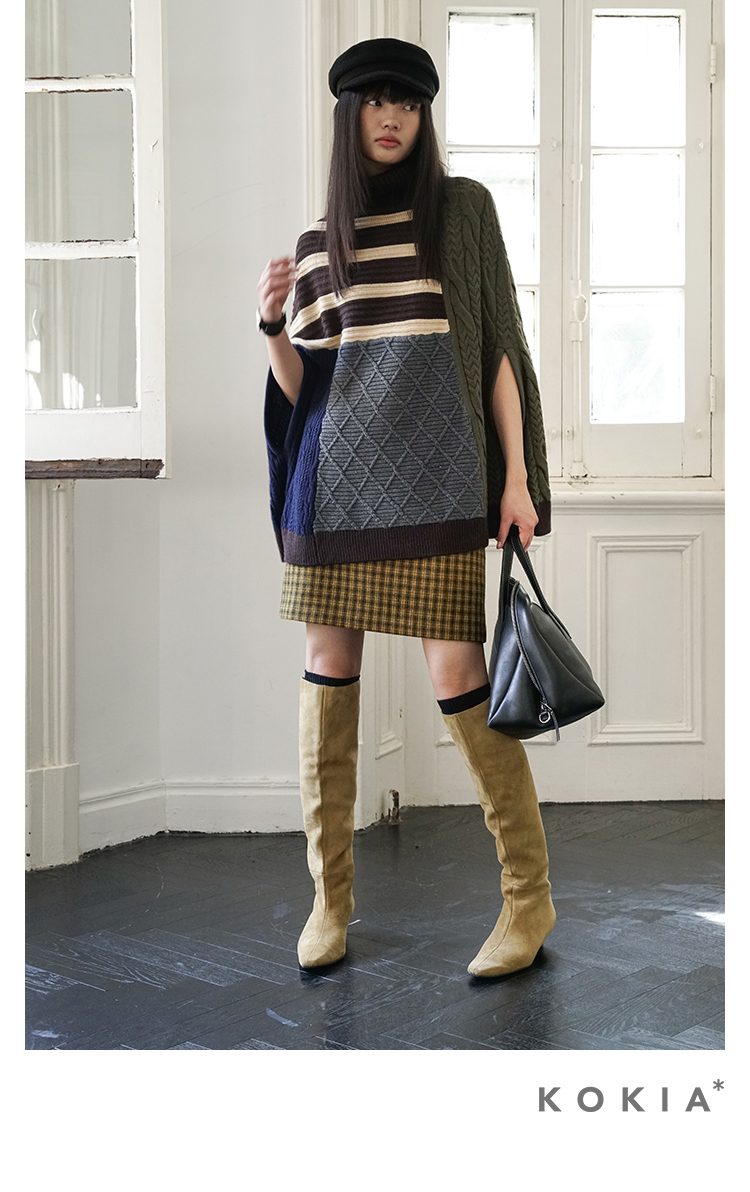 *o-ha-you*【FMNW338】重工Merino羊毛絞花菱格麻花提花拼色高領斗篷毛衣外套