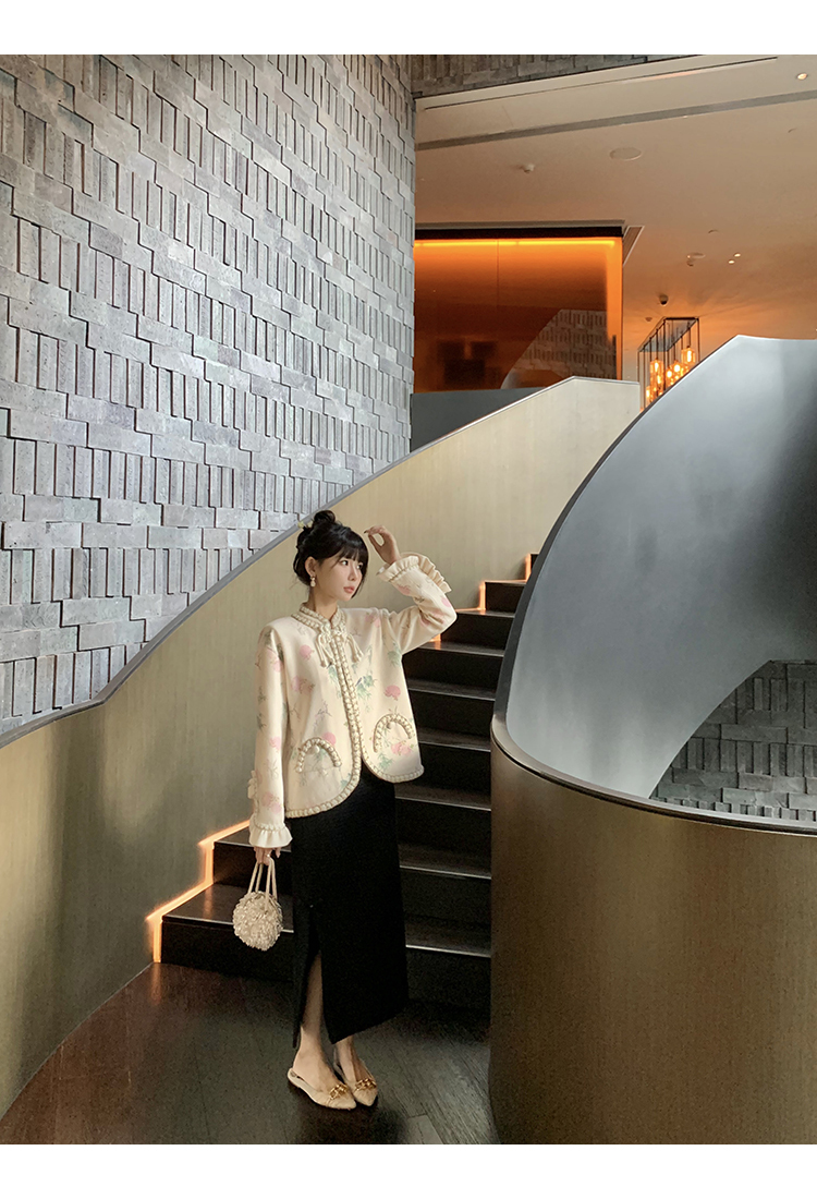 盤扣設計蕾絲花邊和盤扣點綴,平衡溫柔浪漫與法式氣質
