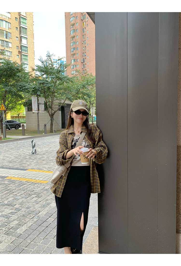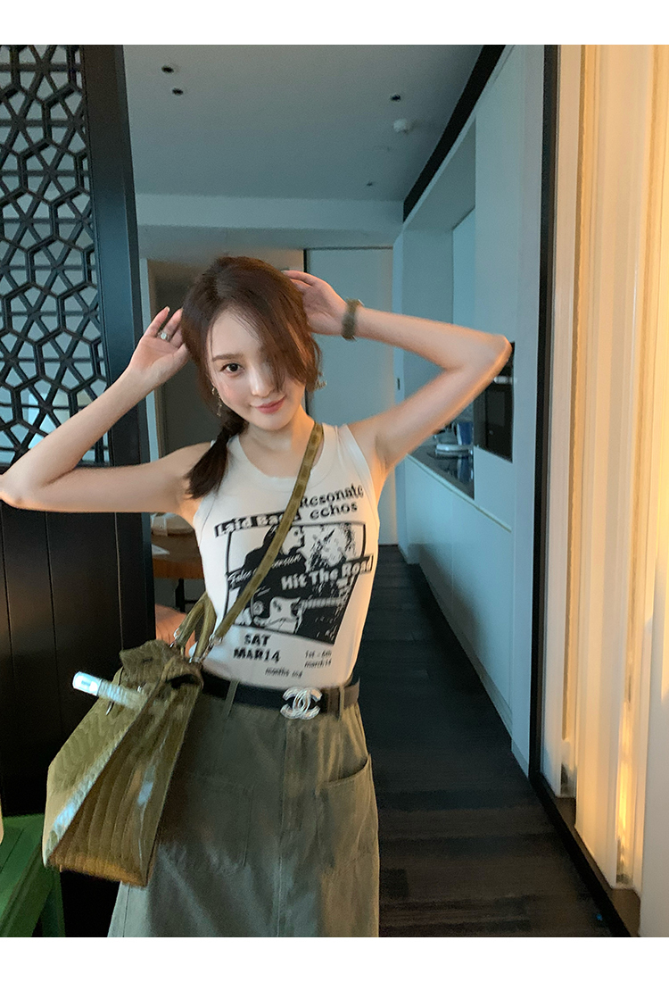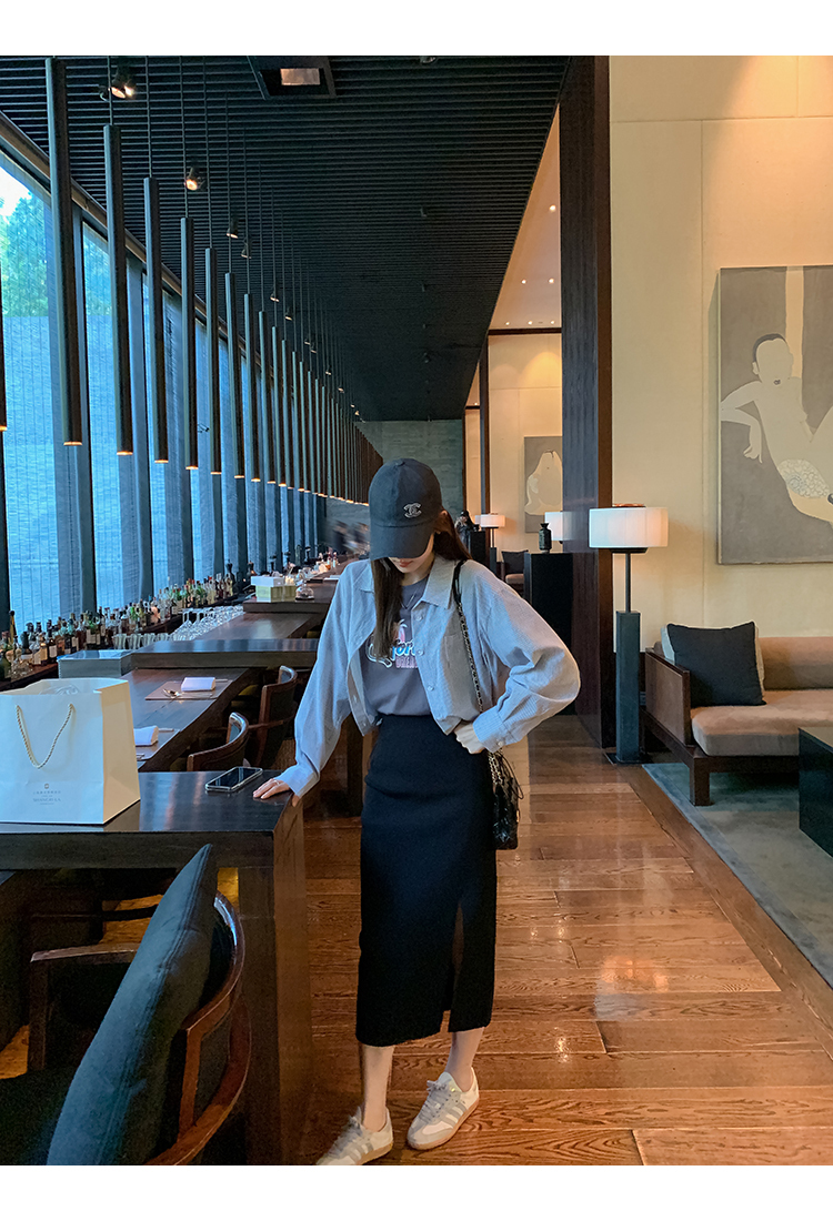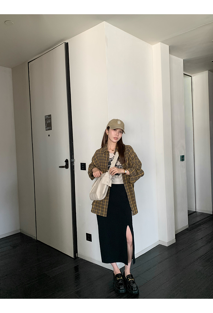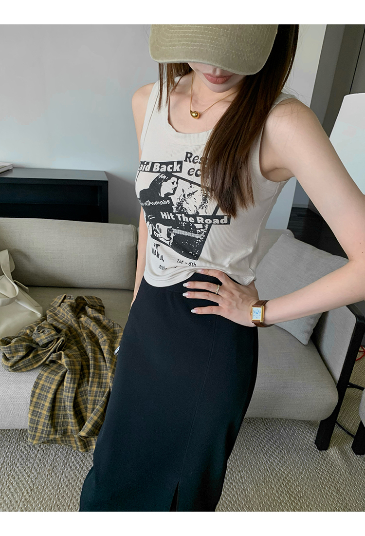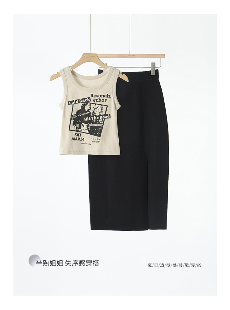 *o-ha-you*【FMQB2043005】半熟姊姊 失序感穿搭 美式字母短背心/伊力特開衩針織半裙套裝