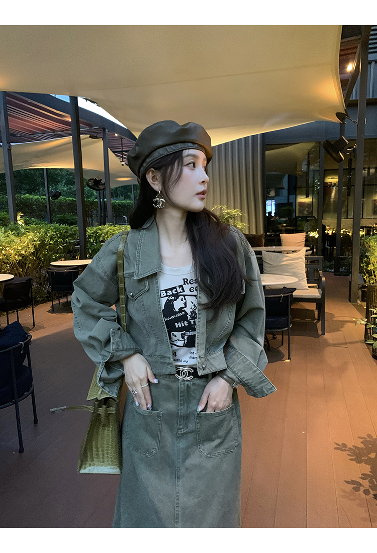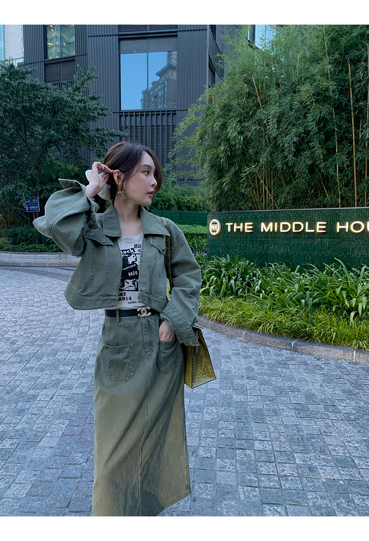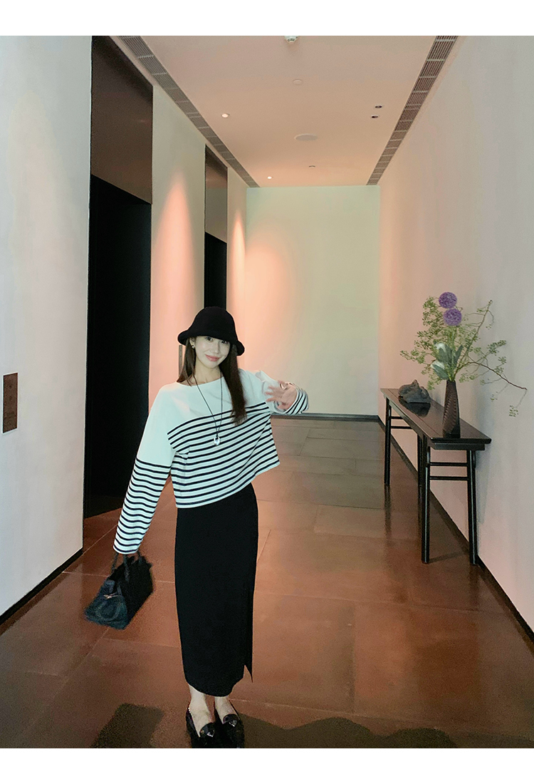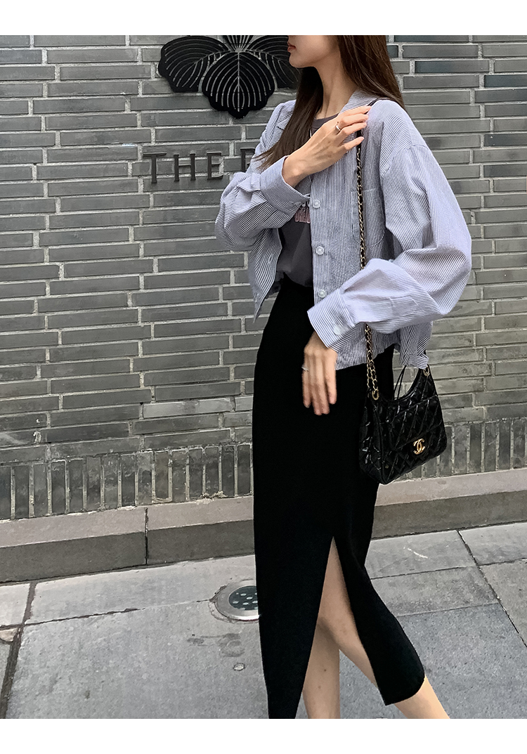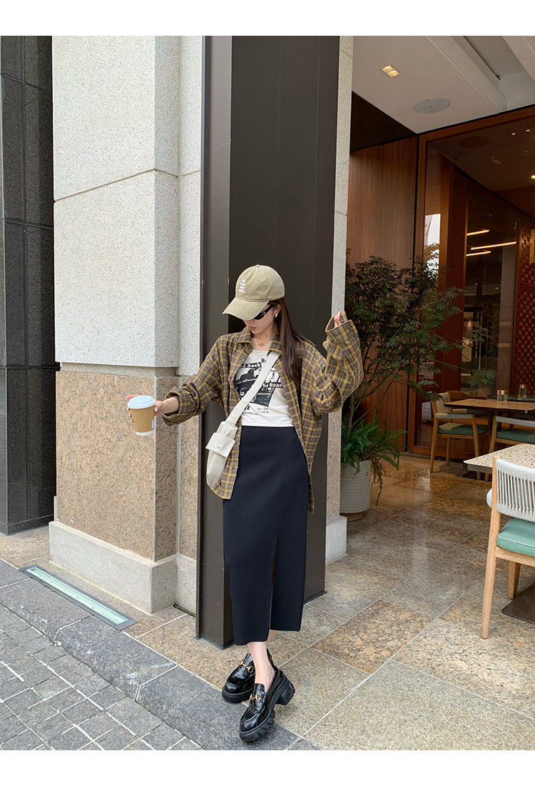 *o-ha-you*【FMQB2043005】半熟姊姊 失序感穿搭 美式字母短背心/伊力特開衩針織半裙套裝