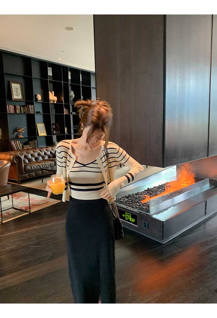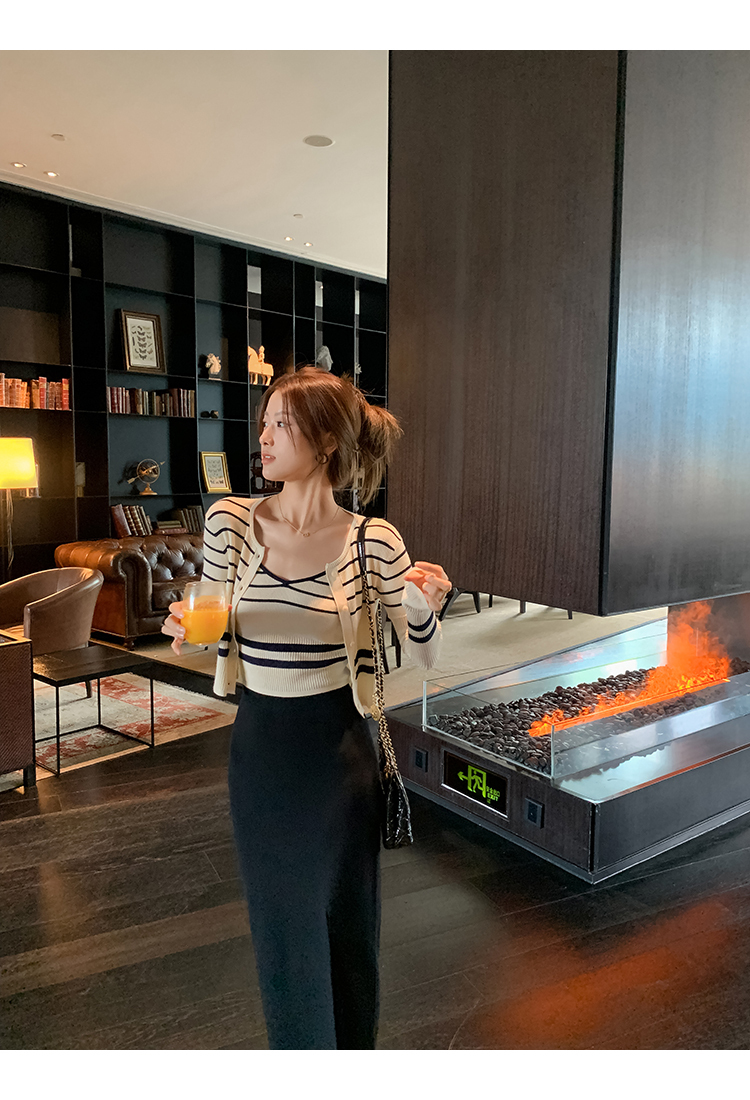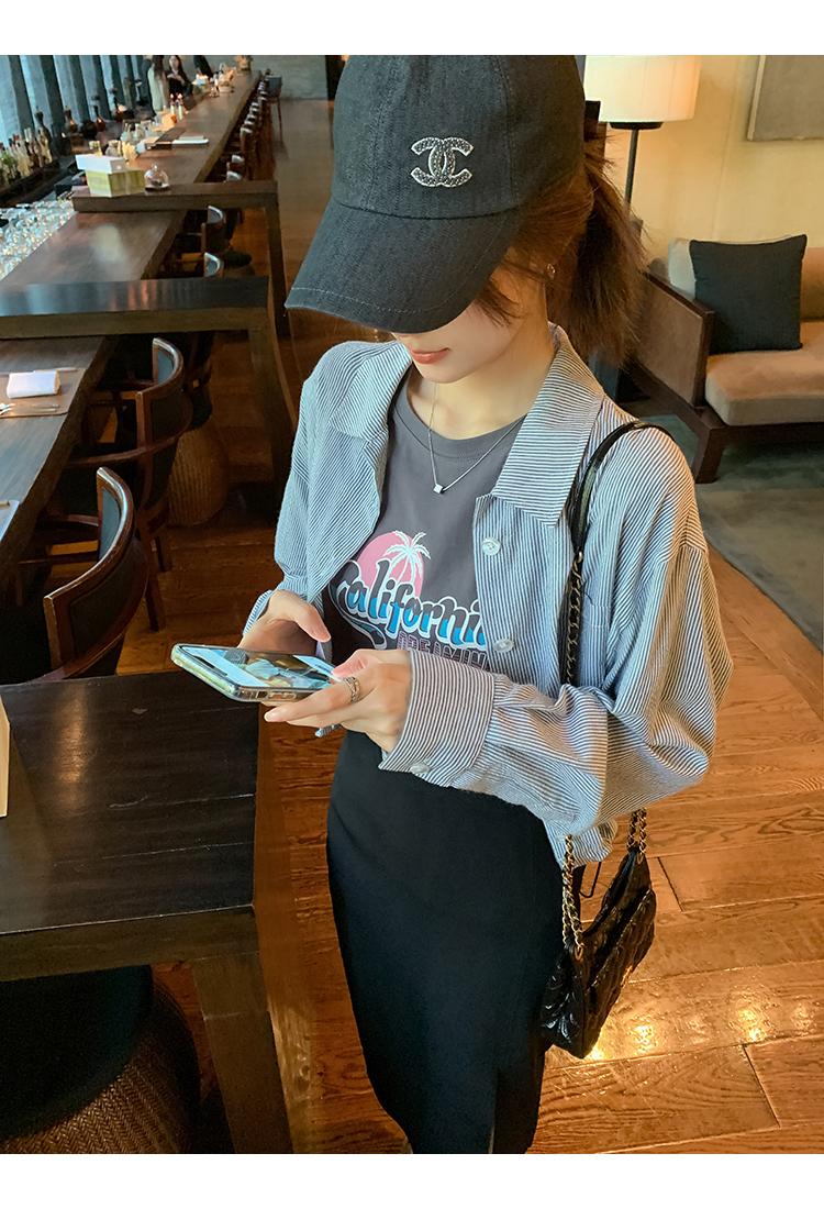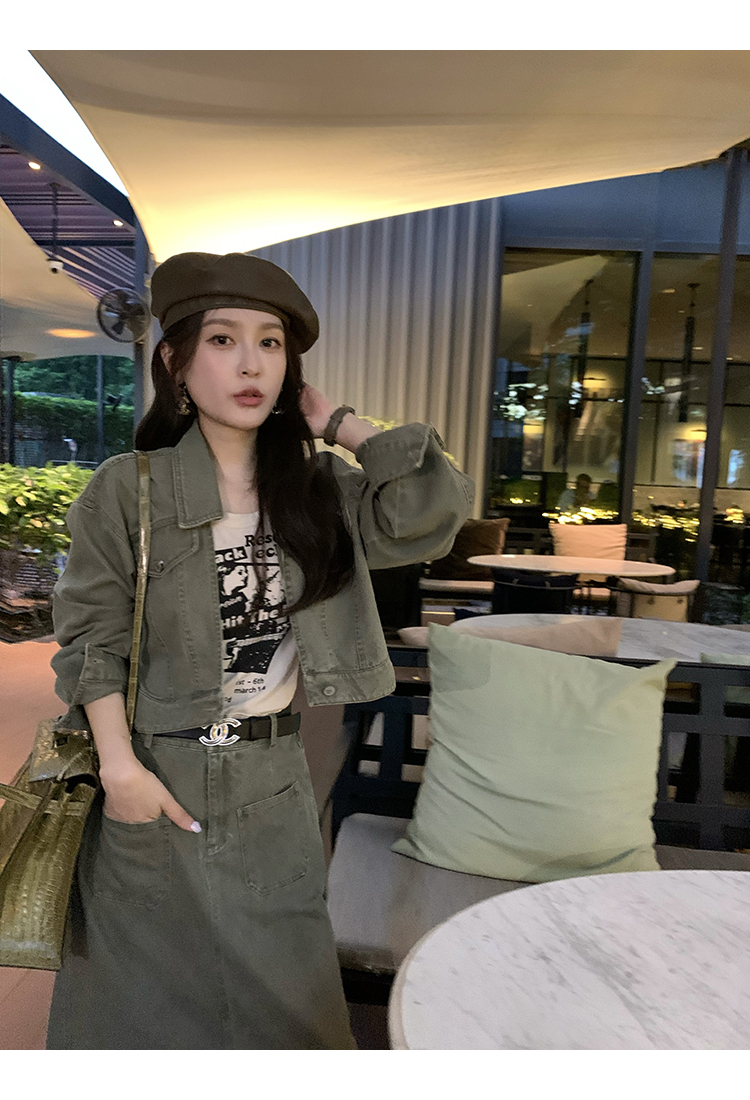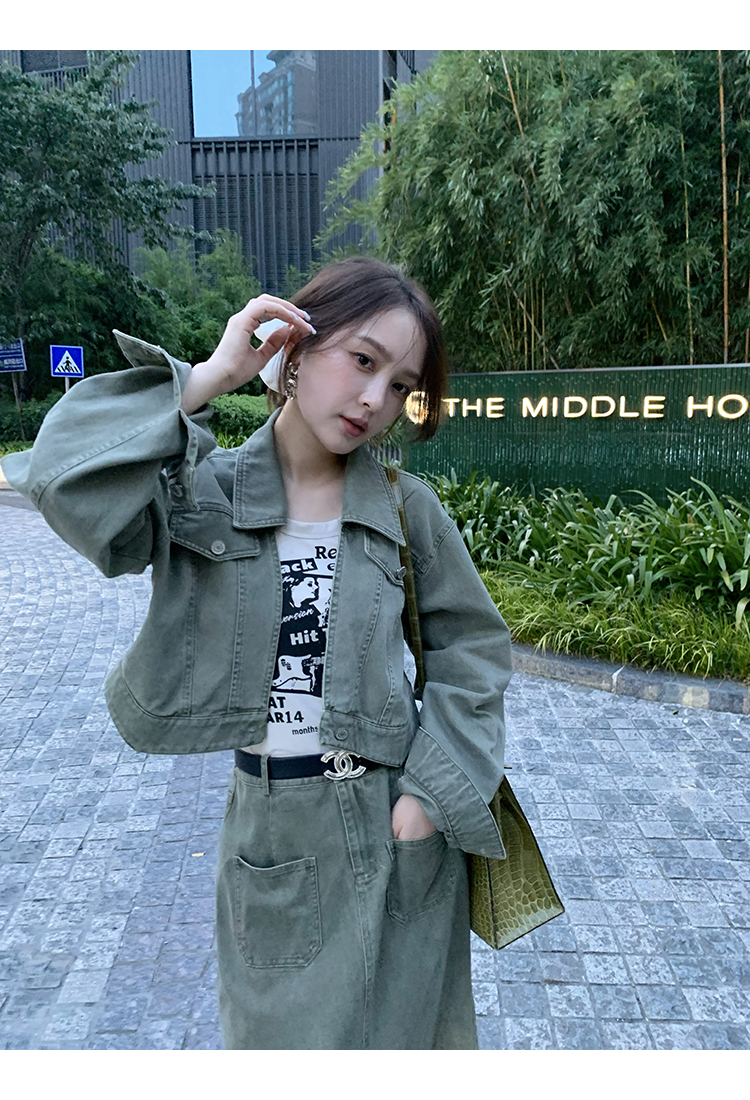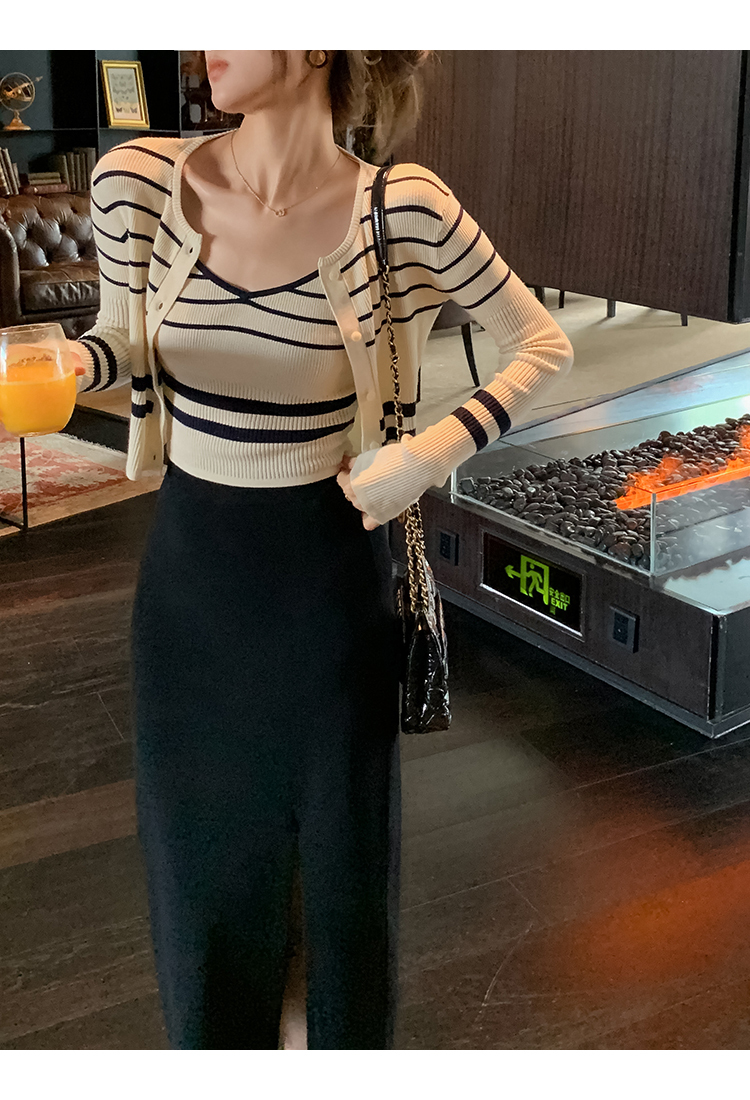 *o-ha-you*【FMQB2043005】半熟姊姊 失序感穿搭 美式字母短背心/伊力特開衩針織半裙套裝