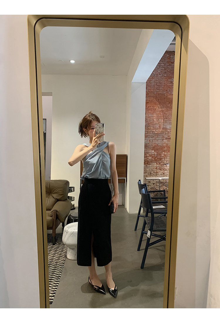 裙擺設計裙擺開衩設計,能拉長腿部線條,修飾身材比例