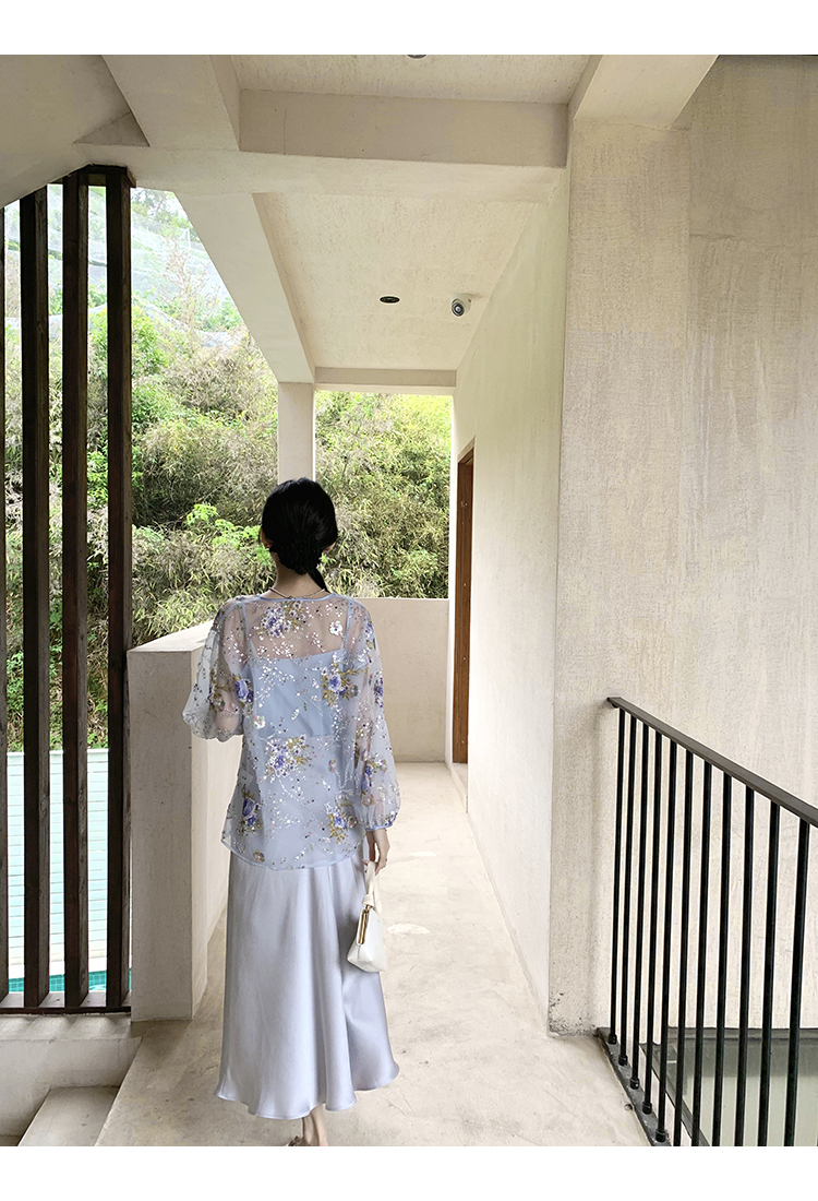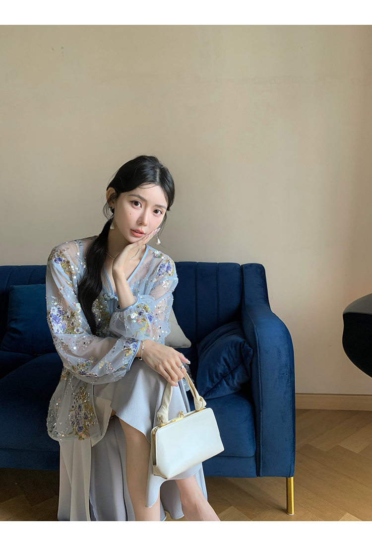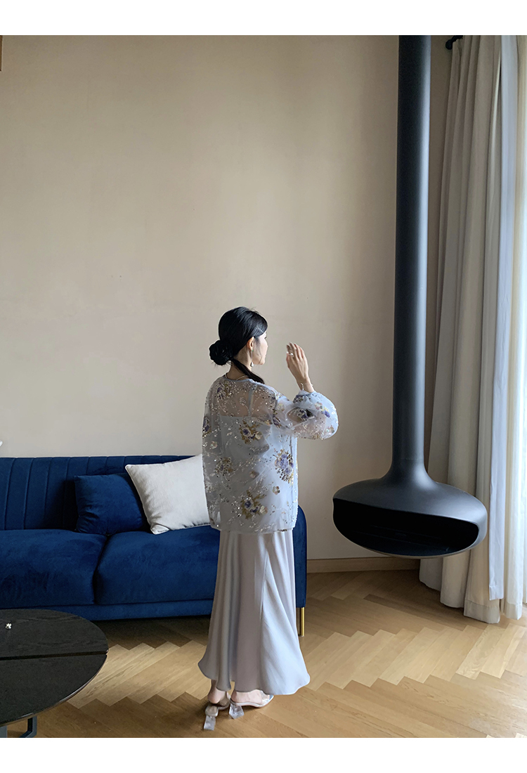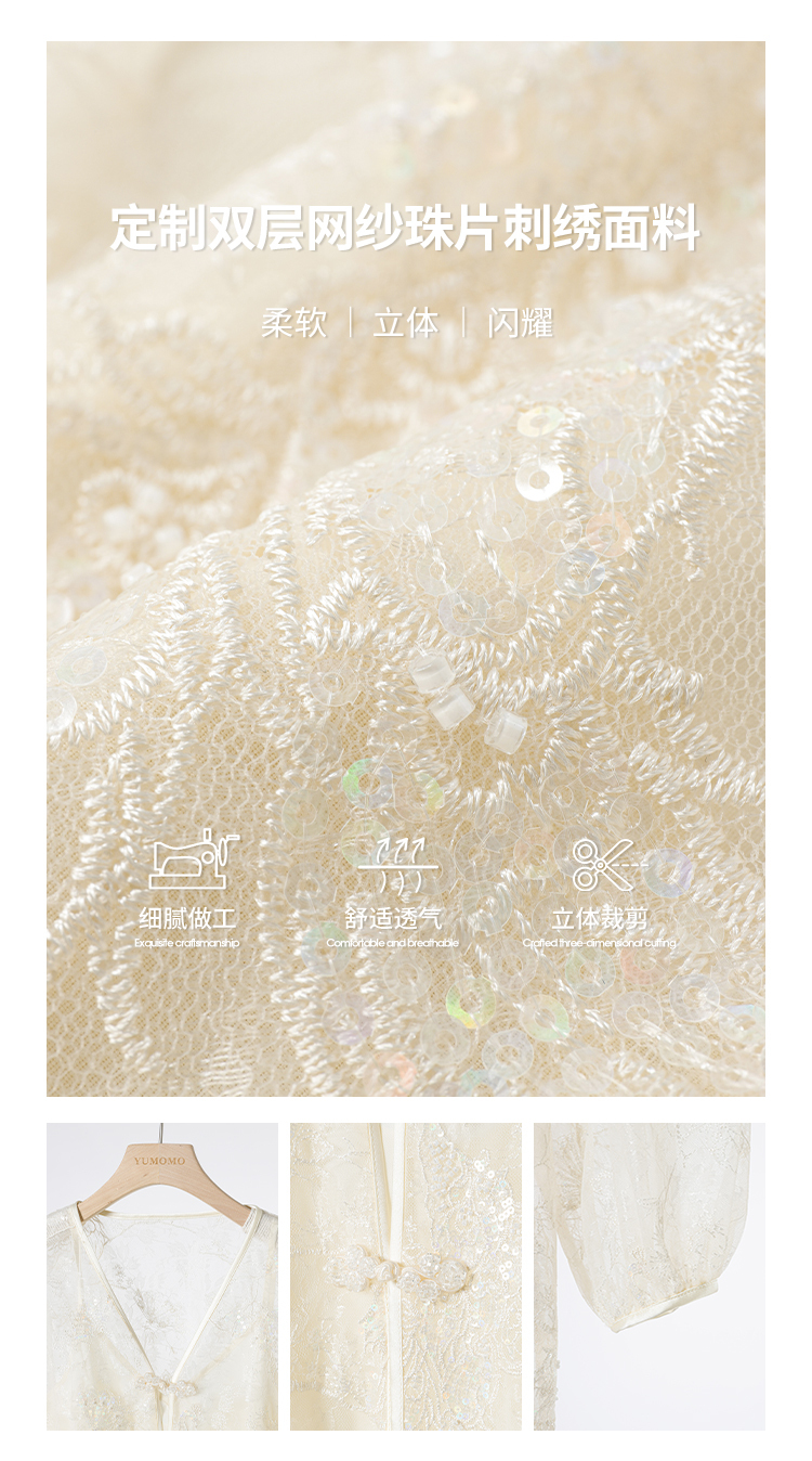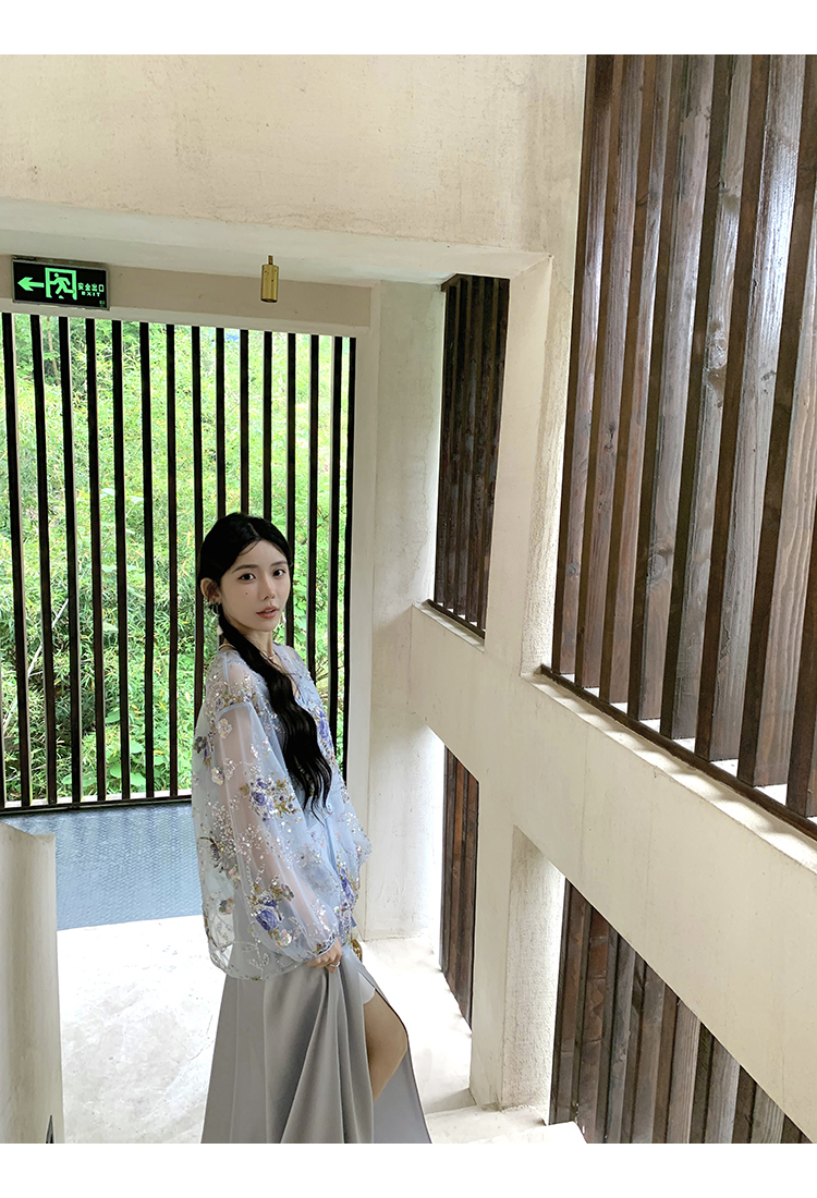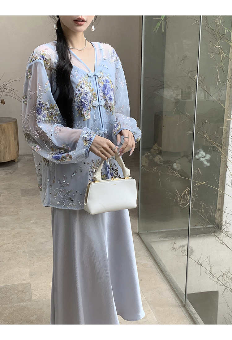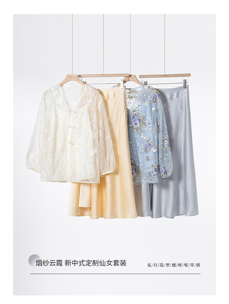 *o-ha-you*【FMQC2031088】煙紗雲霞新中式訂製仙女套裝裙子重工刺繡亮片襯衫吊帶/緞面半裙-2色