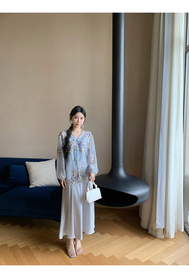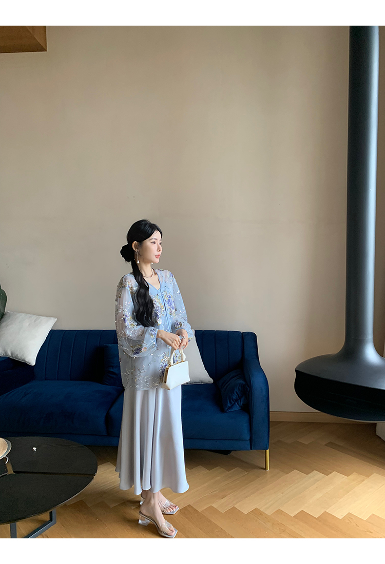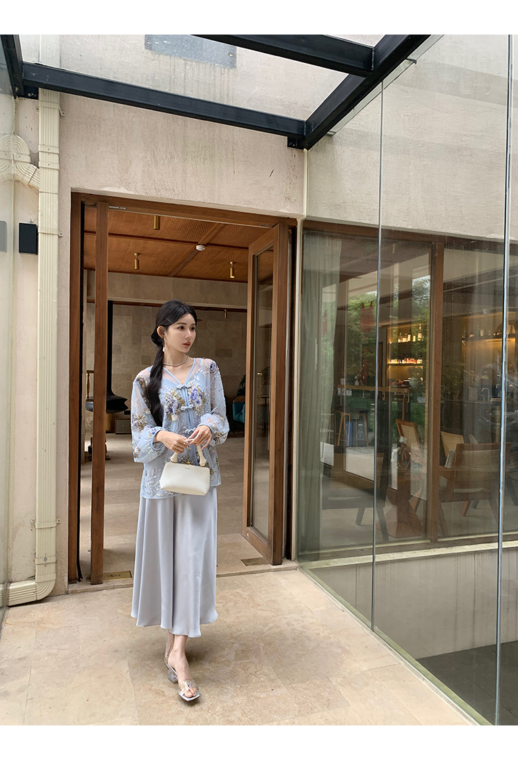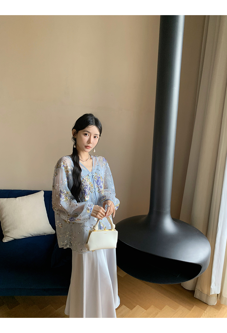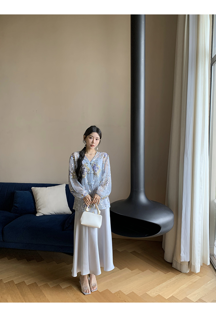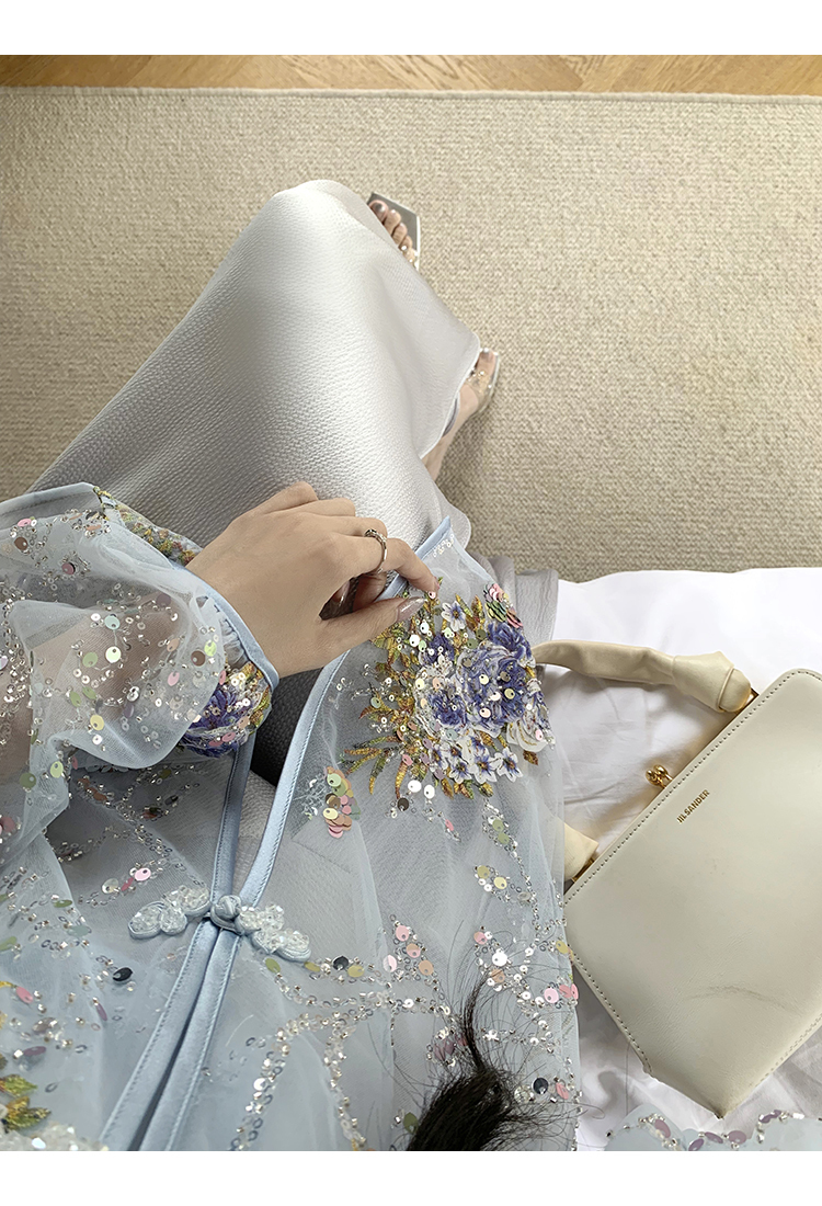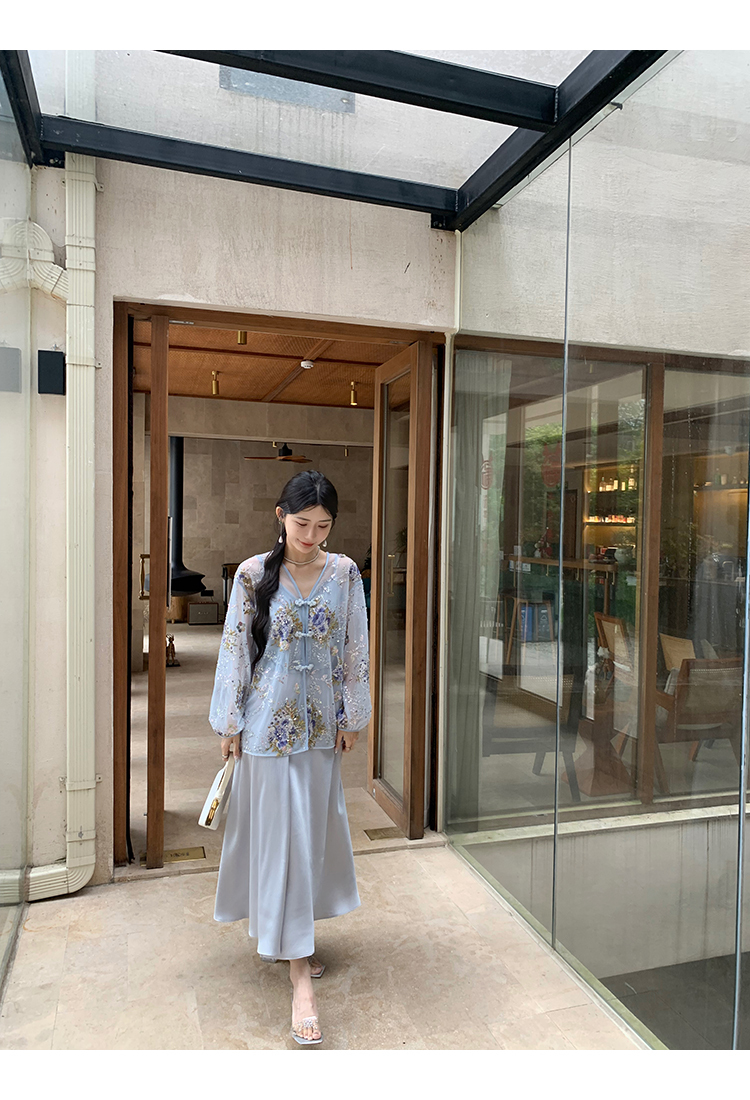 *o-ha-you*【FMQC2031088】煙紗雲霞新中式訂製仙女套裝裙子重工刺繡亮片襯衫吊帶/緞面半裙-2色