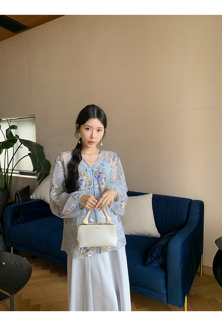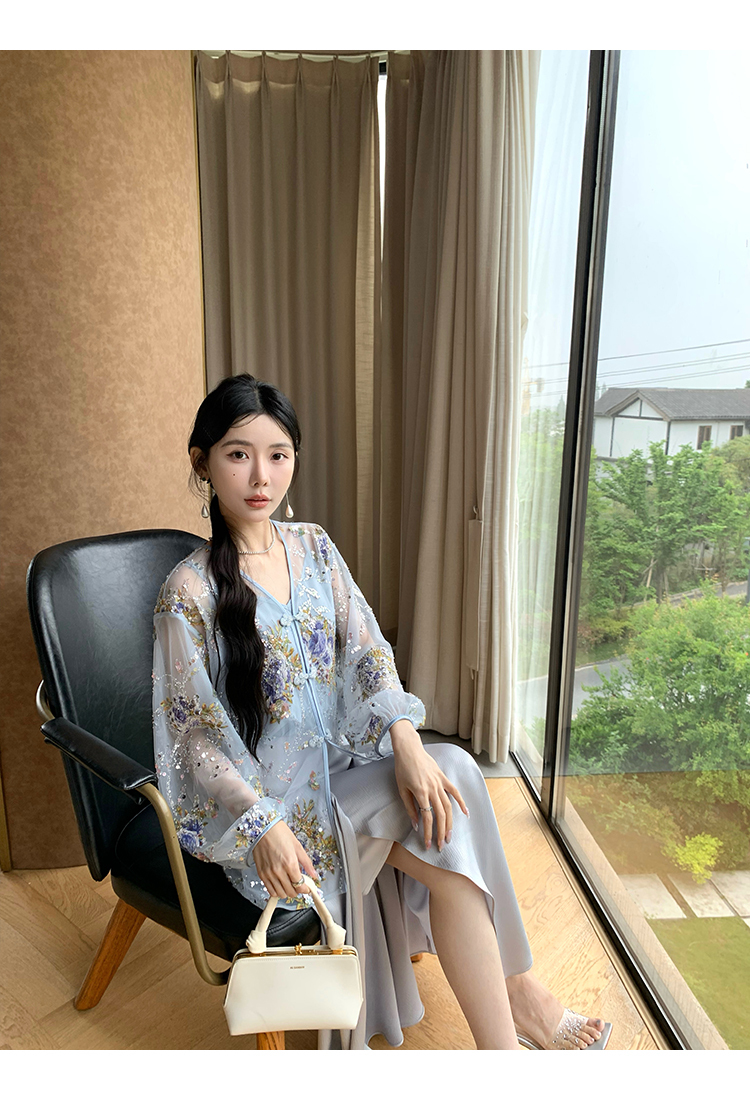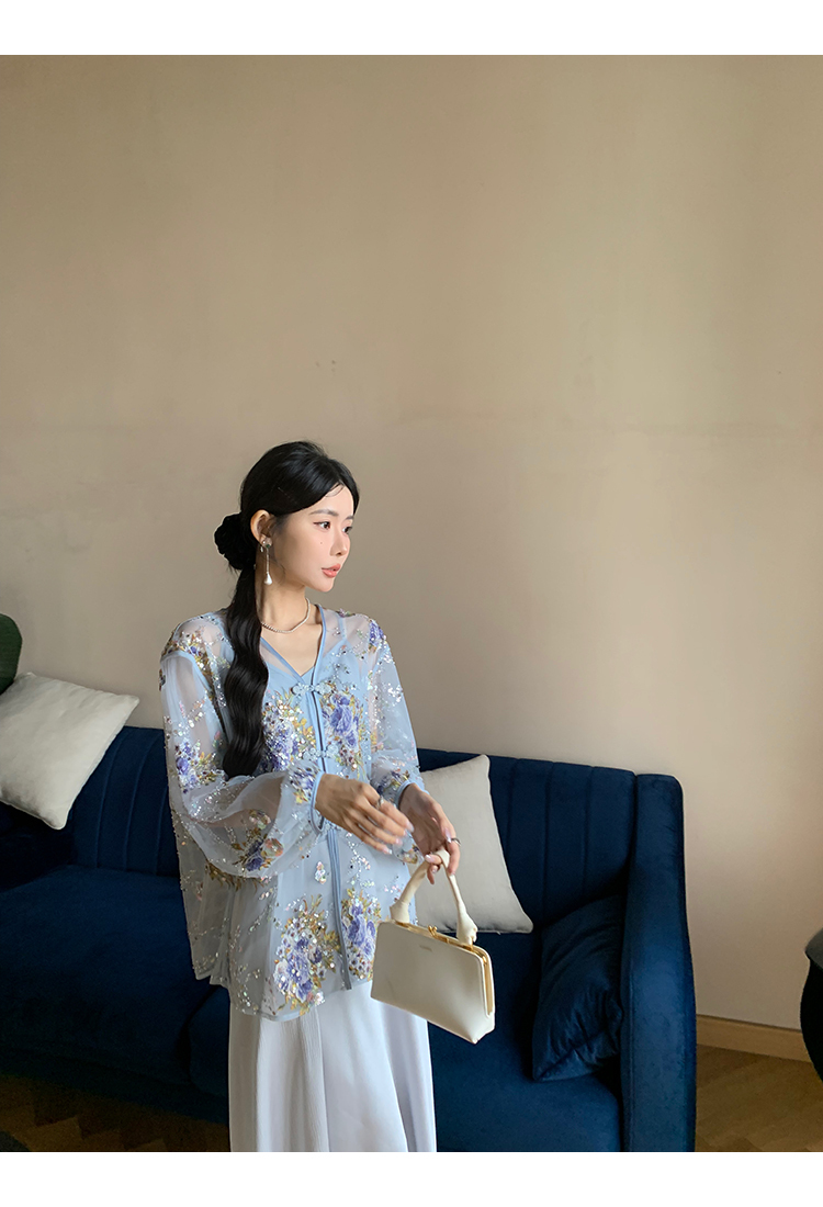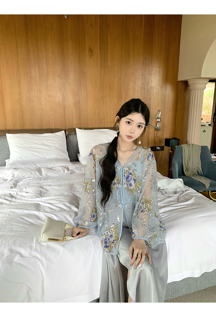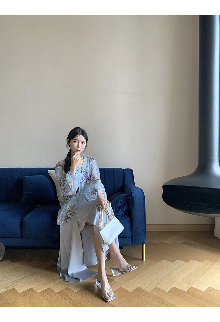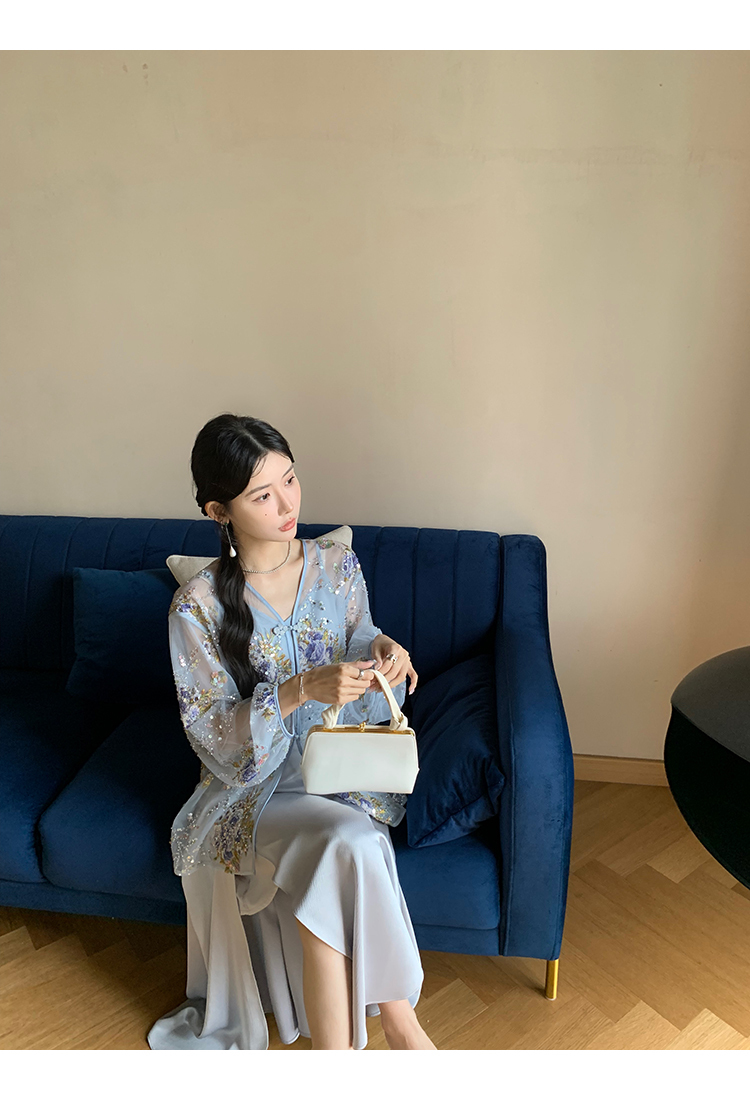 *o-ha-you*【FMQC2031088】煙紗雲霞新中式訂製仙女套裝裙子重工刺繡亮片襯衫吊帶/緞面半裙-2色