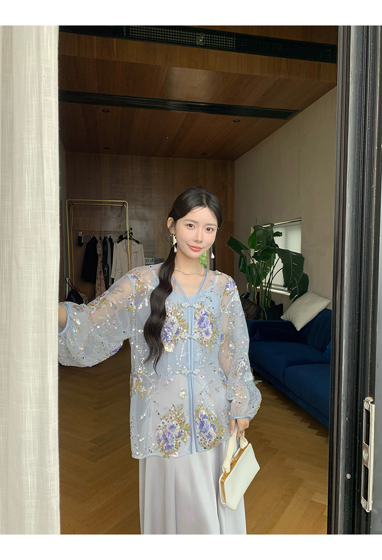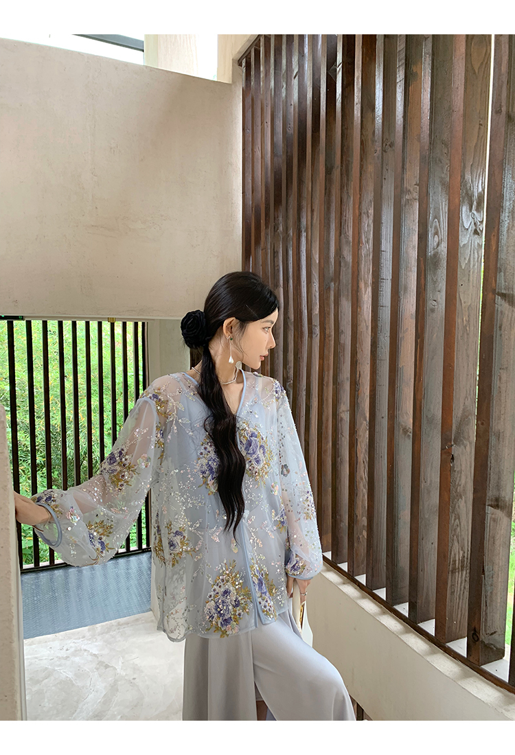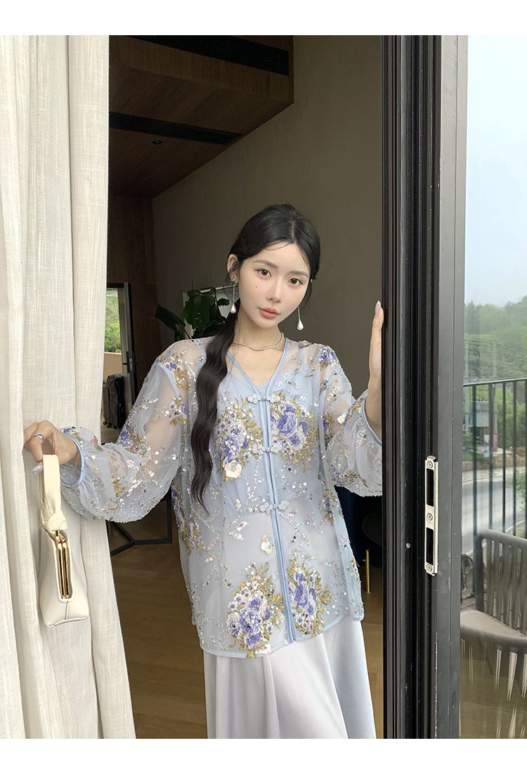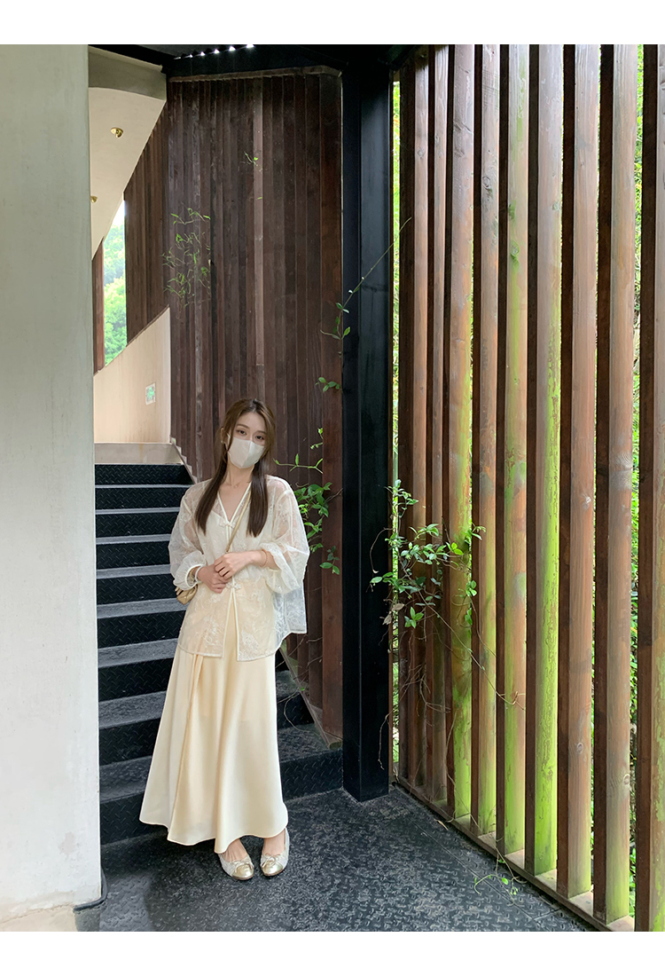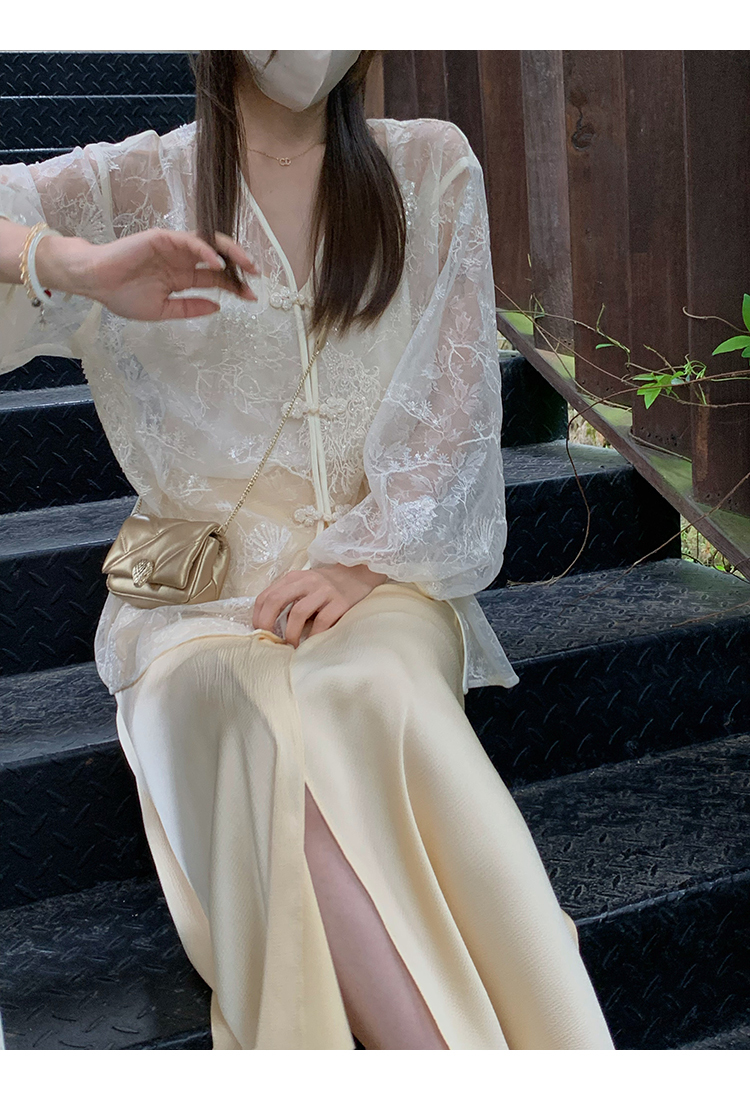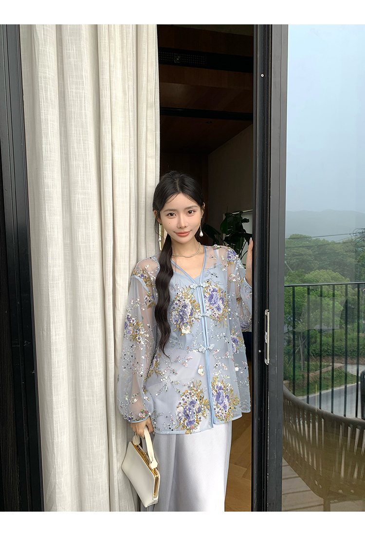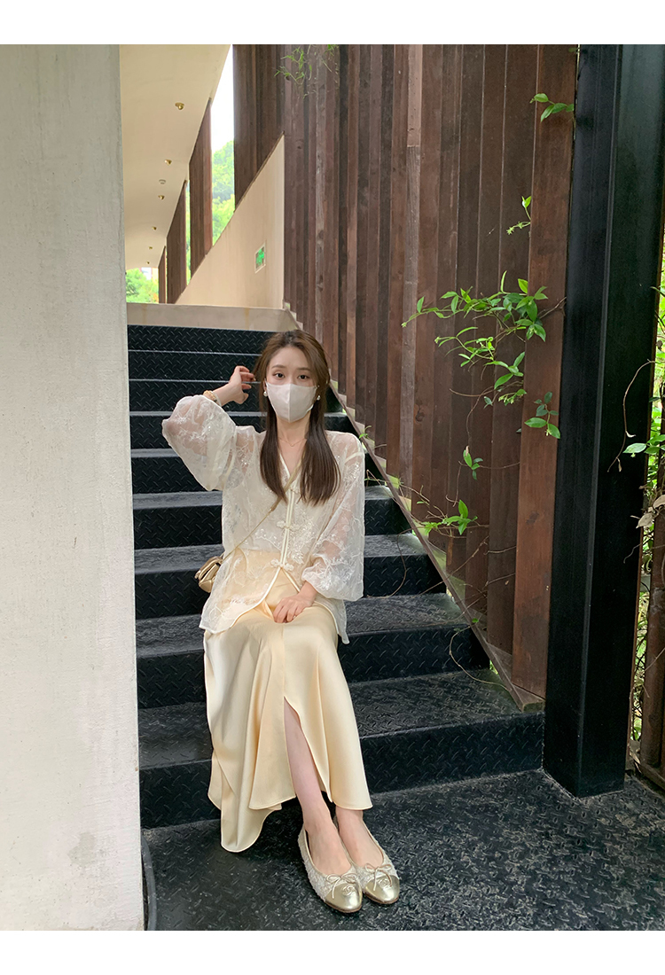*o-ha-you*【FMQC2031088】煙紗雲霞新中式訂製仙女套裝裙子重工刺繡亮片襯衫吊帶/緞面半裙-2色