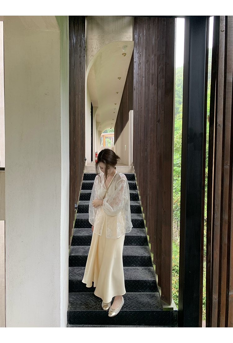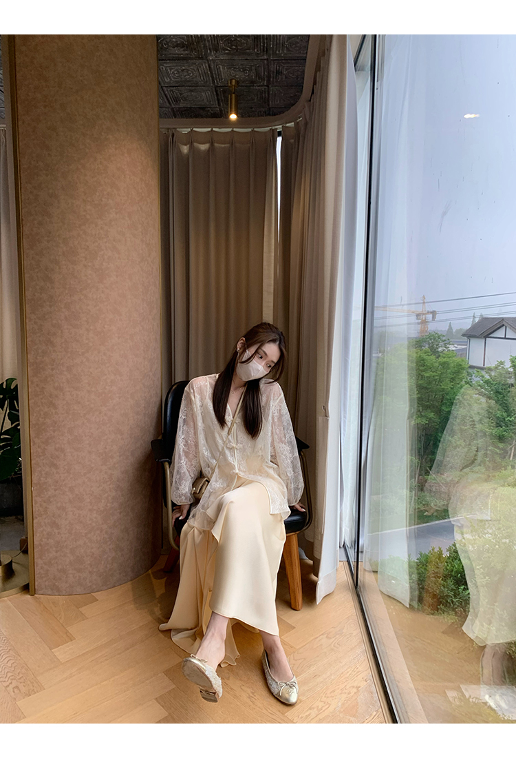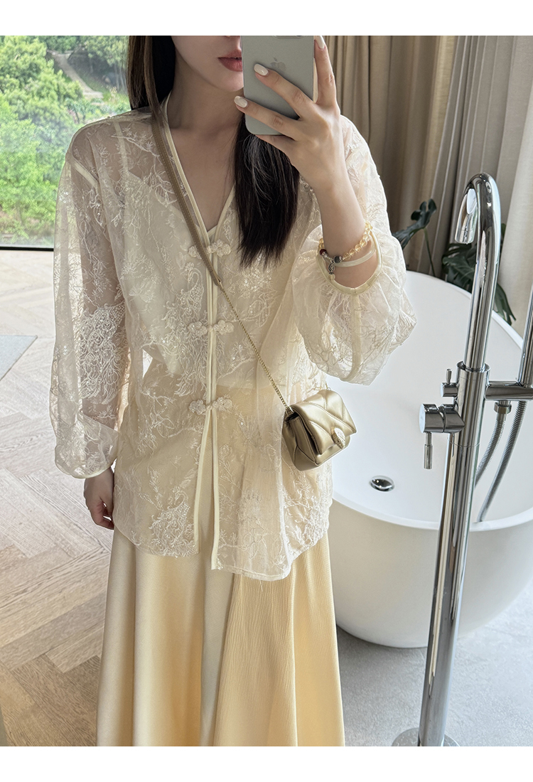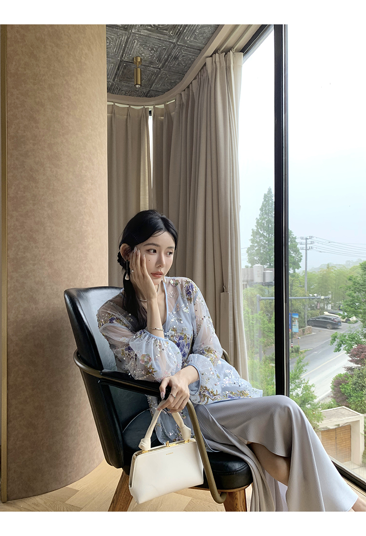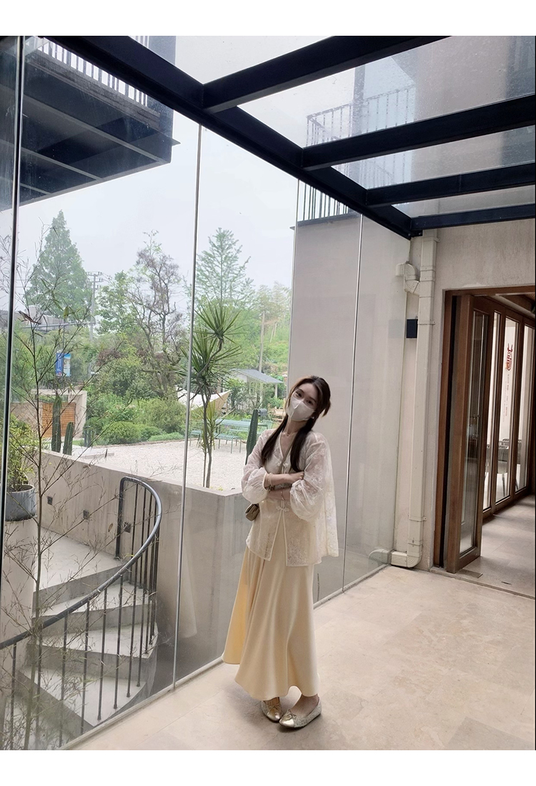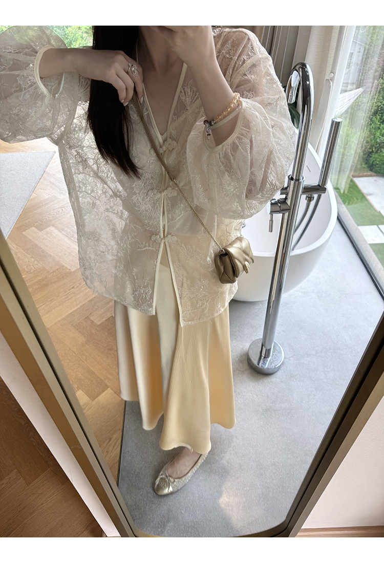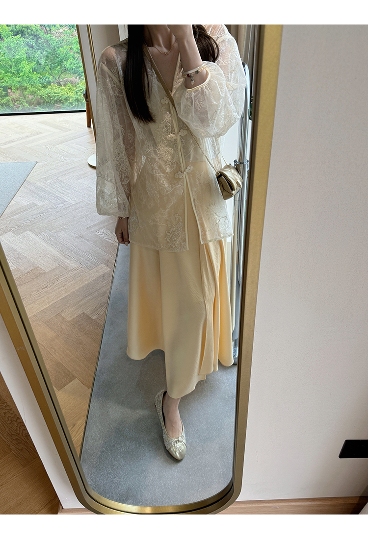 *o-ha-you*【FMQC2031088】煙紗雲霞新中式訂製仙女套裝裙子重工刺繡亮片襯衫吊帶/緞面半裙-2色