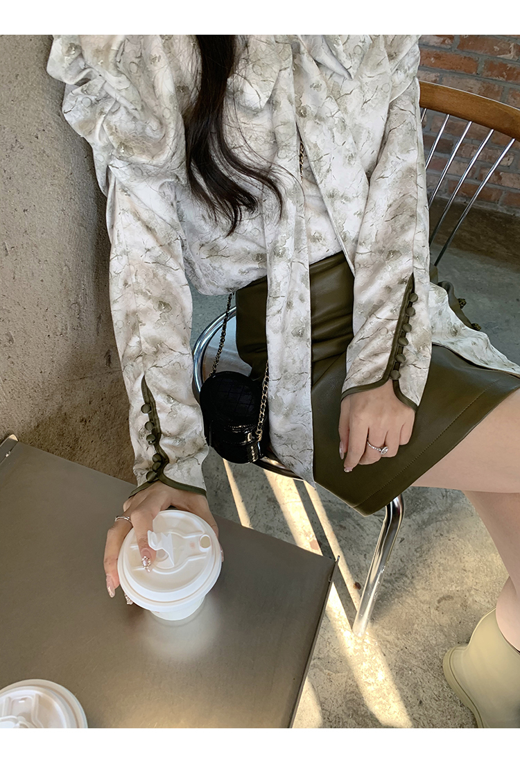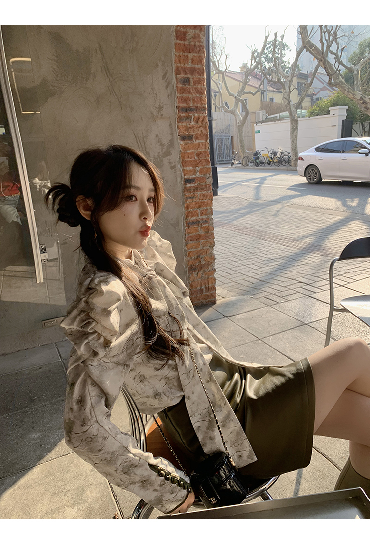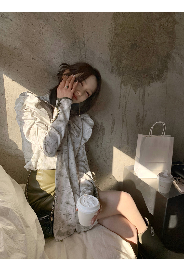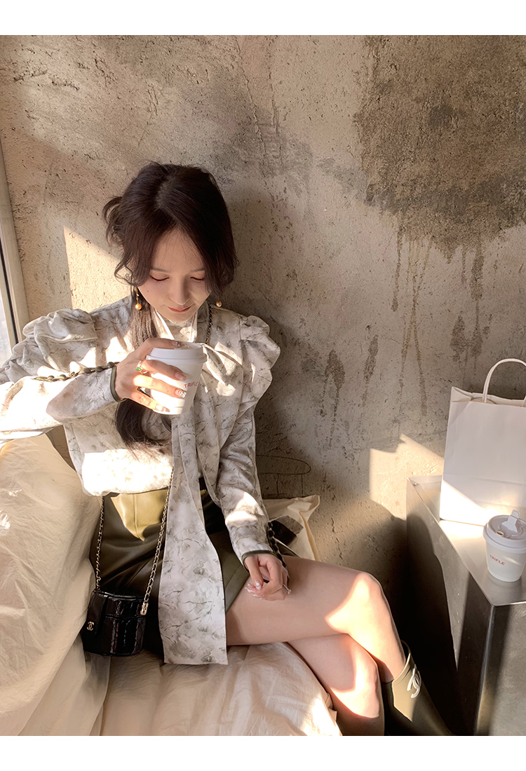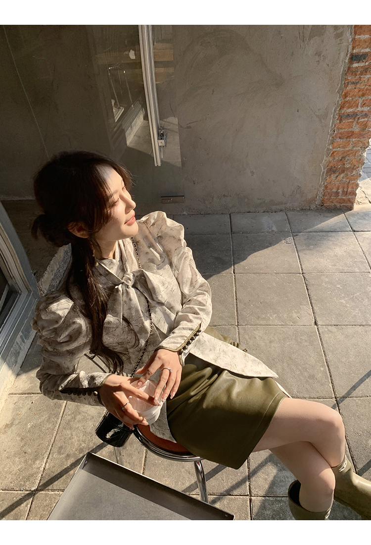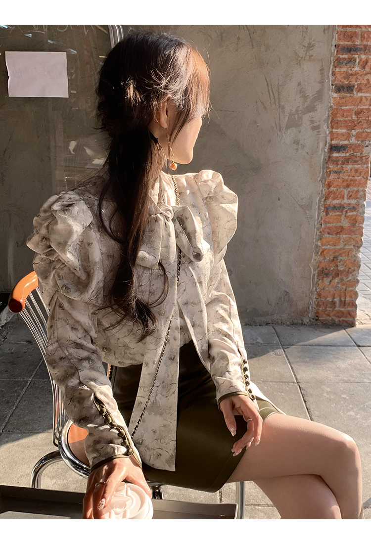 袖型設計泡泡袖搭配側邊牛筋造型,增加袖子堆積感,修飾手臂線條