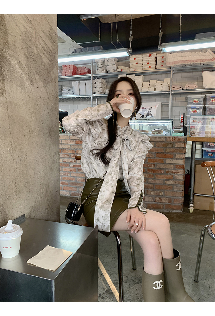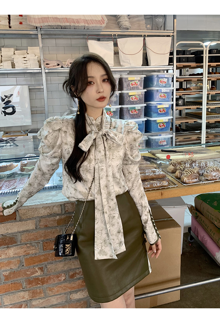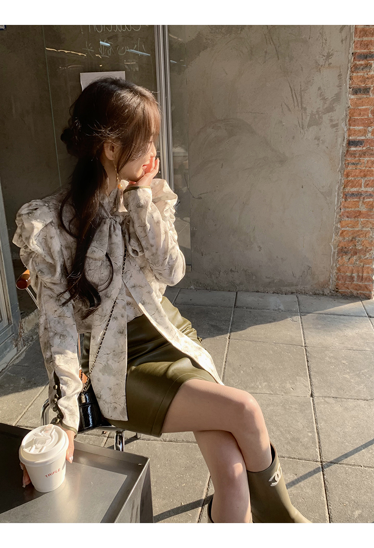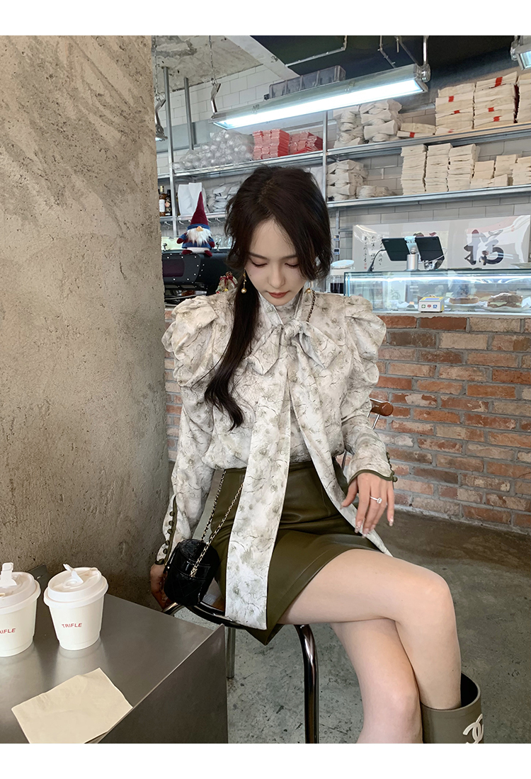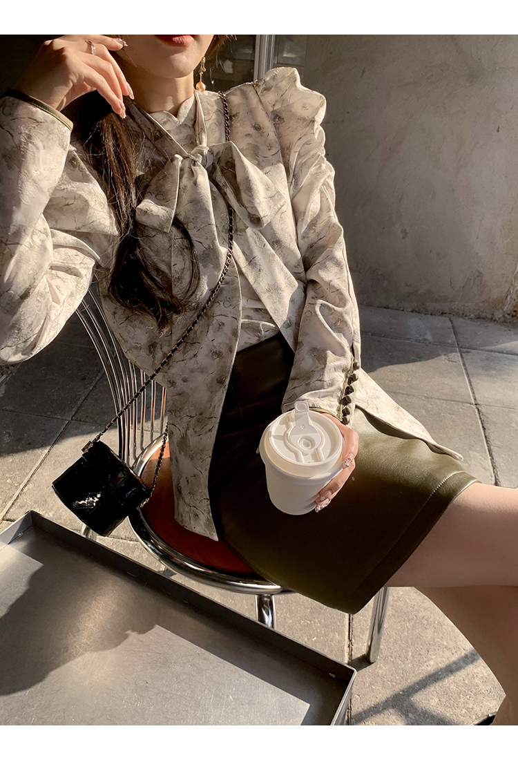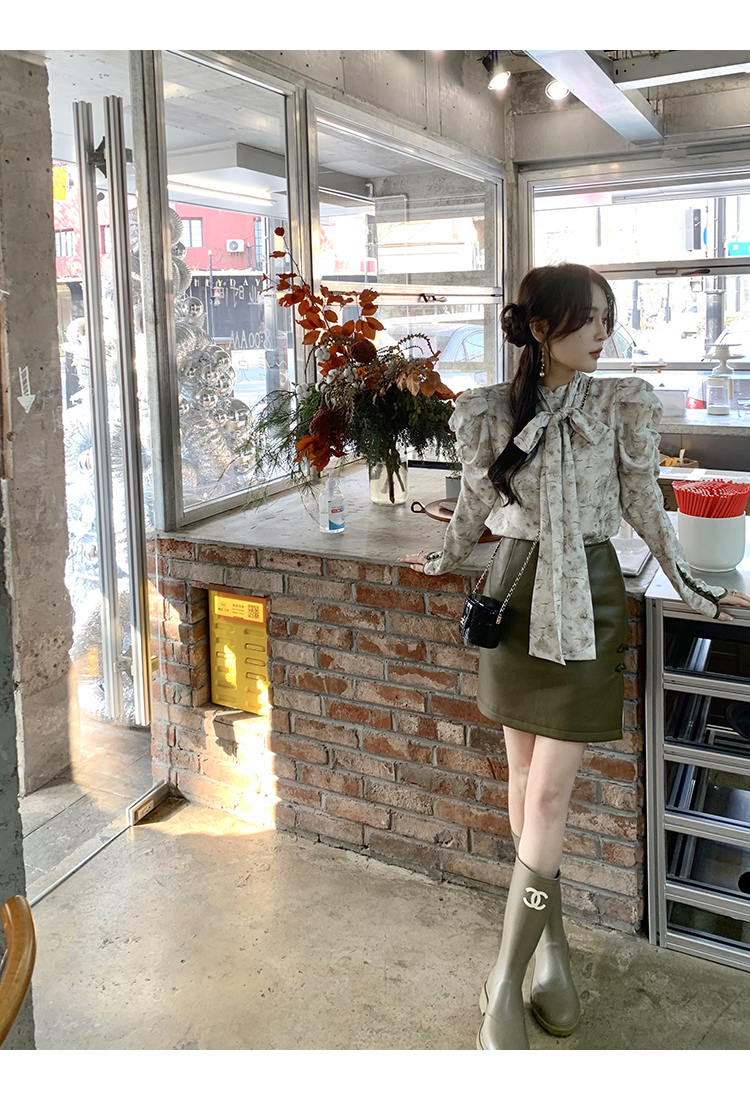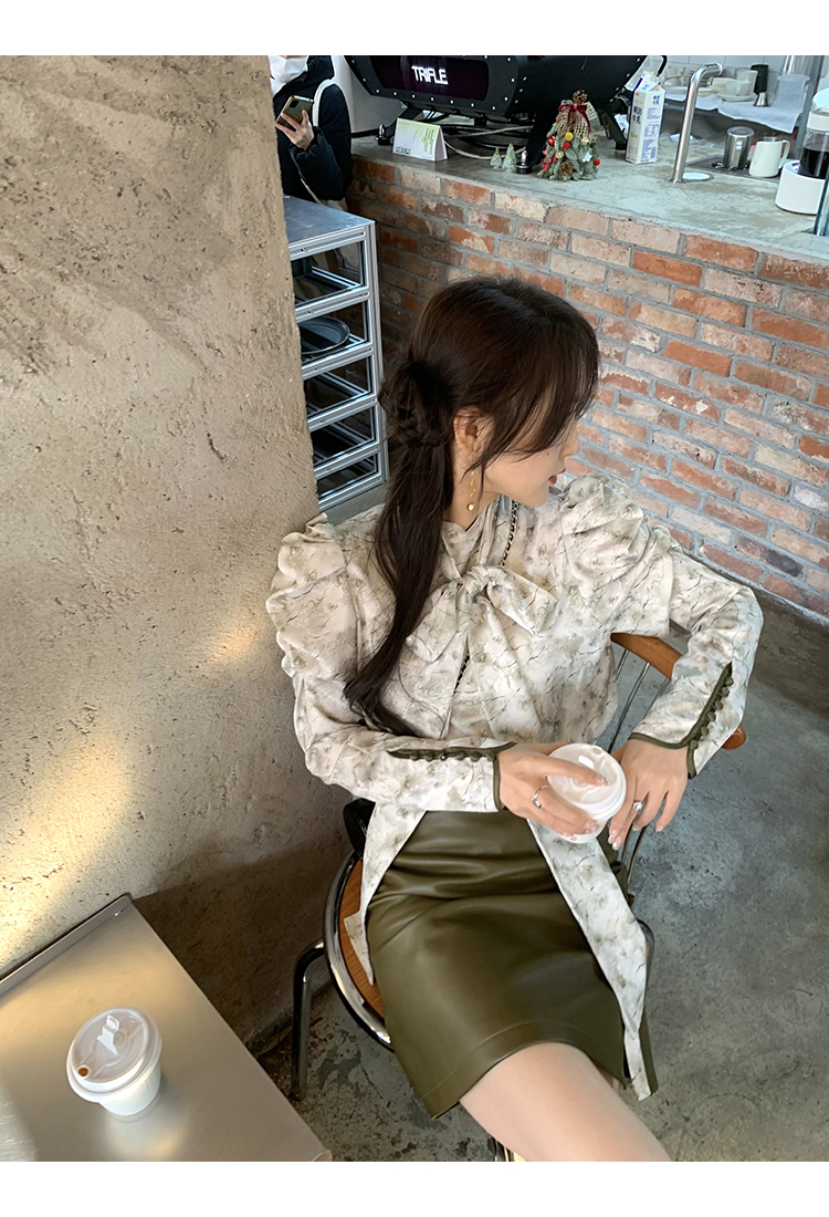 袖型設計泡泡袖搭配側邊牛筋造型,增加袖子堆積感,修飾手臂線條