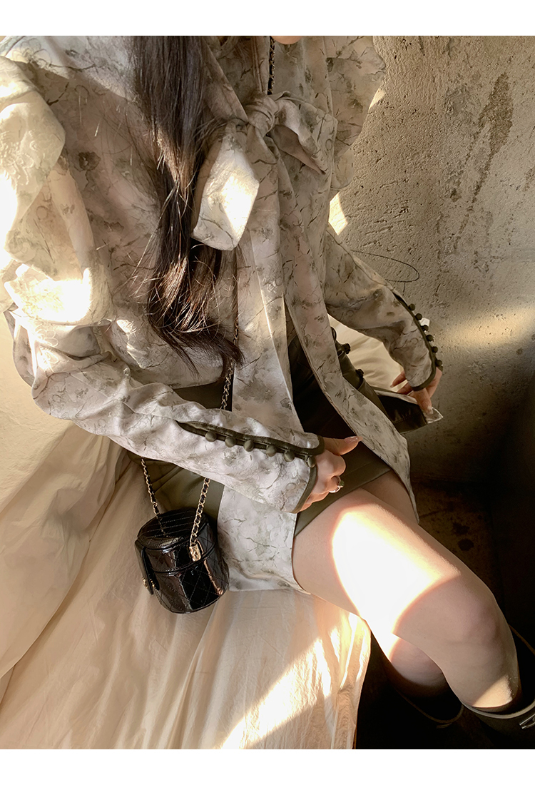 帶有微微光澤感的底布, 再加上水墨印花工藝的結合,