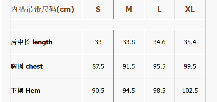 · 产品尺码信息 ·