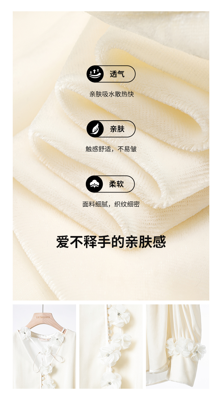 爽滑冰涼的触感,衣着舒适性芨佳。 轻柔的同时不失垂顺感,