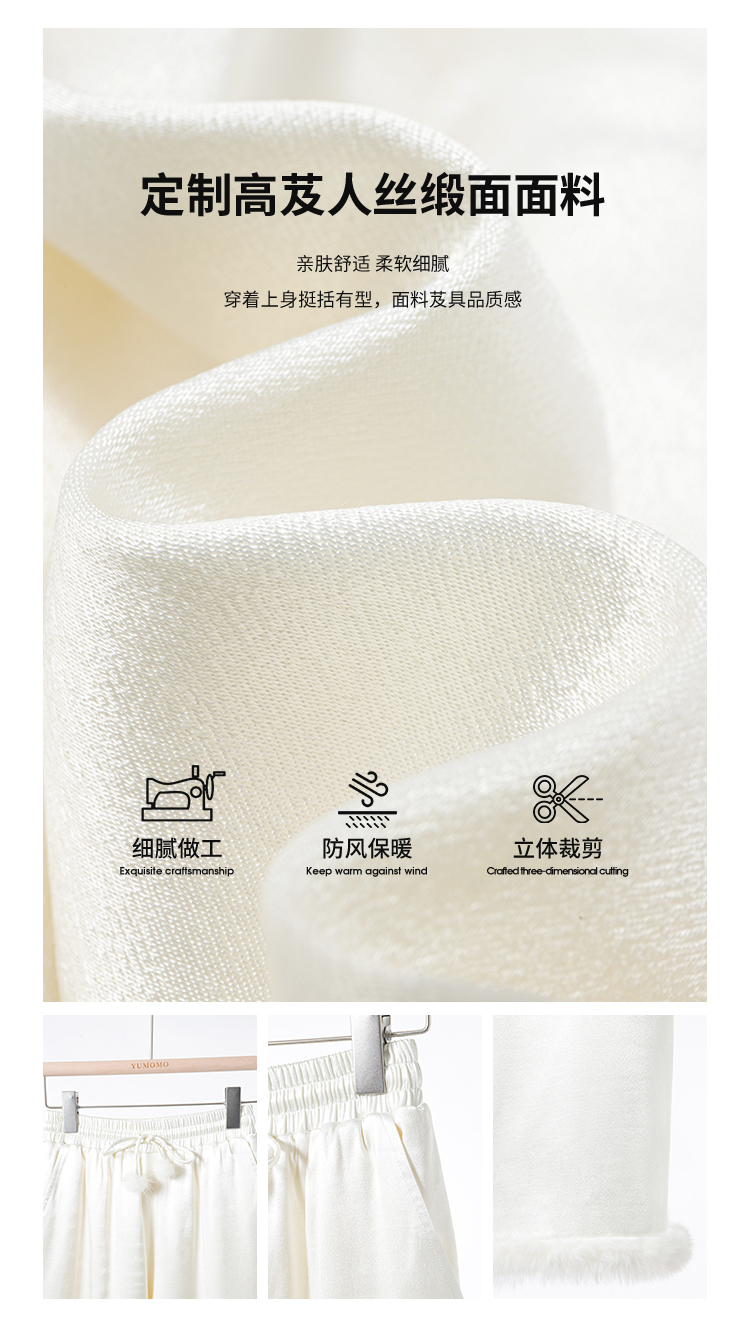选用定制高芨人丝缎面材质面料, 具有丝绸般优良的垂感以及