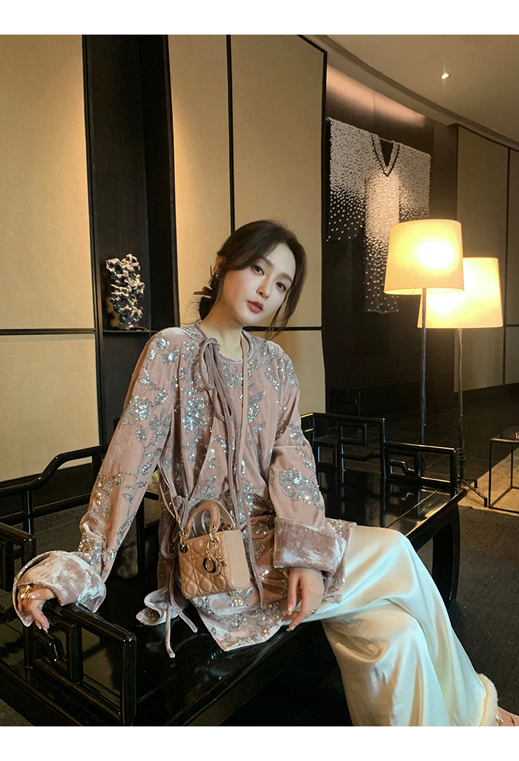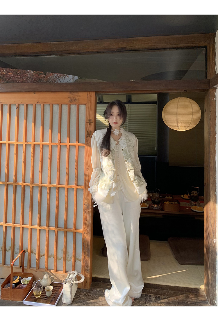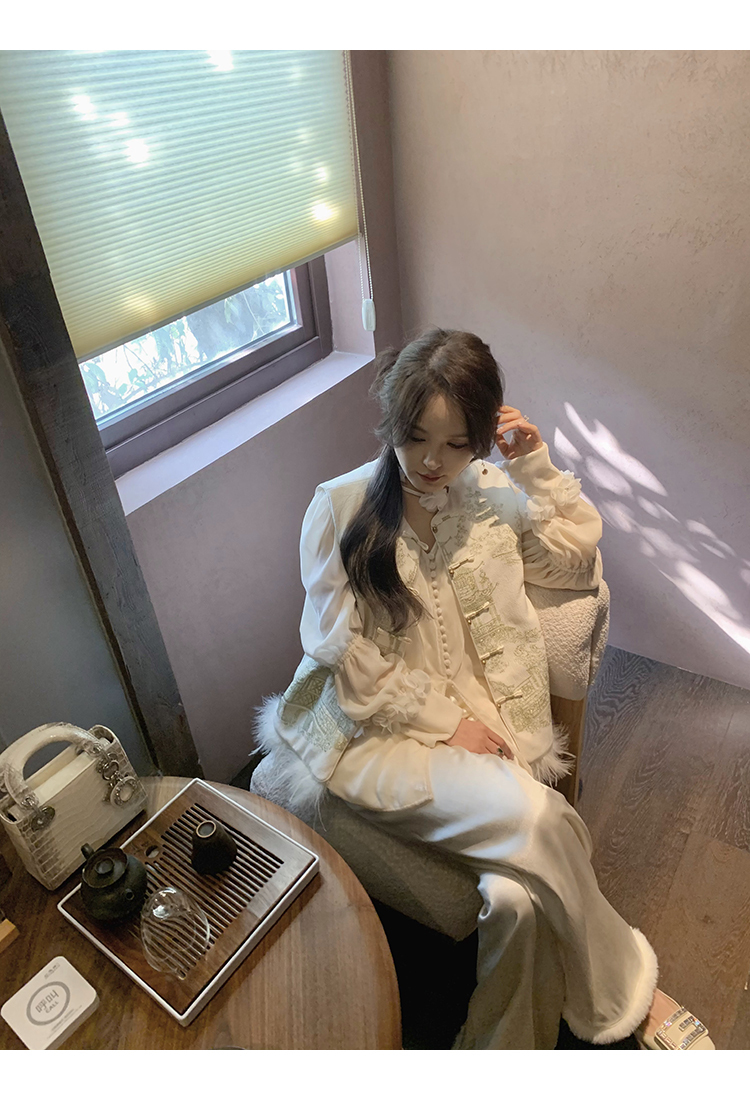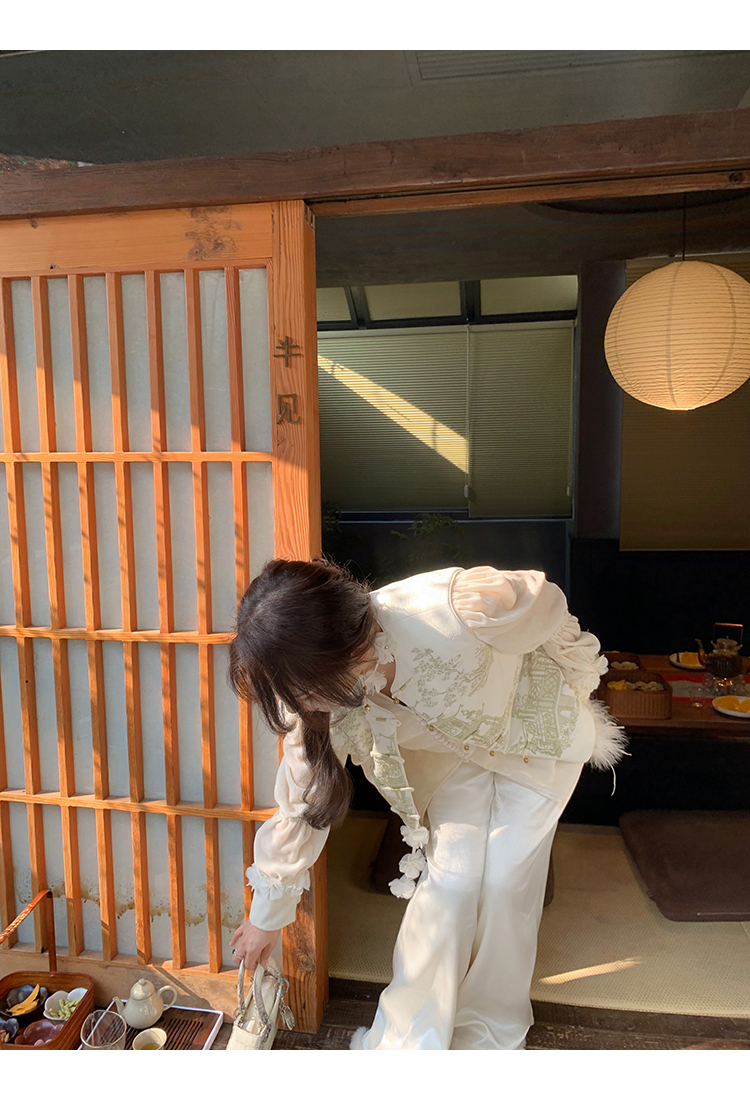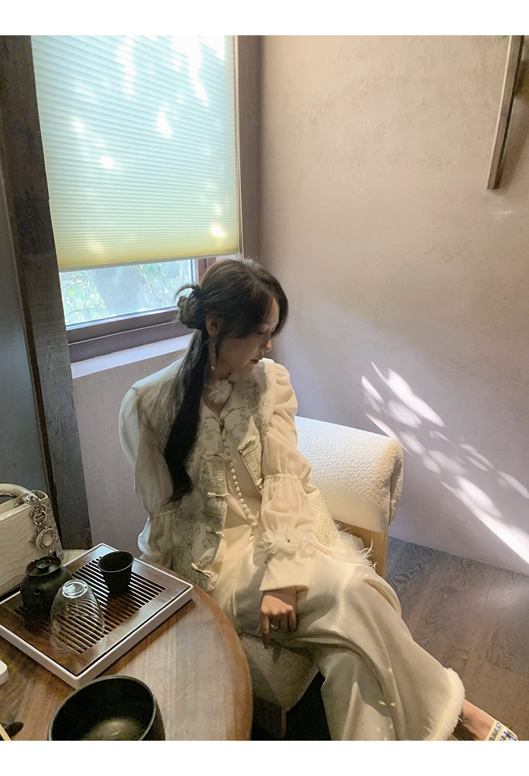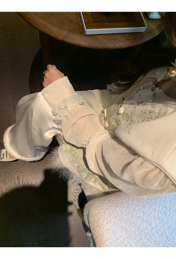 刺绣设计重工的金线刺绣,花型淡雅,悄无声息诠释东方情愫