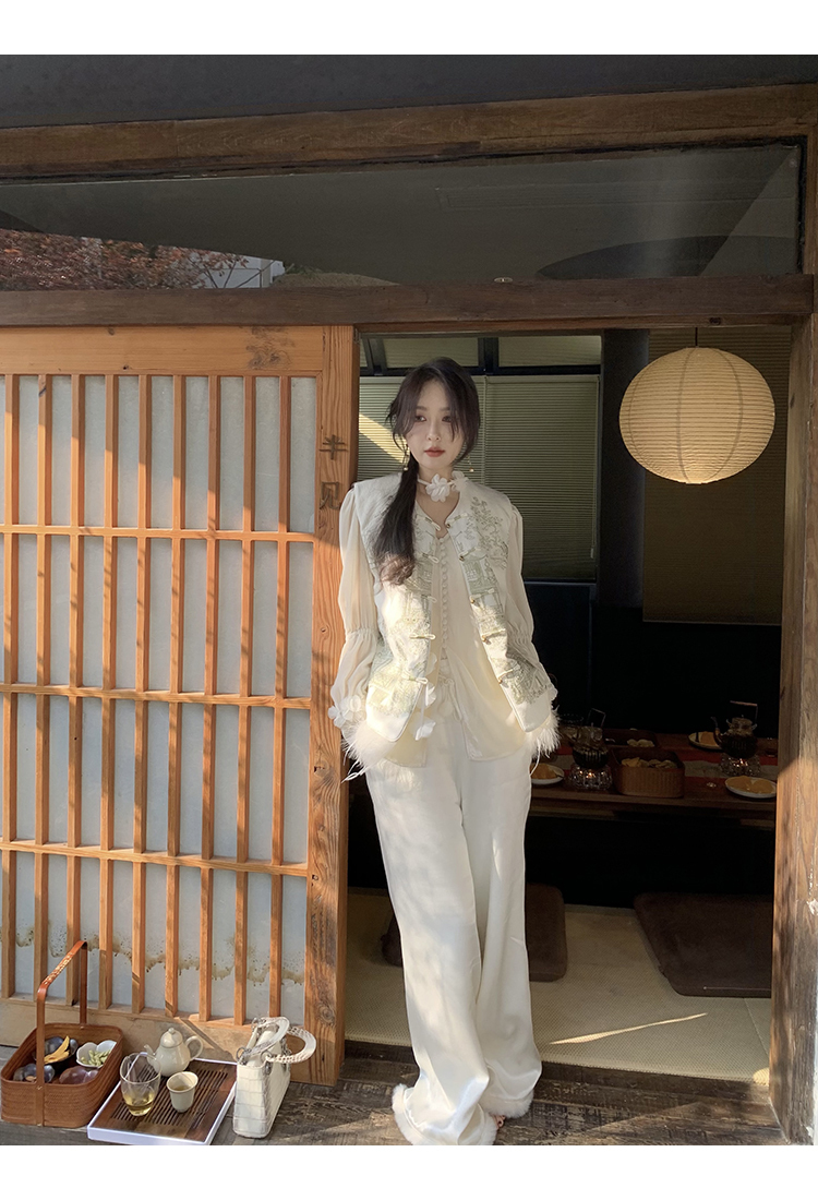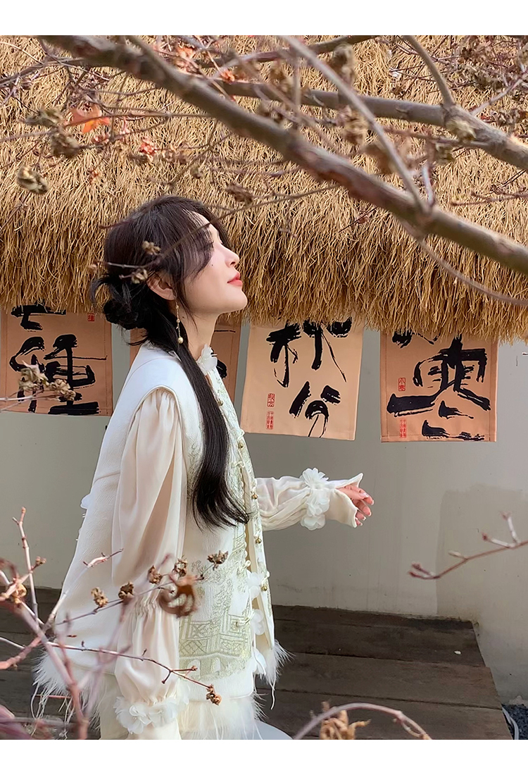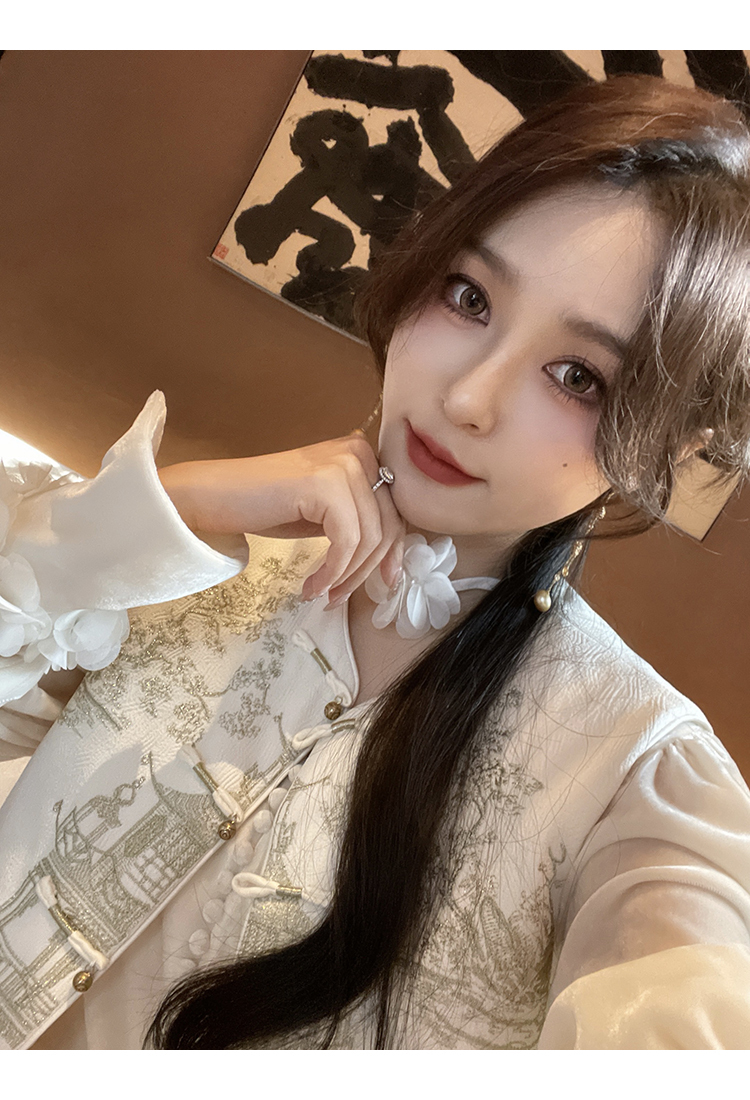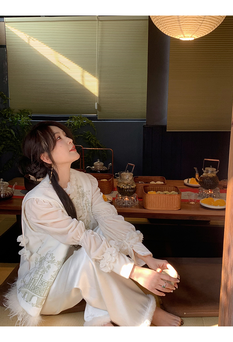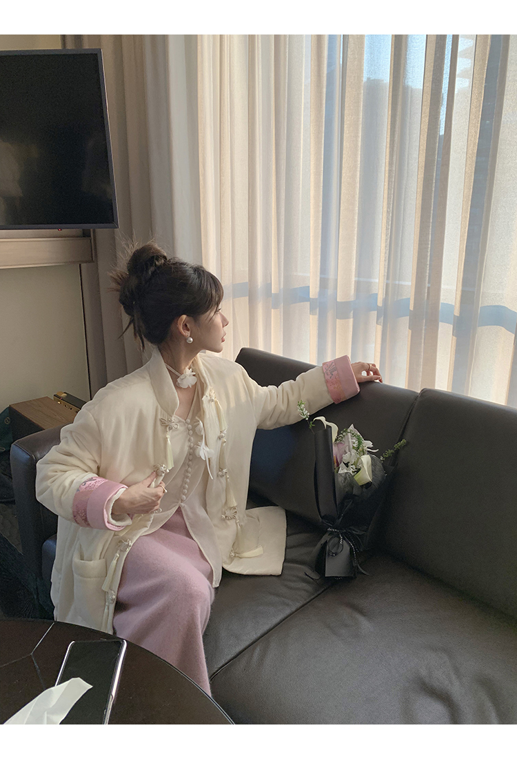 刺绣设计重工的金线刺绣,花型淡雅,悄无声息诠释东方情愫