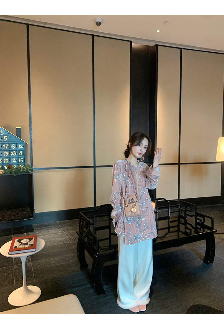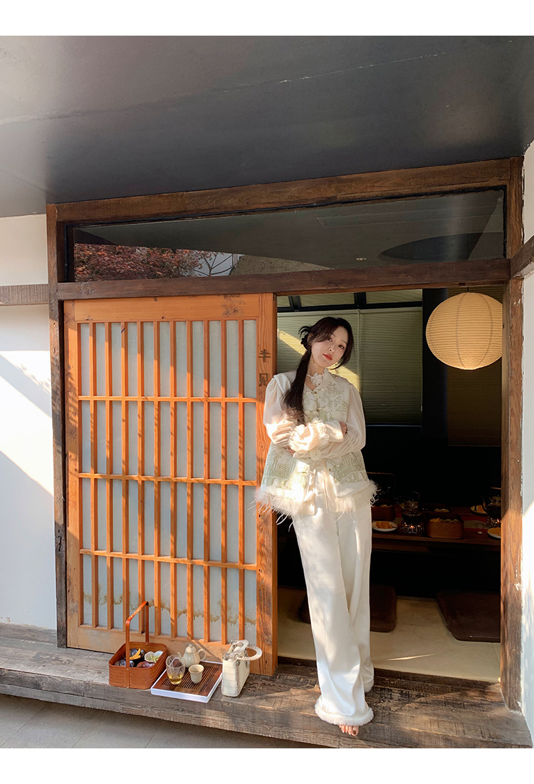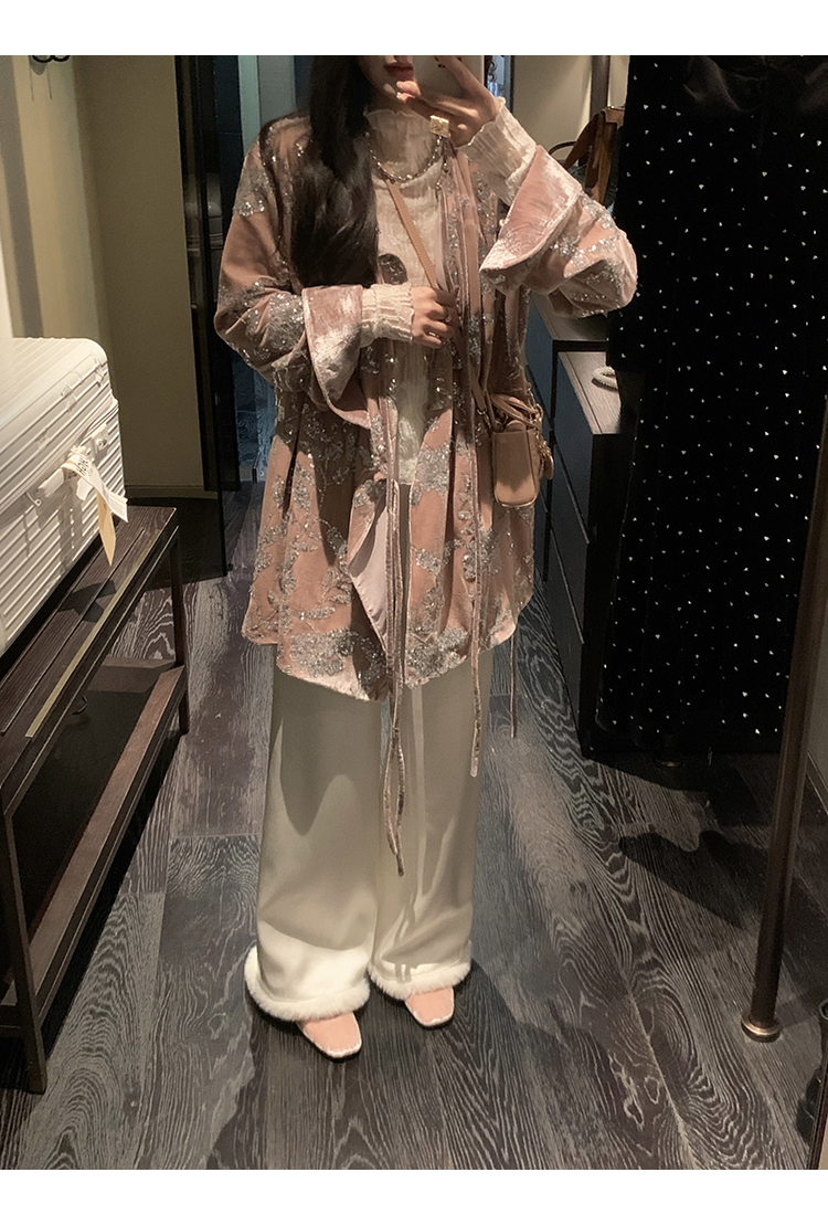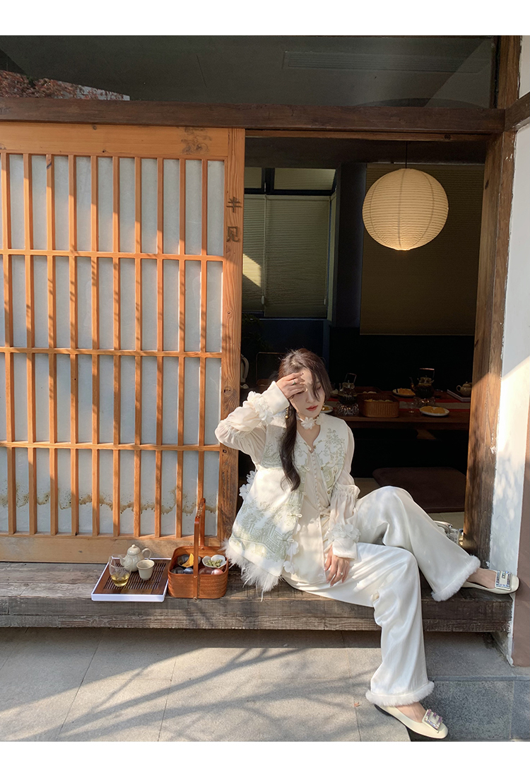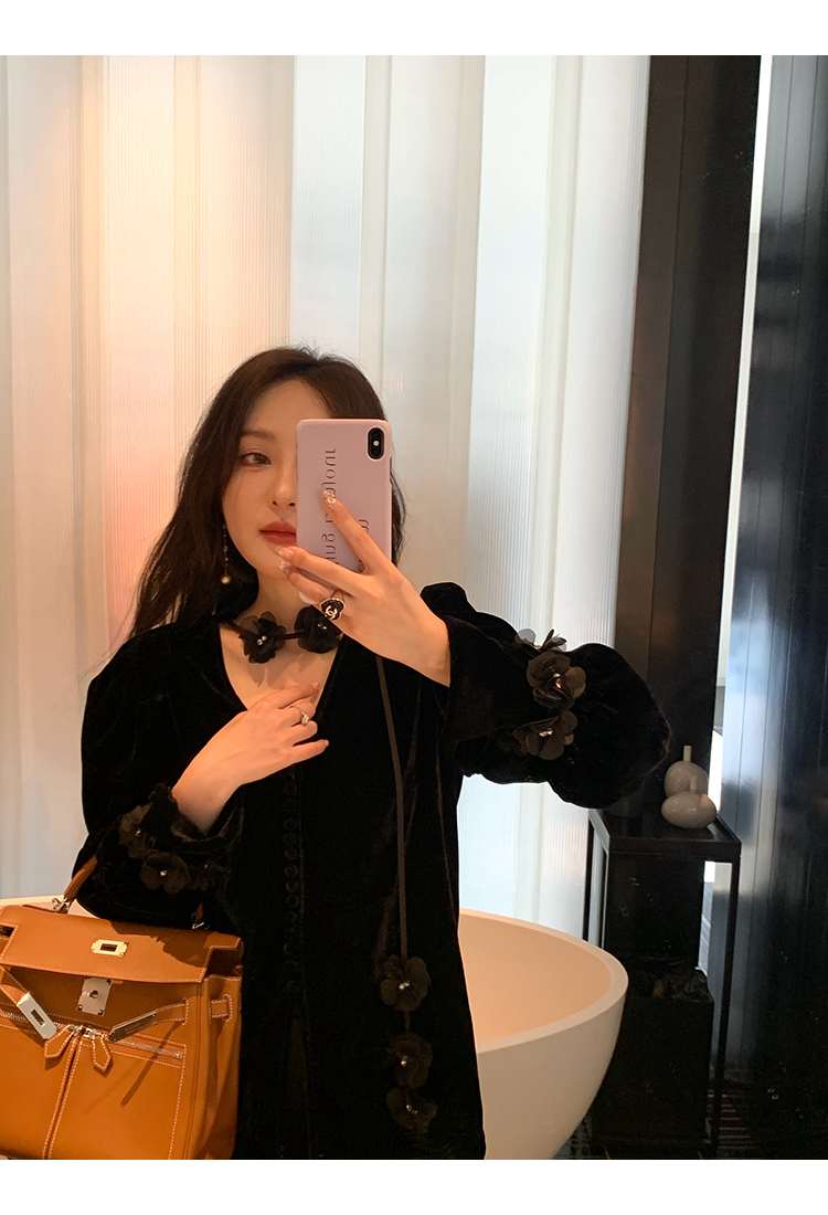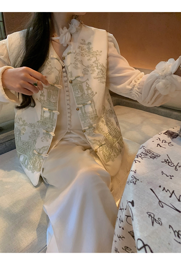 刺绣设计重工的金线刺绣,花型淡雅,悄无声息诠释东方情愫