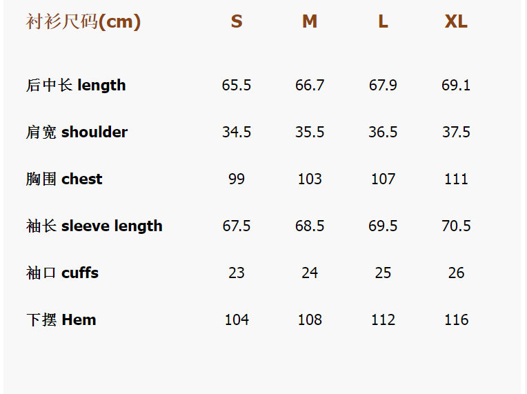 衣長/肩寬/袖長為平量,其他為一圈(單位:公分)