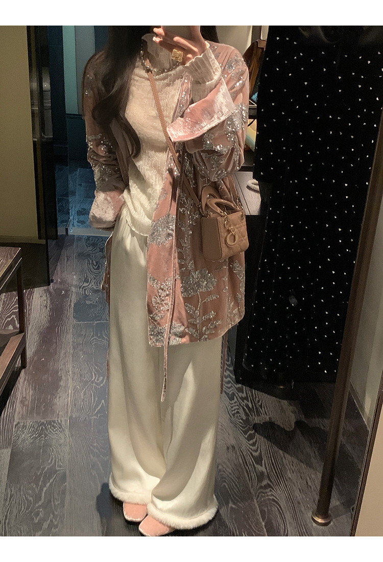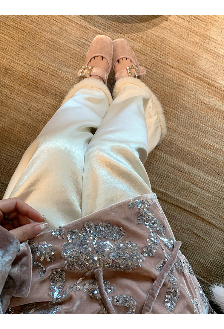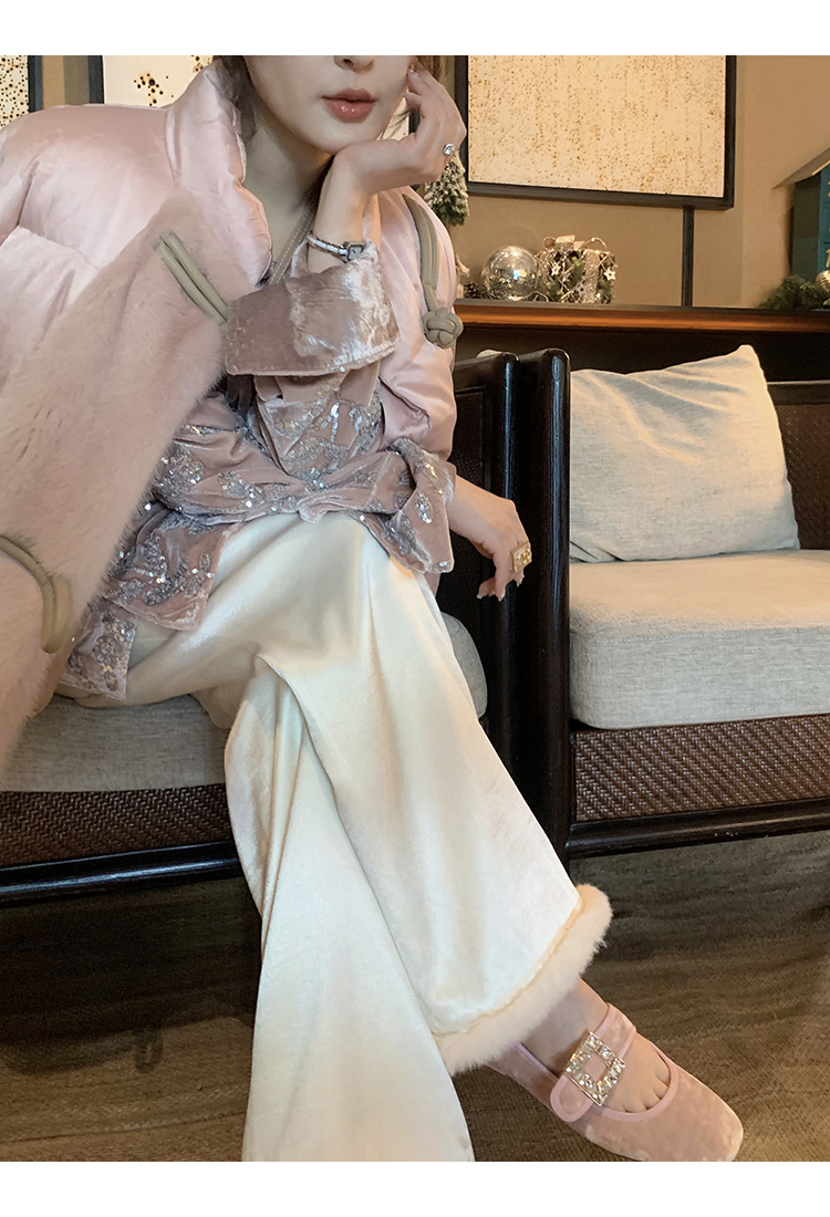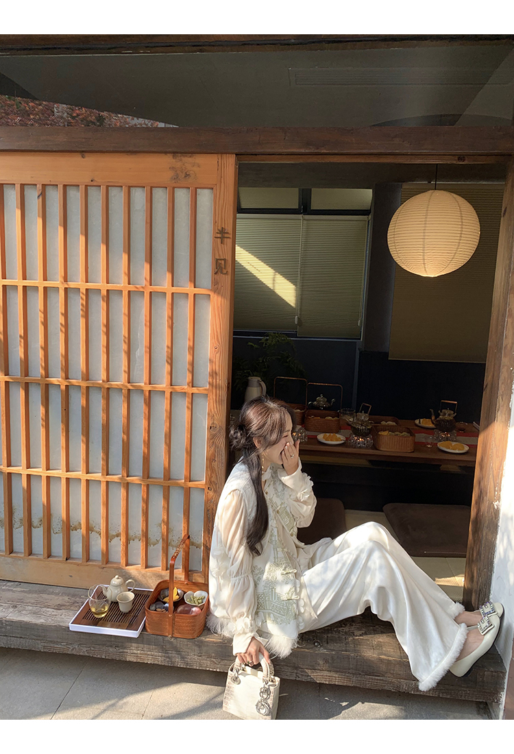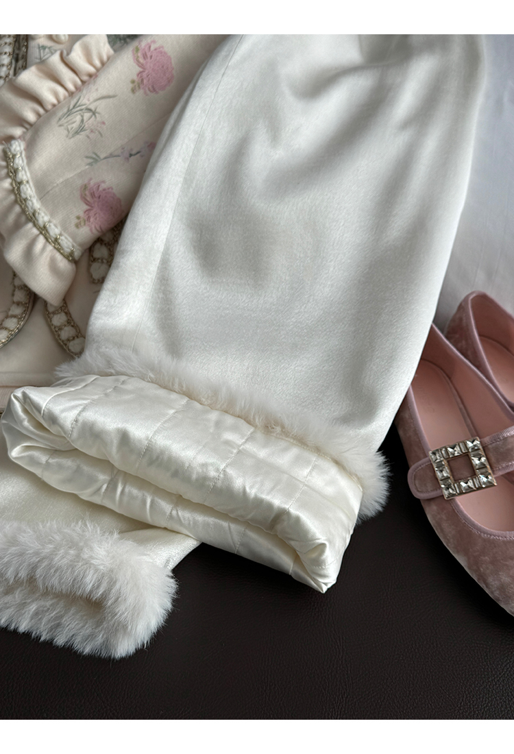 裤脚设计裤脚的毛毛与腰绳头相呼应,氛围感⑩足