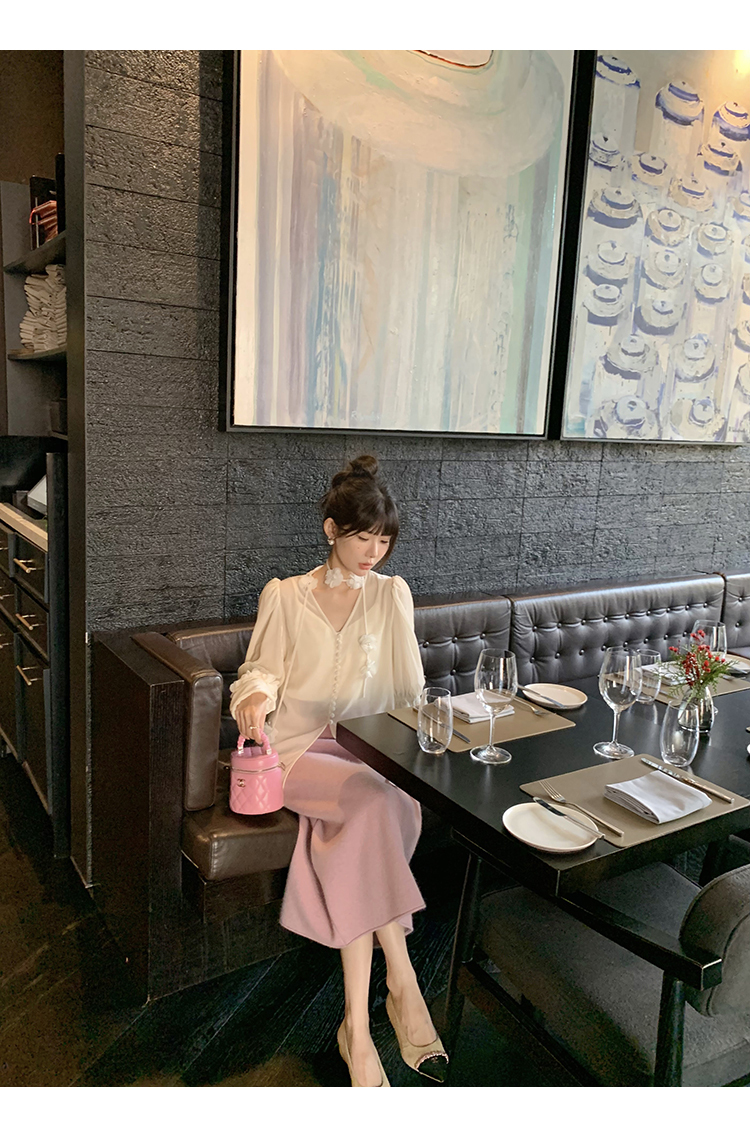 领型设计圆形领型轻松勾勒出优美脖颈曲线,脖颈更修长