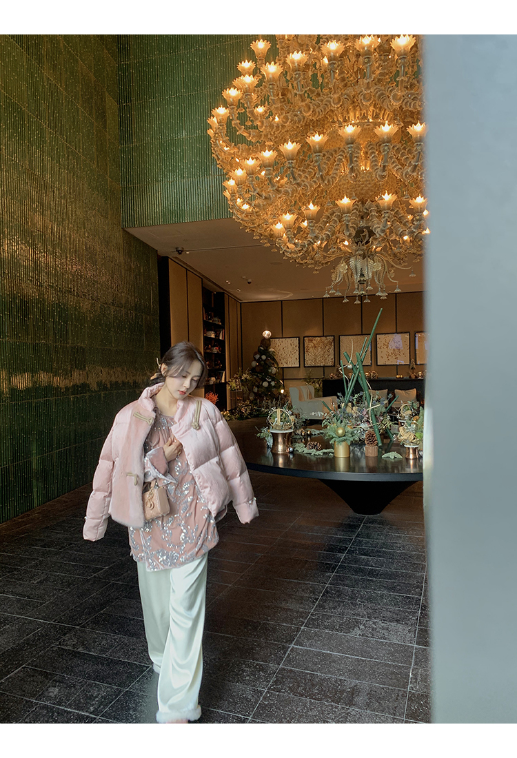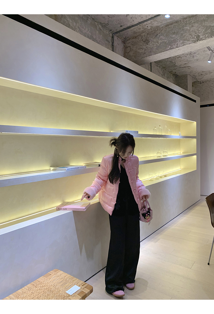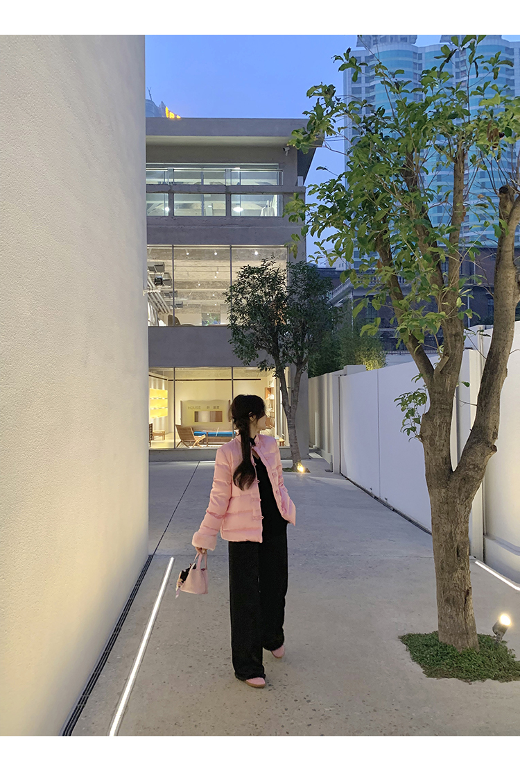 做了复合工艺,防止棉跑绒, 同时增加挺阔程度,成衣更加有质感。