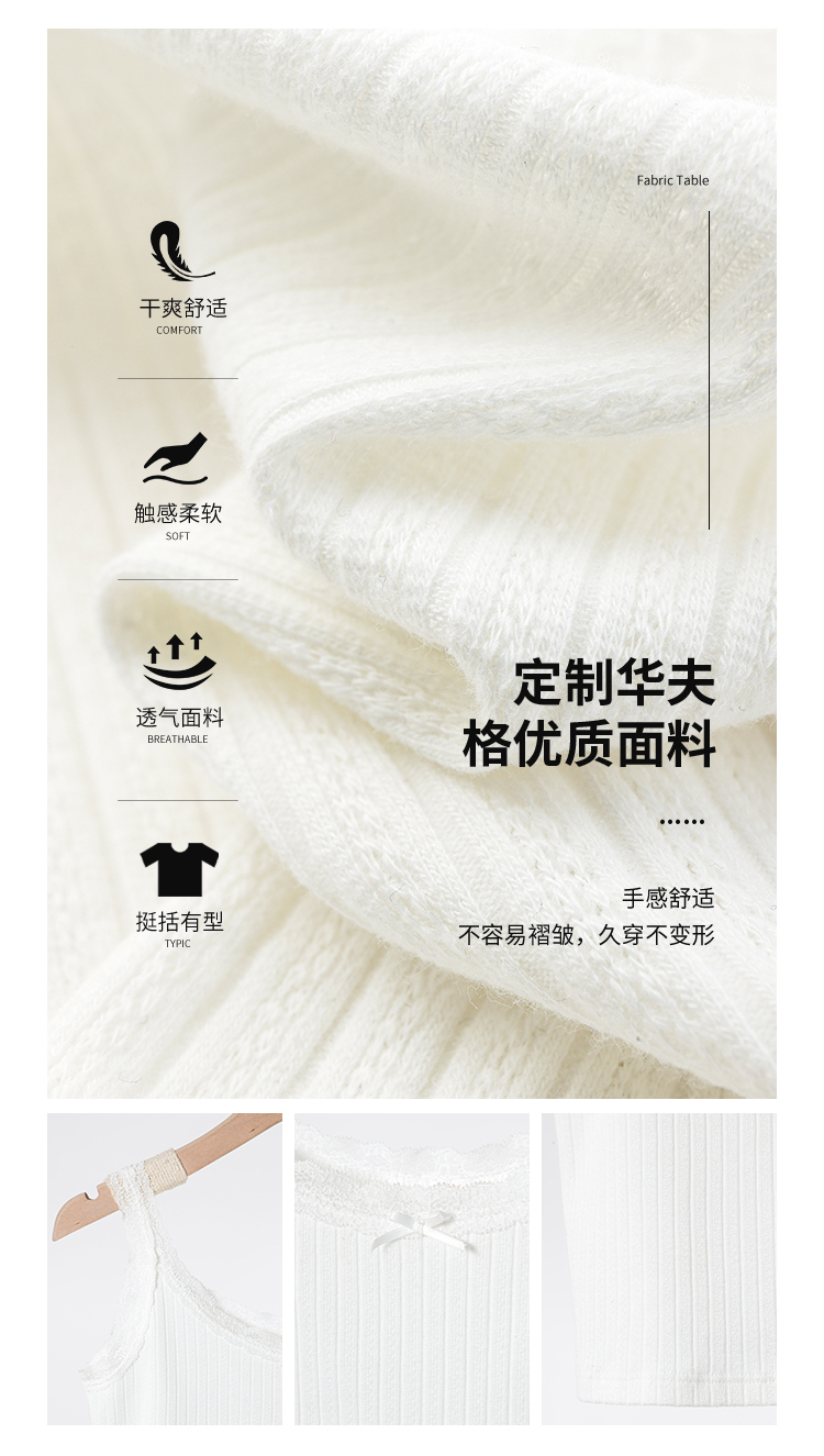 蕾絲邊背心布料成分 : 35%棉 60%聚酯纖維 5%氨綸