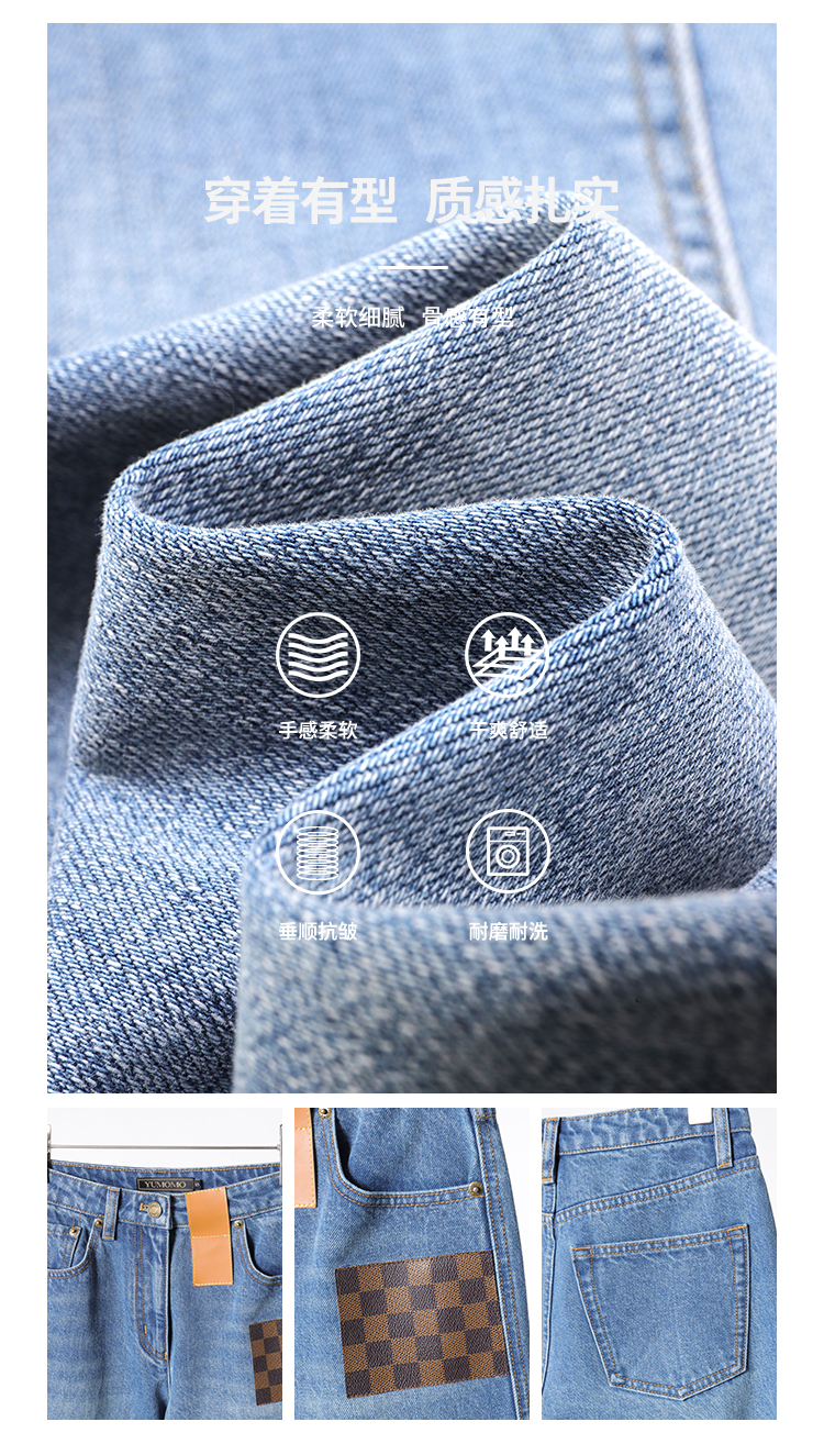 布料選用復古淺色調牛仔料, 質地柔軟,透氣性莄好,不輕易起球,