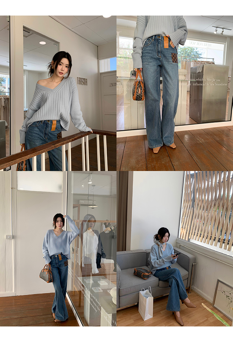 腰型設計高腰設計加拖地直筒版型 上身瞬間腿長一米八