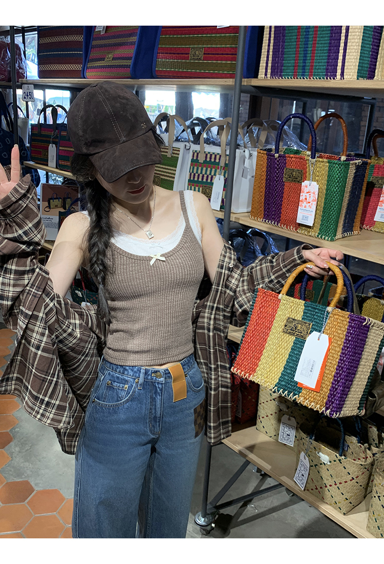 【栗棕色背心/蕾絲邊背心】