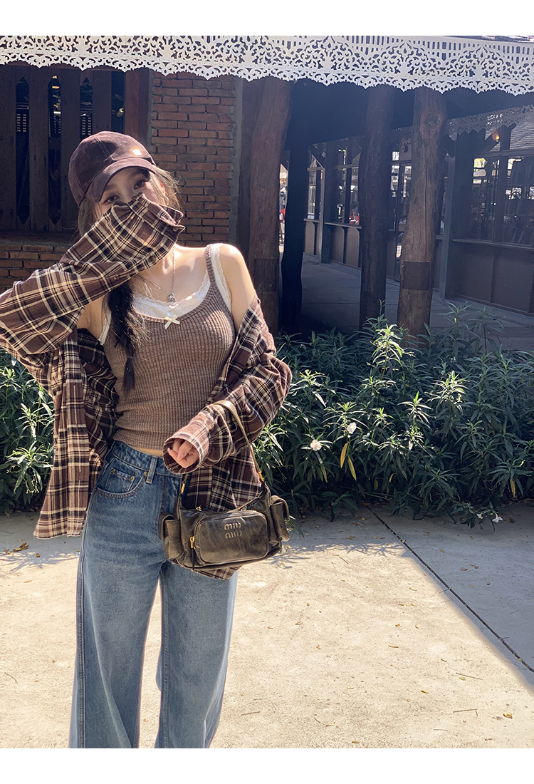 *o-ha-you*【FMQC2034030】韓妹舒適日常系~格子襯衫/吊帶/蕾絲背心/驢子牛仔褲