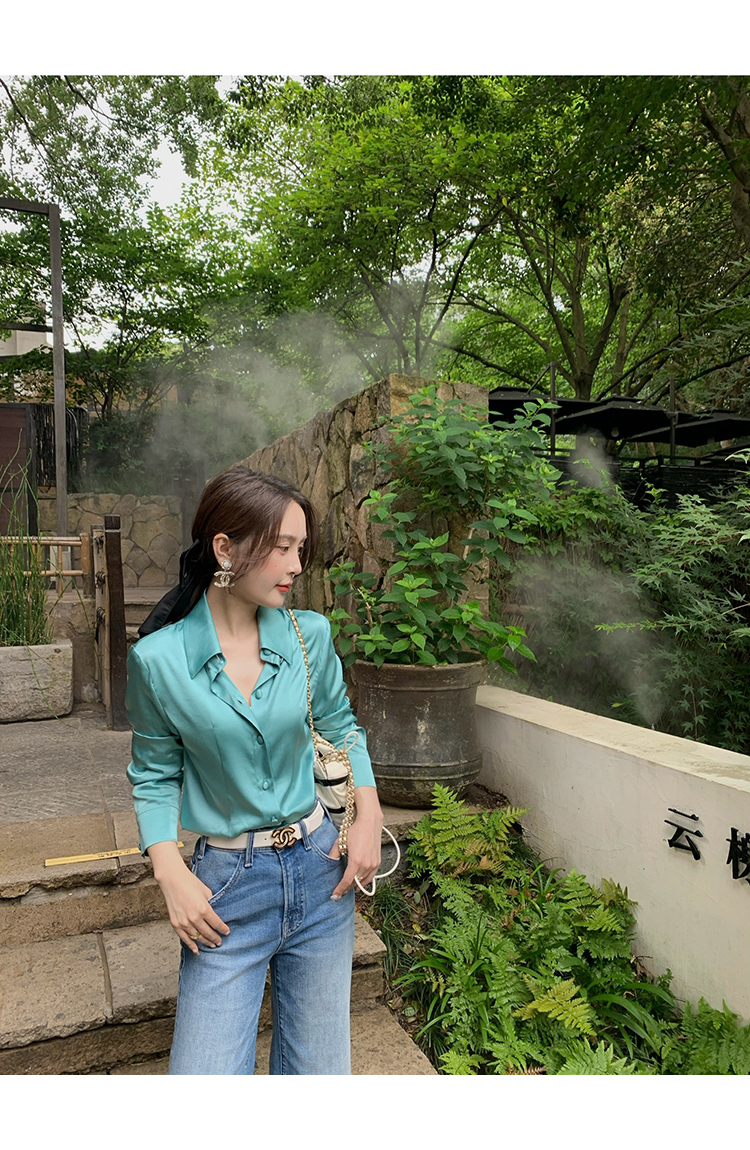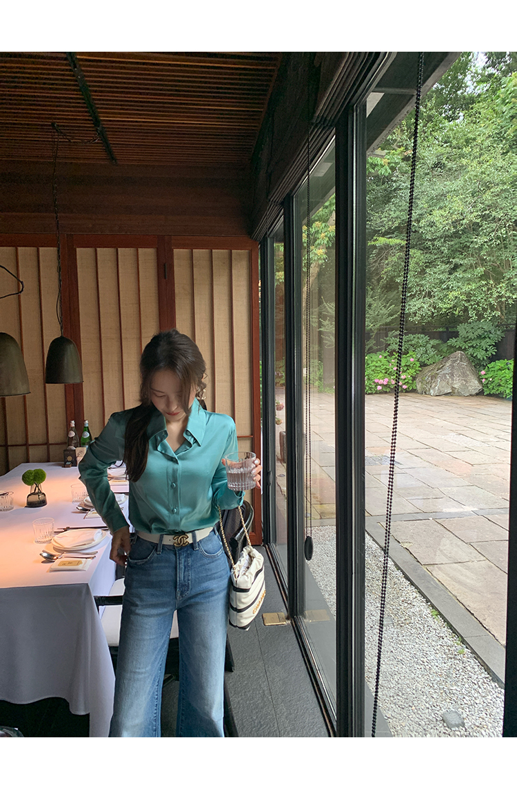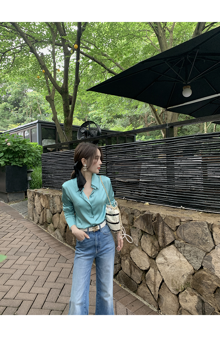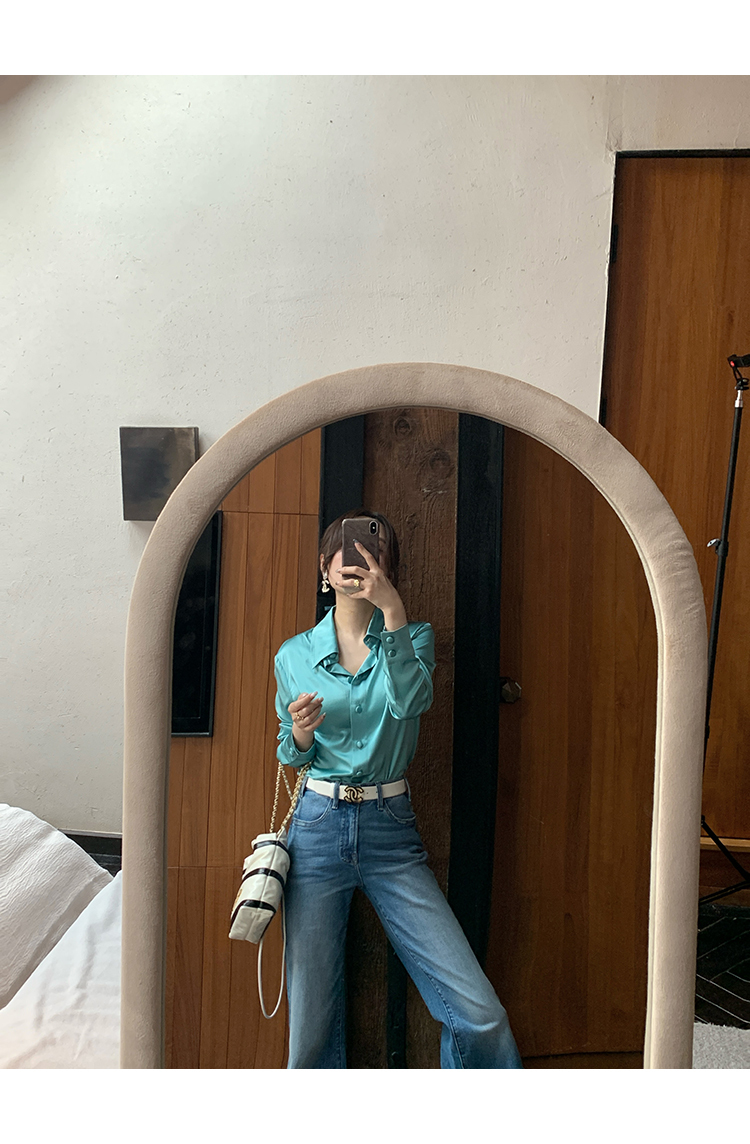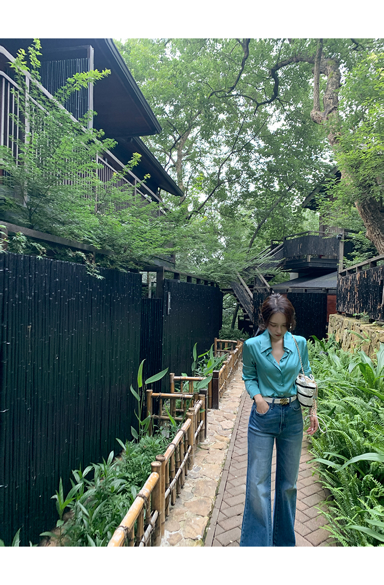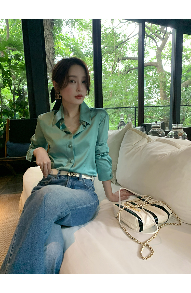 極簡靜奢風絲襯衫+牛仔褲,