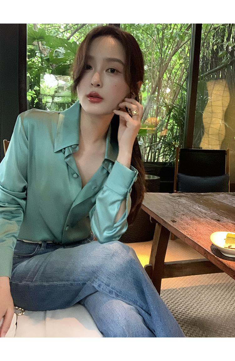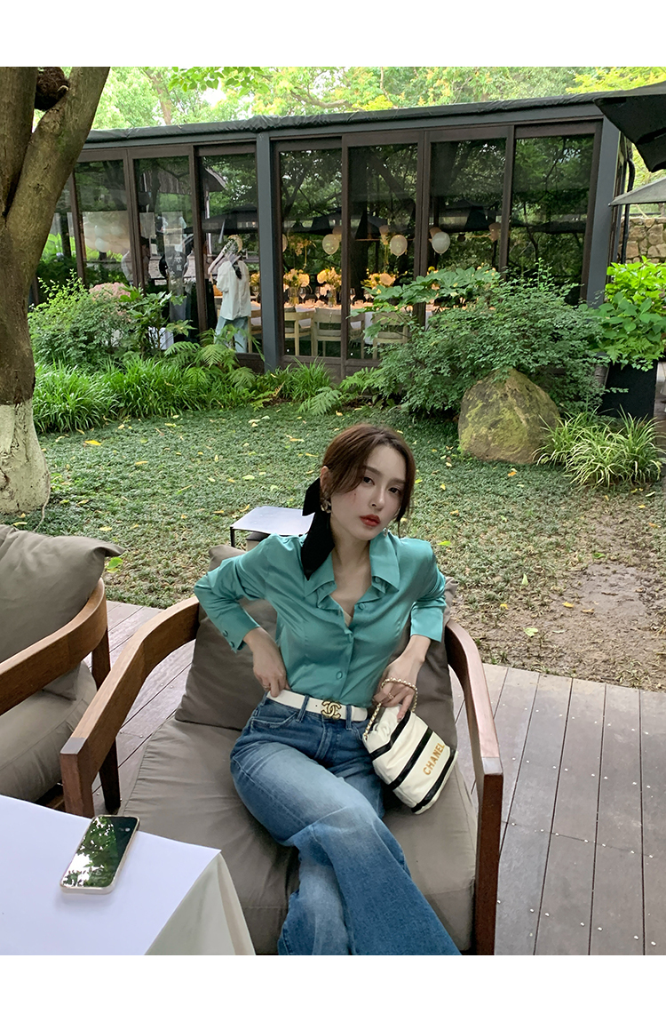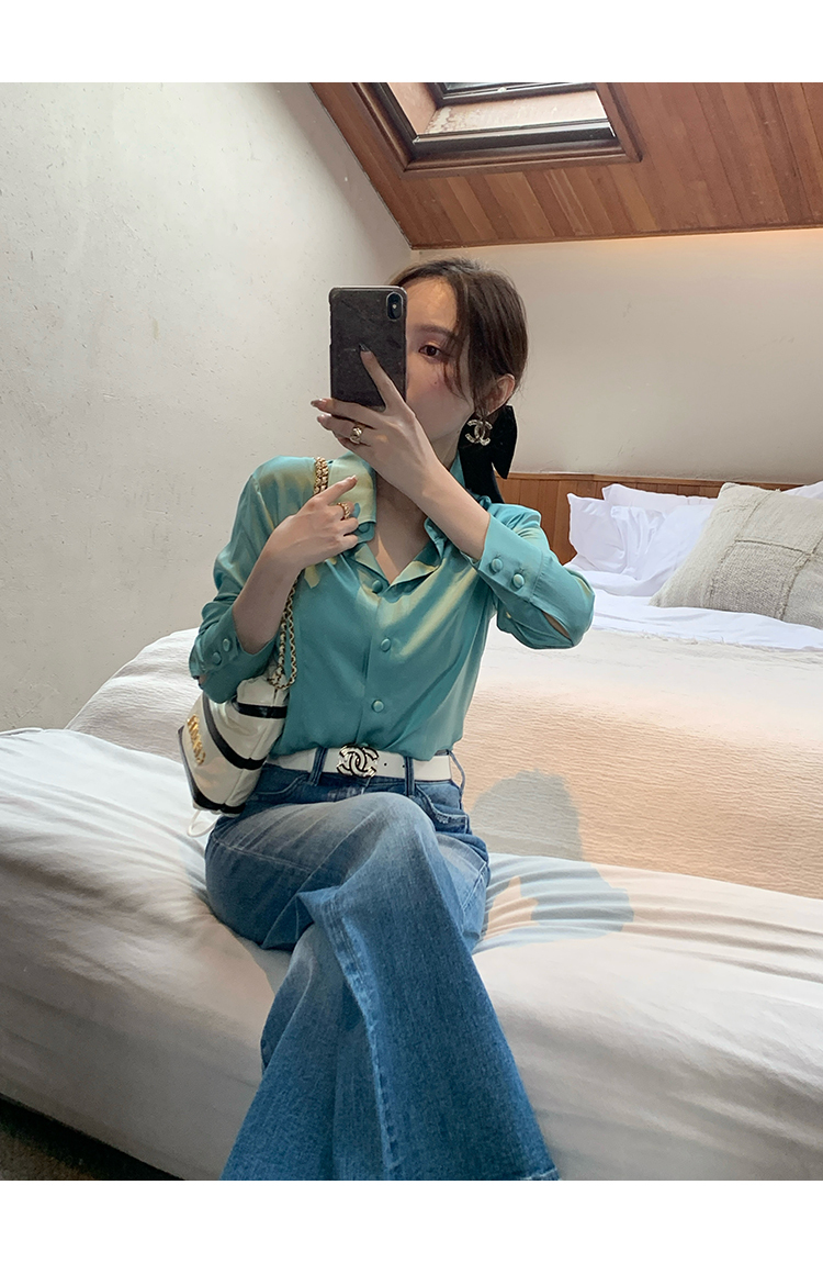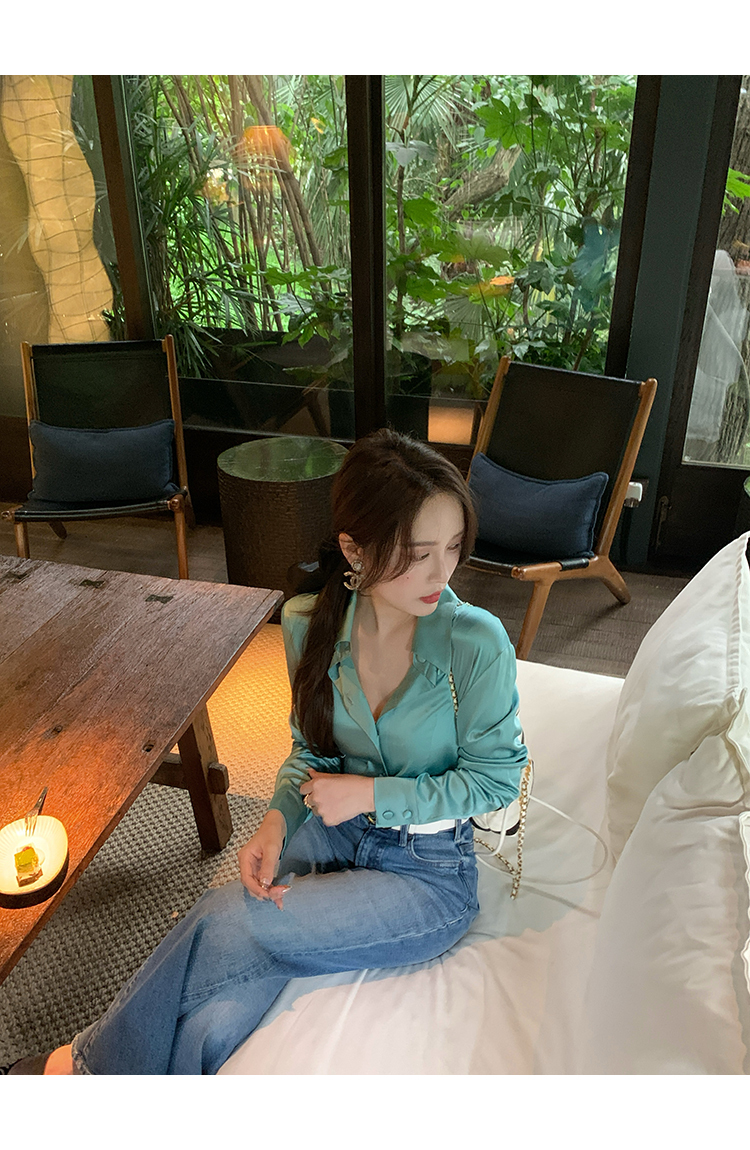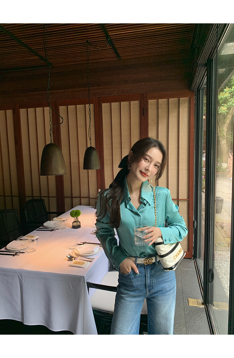 極簡靜奢風絲襯衫+牛仔褲,