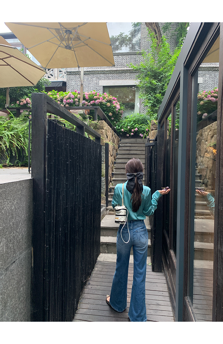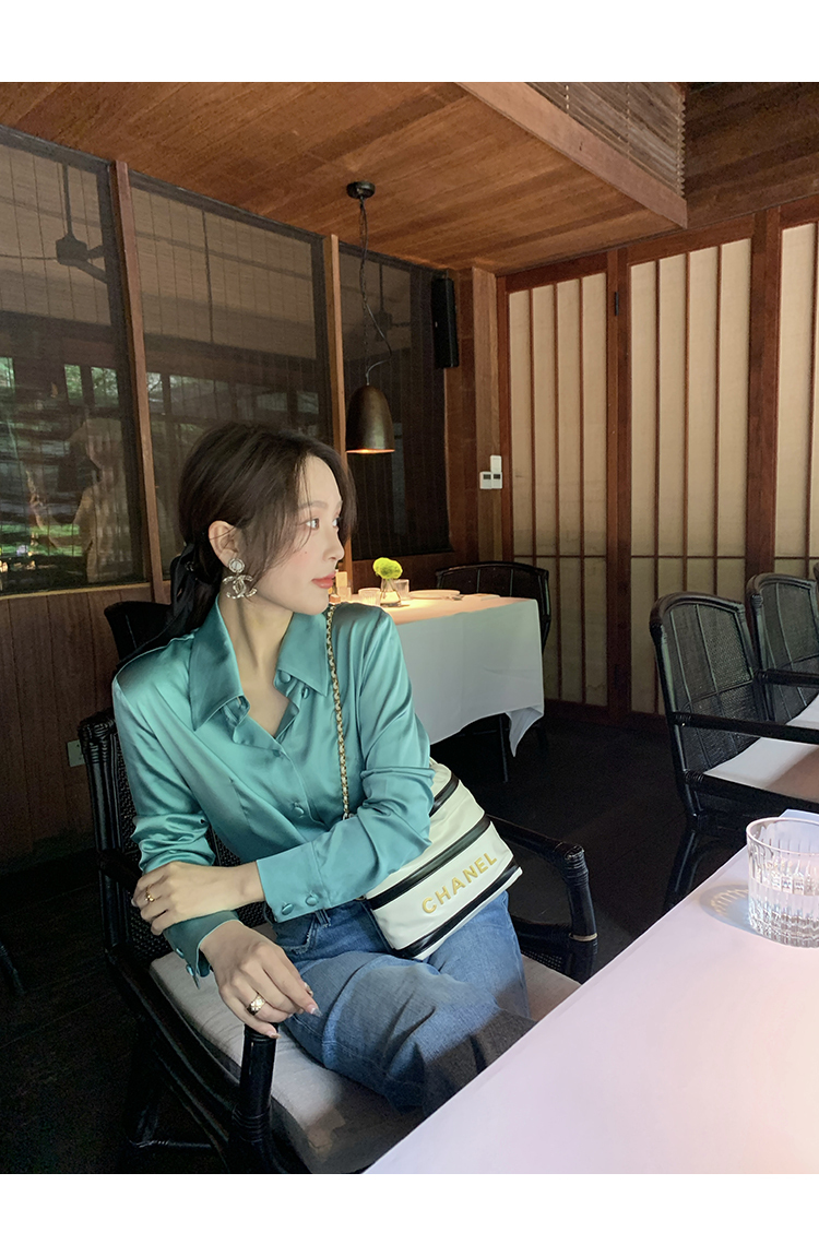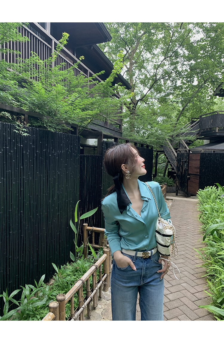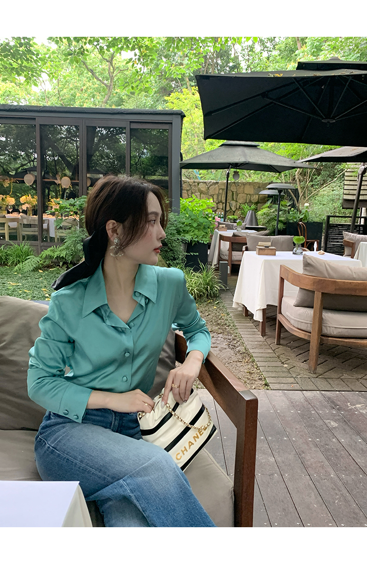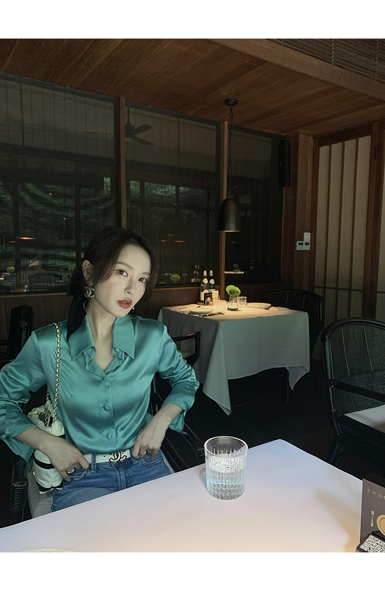 極簡靜奢風絲襯衫+牛仔褲,