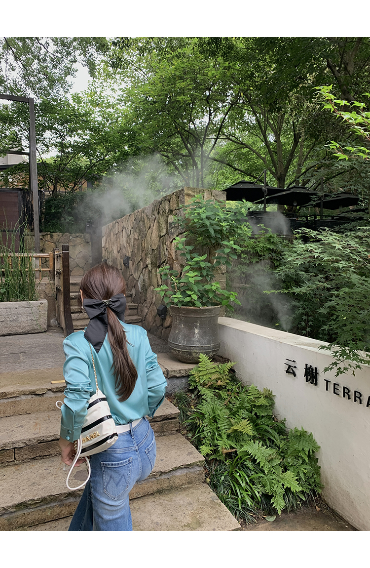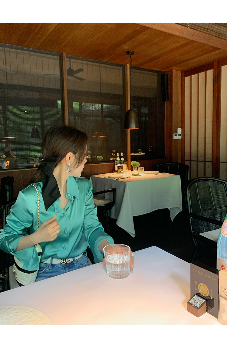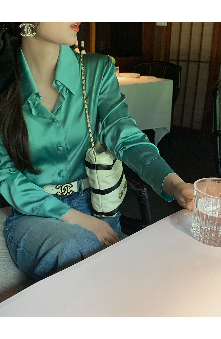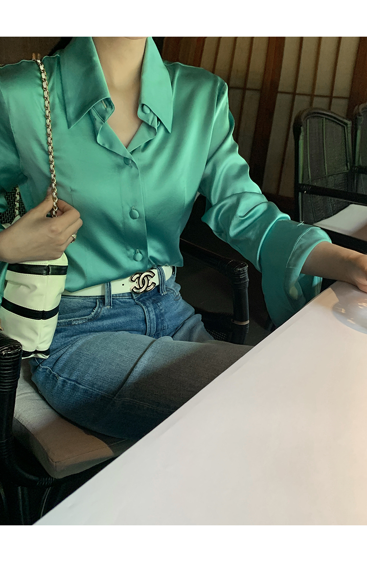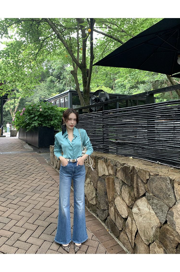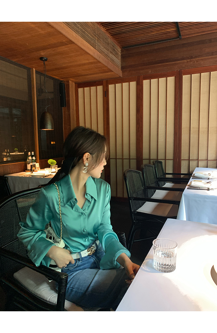 極簡靜奢風絲襯衫+牛仔褲,