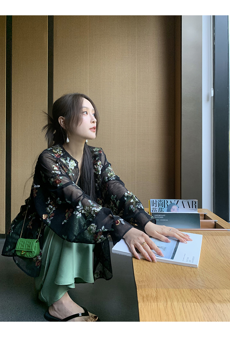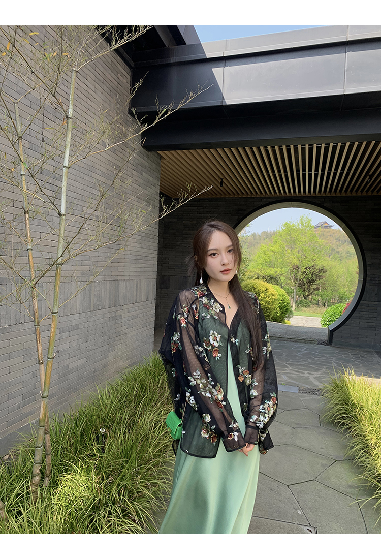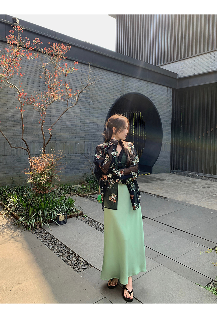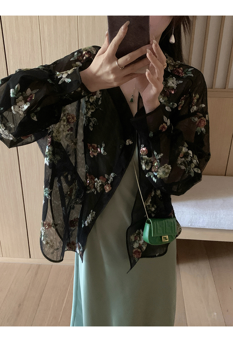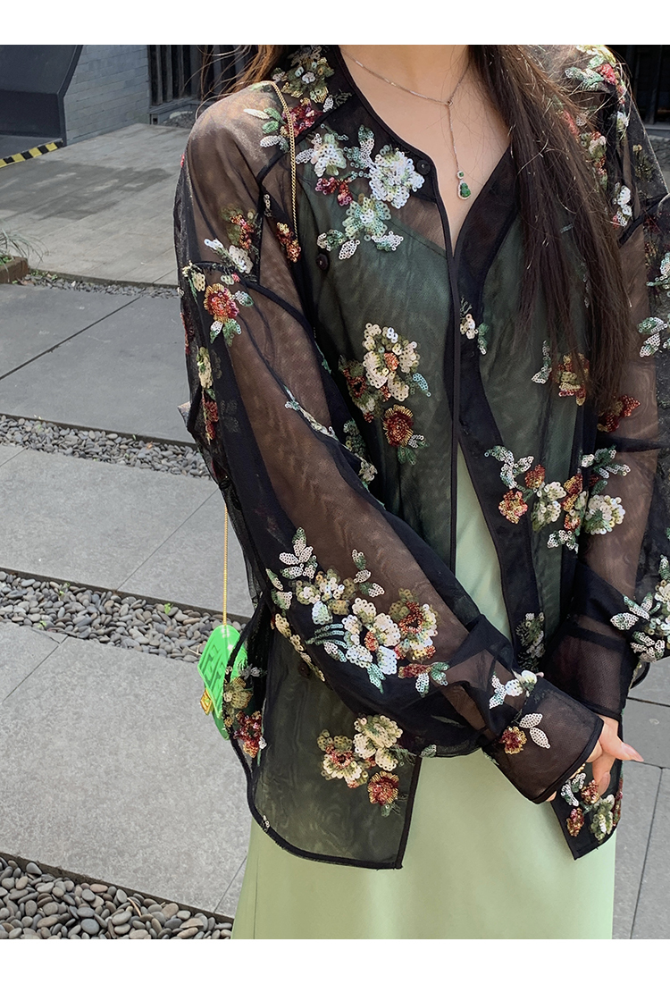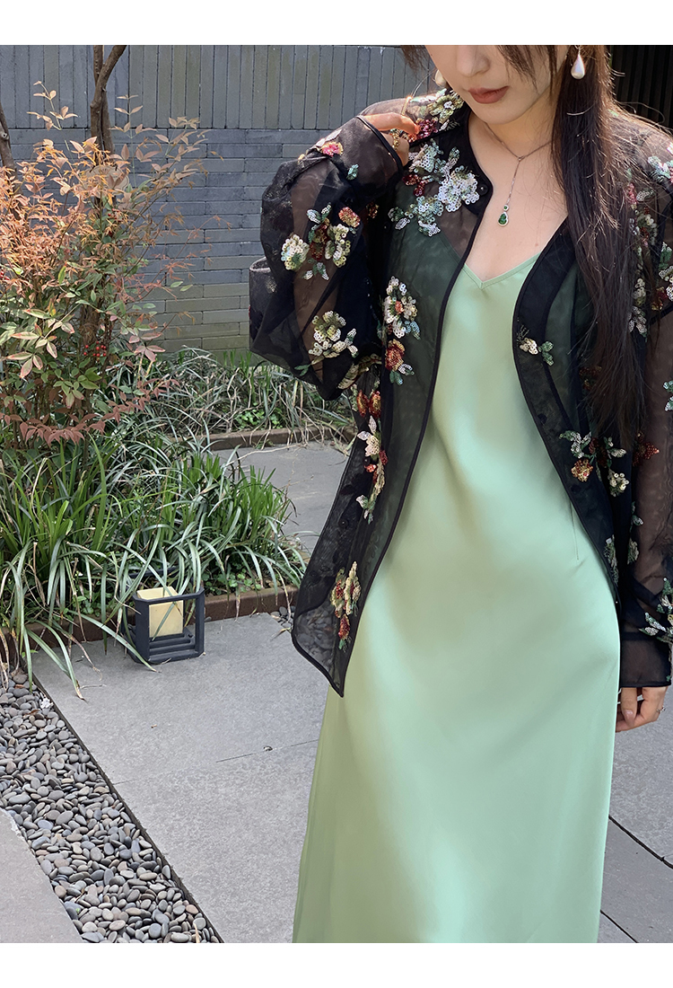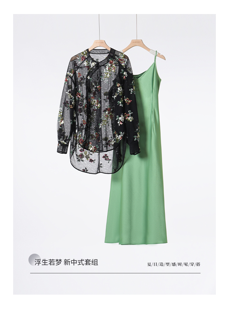 *o-ha-you*【FMQC2041047】浮生若夢新中式重工珠片繡半透偏襟襯衫/曼妙流光緞面吊帶裙