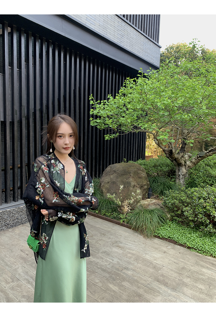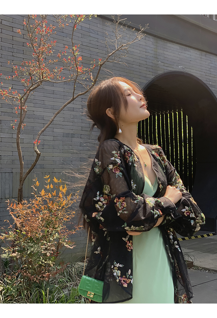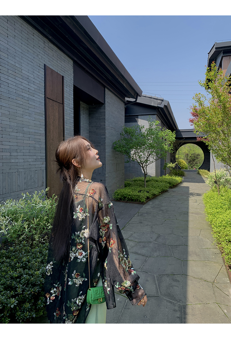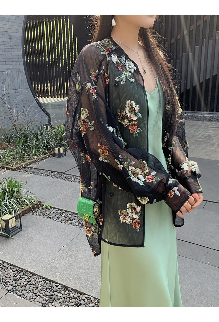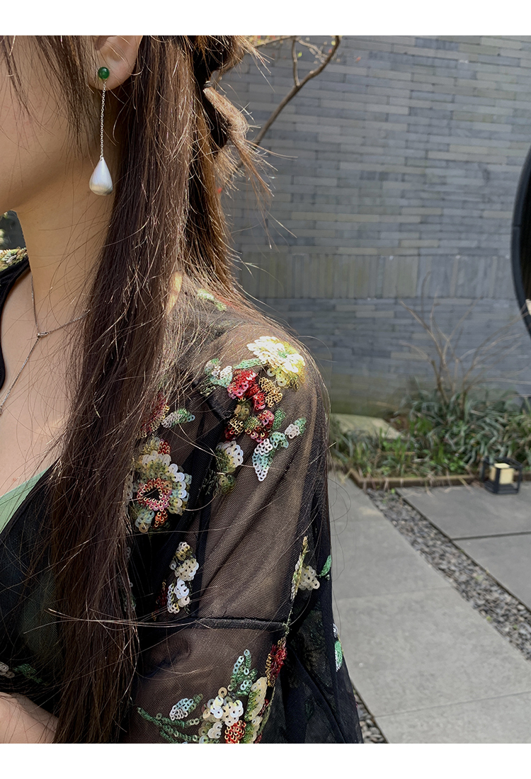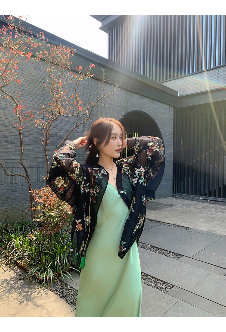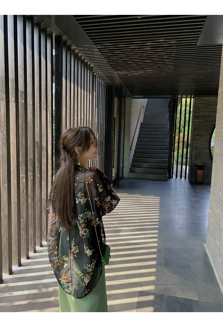 *o-ha-you*【FMQC2041047】浮生若夢新中式重工珠片繡半透偏襟襯衫/曼妙流光緞面吊帶裙